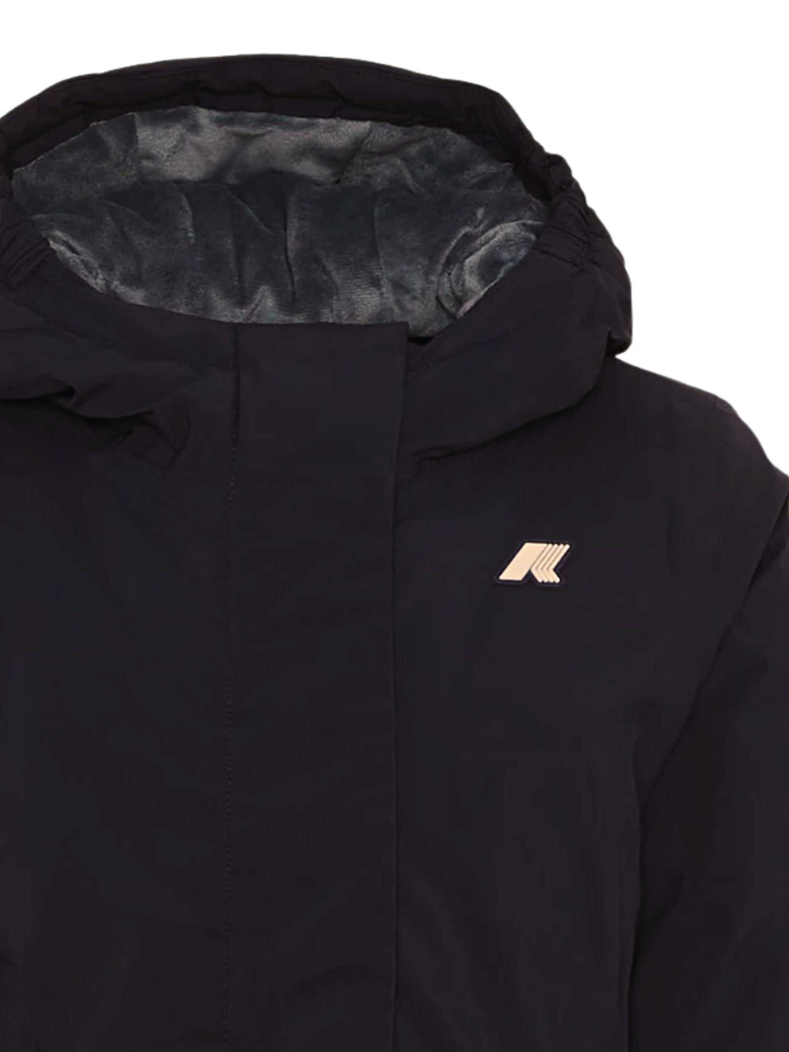 K-Way Kids giubbino Lily Micro Ripstop Marmotta di colore nero, tessuto impermeabile, idrorepellente, antivento, fodera in morbida pelliccia sintetica effetto marmotta, cappuccio fisso, cuciture termonastrate, due tasche con zip, logo in silicone, fitting regolare. Composizione: 100% poliammide. Imbottitura: 100% poliestere