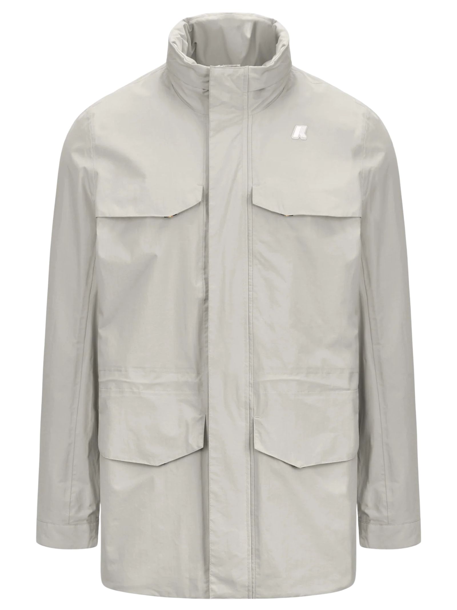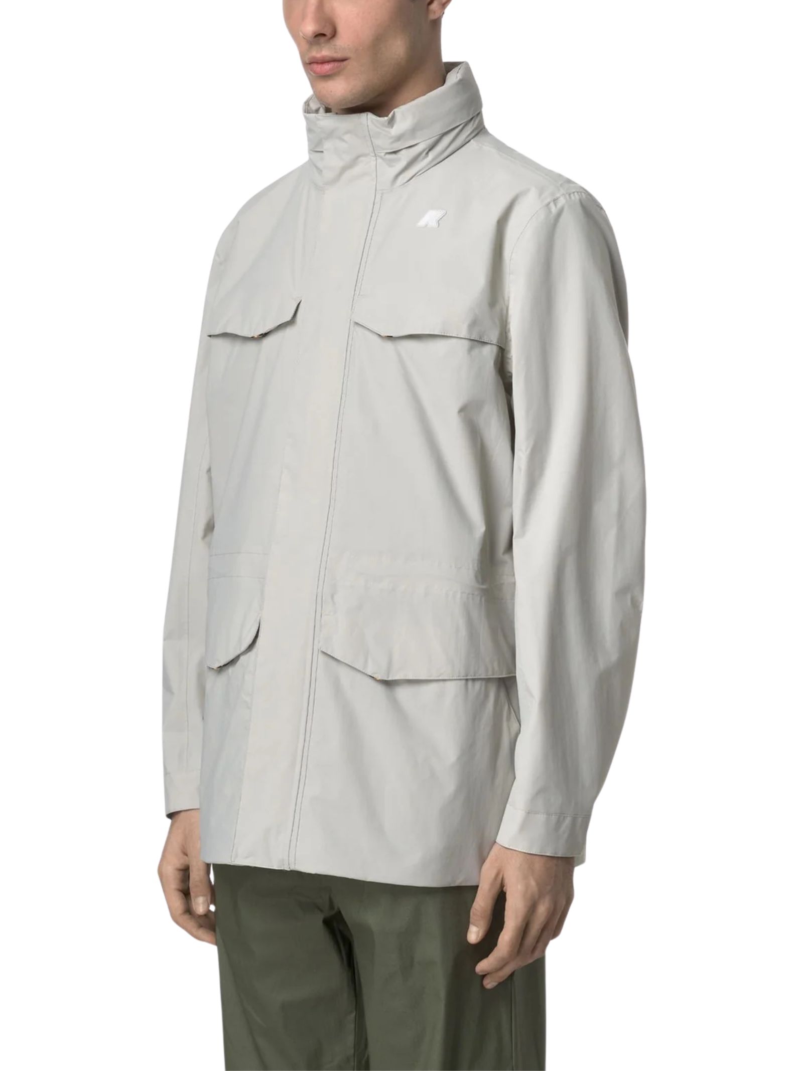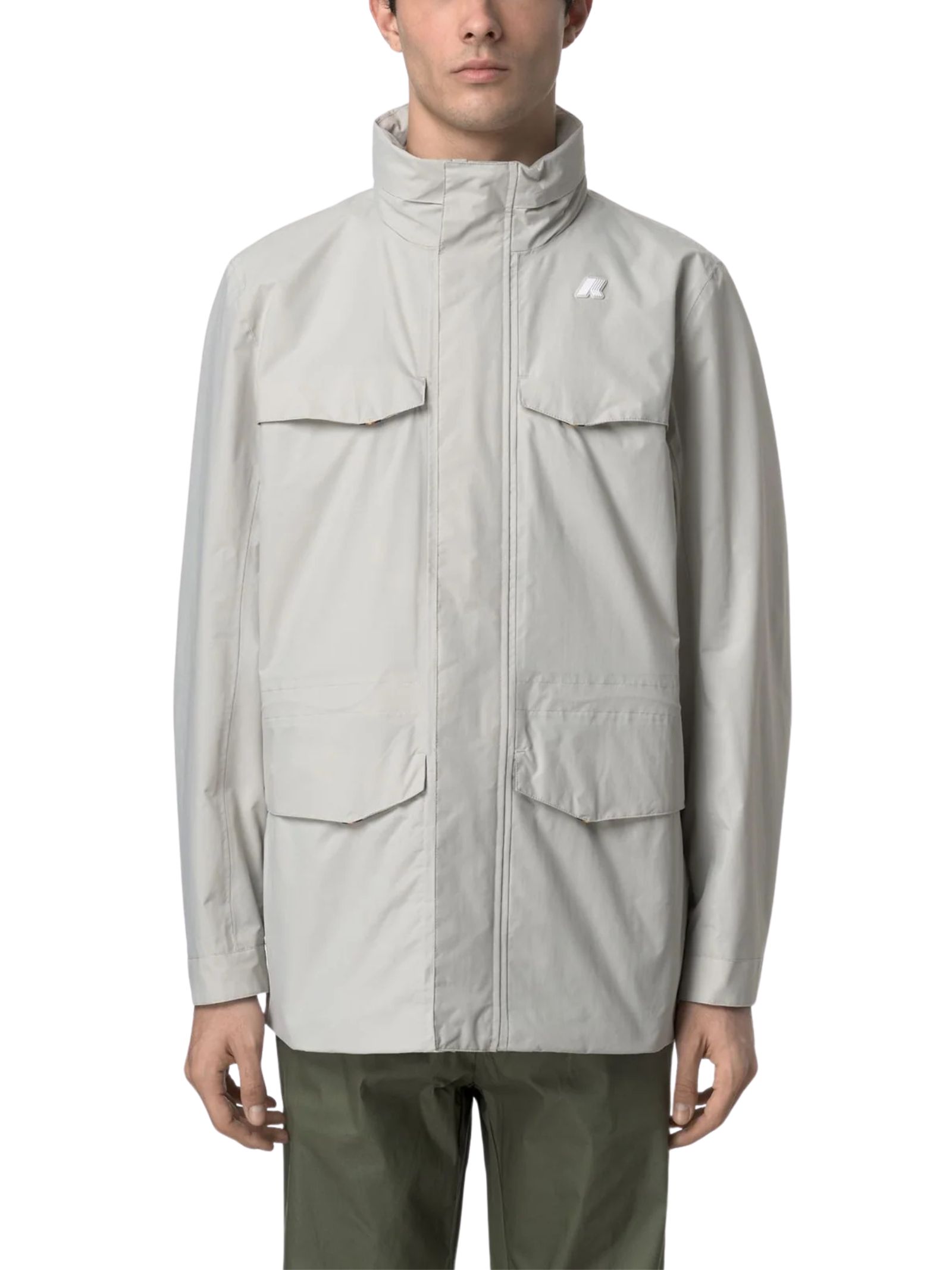 K-Way Kids giubbino Manuel Ottoman di colore beige, realizzato in tessuto nylon ottoman riciclato, impermeabile, cappuccio richiudibile, idrorepellente, antivento, fodera in rete riciclata, cuciture termonastrate, chiusura con zip coperta dalla patta, polsi regolabili, 4 tasche frontali con patta, fitting regolare, applicazione logo in silicone bianco. Composizione: 100% poliammide