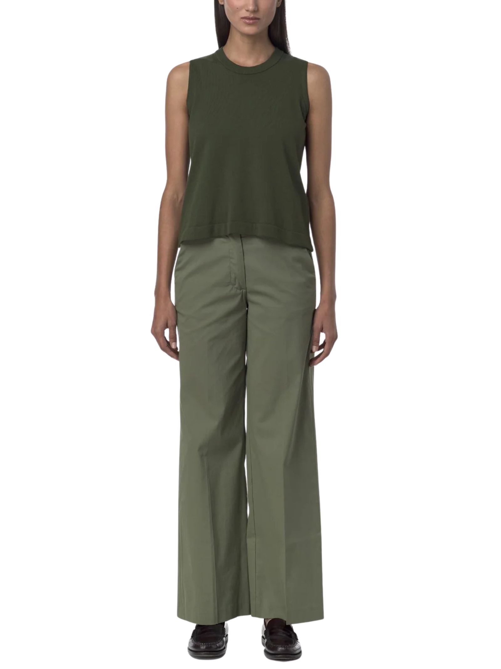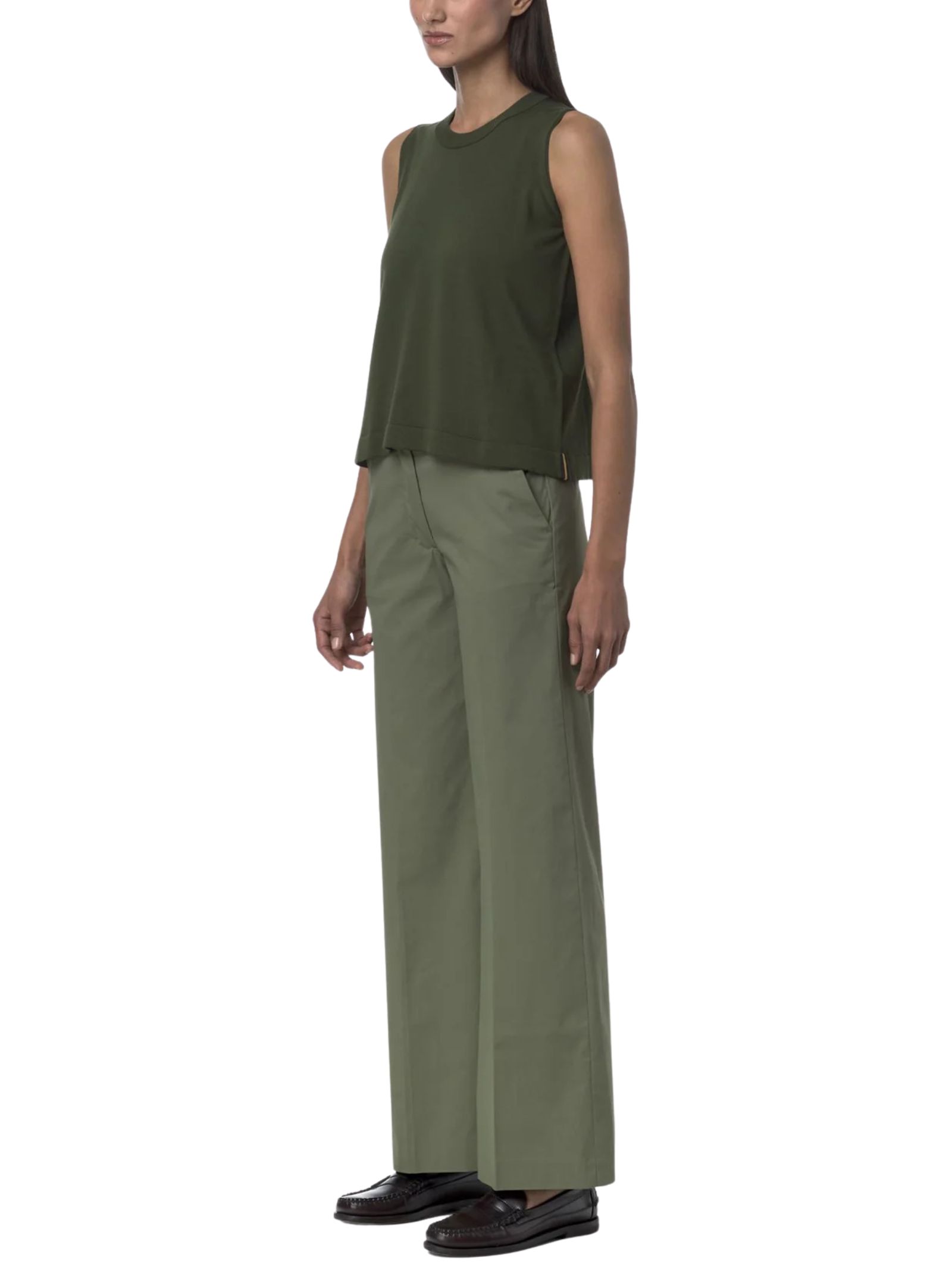 K-Way Kids pantalone di colore verde, design chino con gamba a palazzo, con tasche laterali e chiusura a zip con gancio a scomparsa, realizzato in tessuto gabardine tecnico elasticizzato, 2 tasche laterali, vestibilità regolare. Composizione: 65% Cotone 29% poliammide 6% elastan. Made in Italy