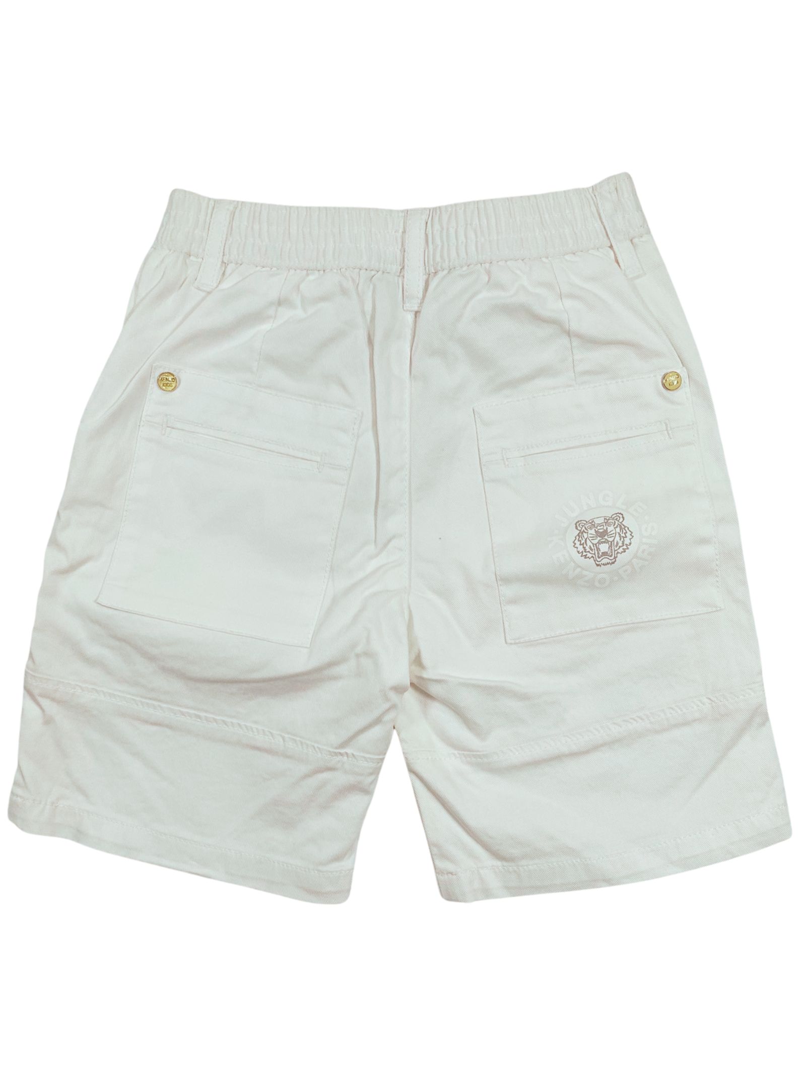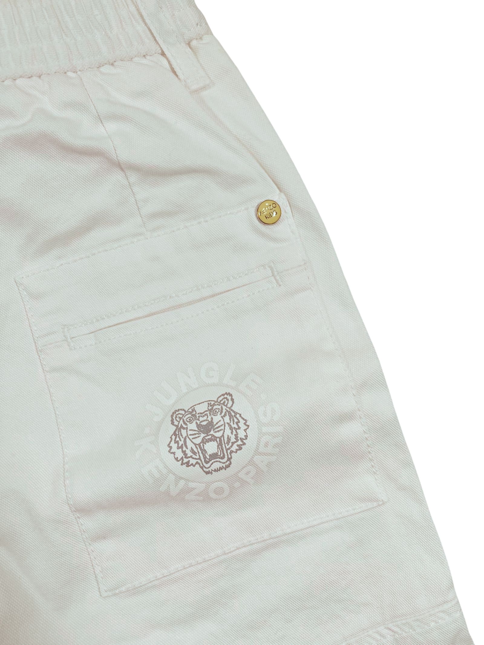 Kenzo Kids bermuda realizzato in cotone denim di colore bianco, design con elastico in vita, due tasche laterali, due tasche sul retro, passanti per cintura, logo posteriore a contrasto, vestibilità regolare. Composizione: 98% Cotone 2% Elastan