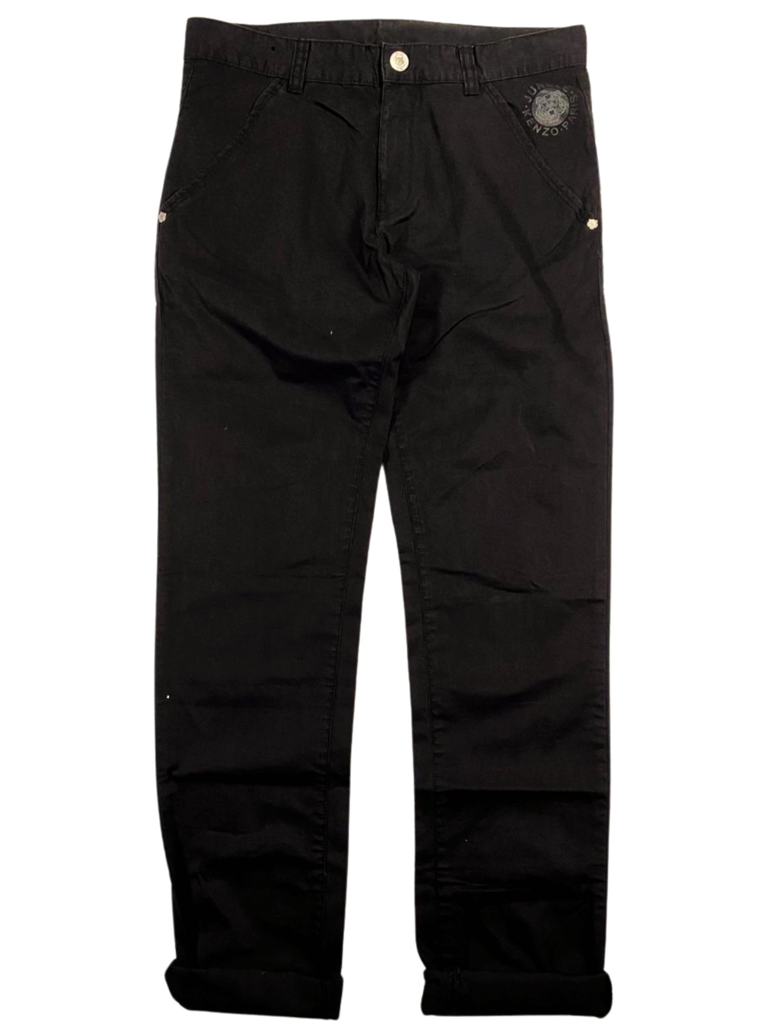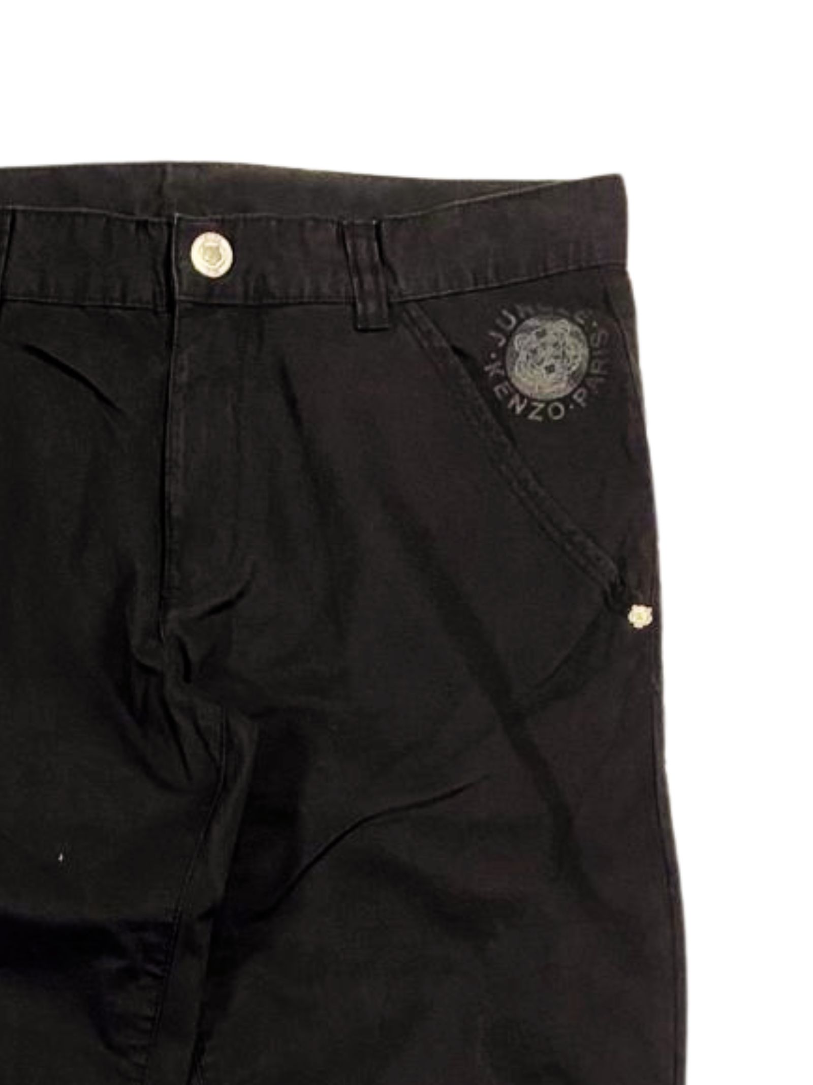 Kenzo Kids pantalone di colore nero, vita regolare con passanti, due tasche laterali, due tasche a fessura sul retro, stampa logo in tinta, vestibilità regolare. Composizione: 100% cotone
