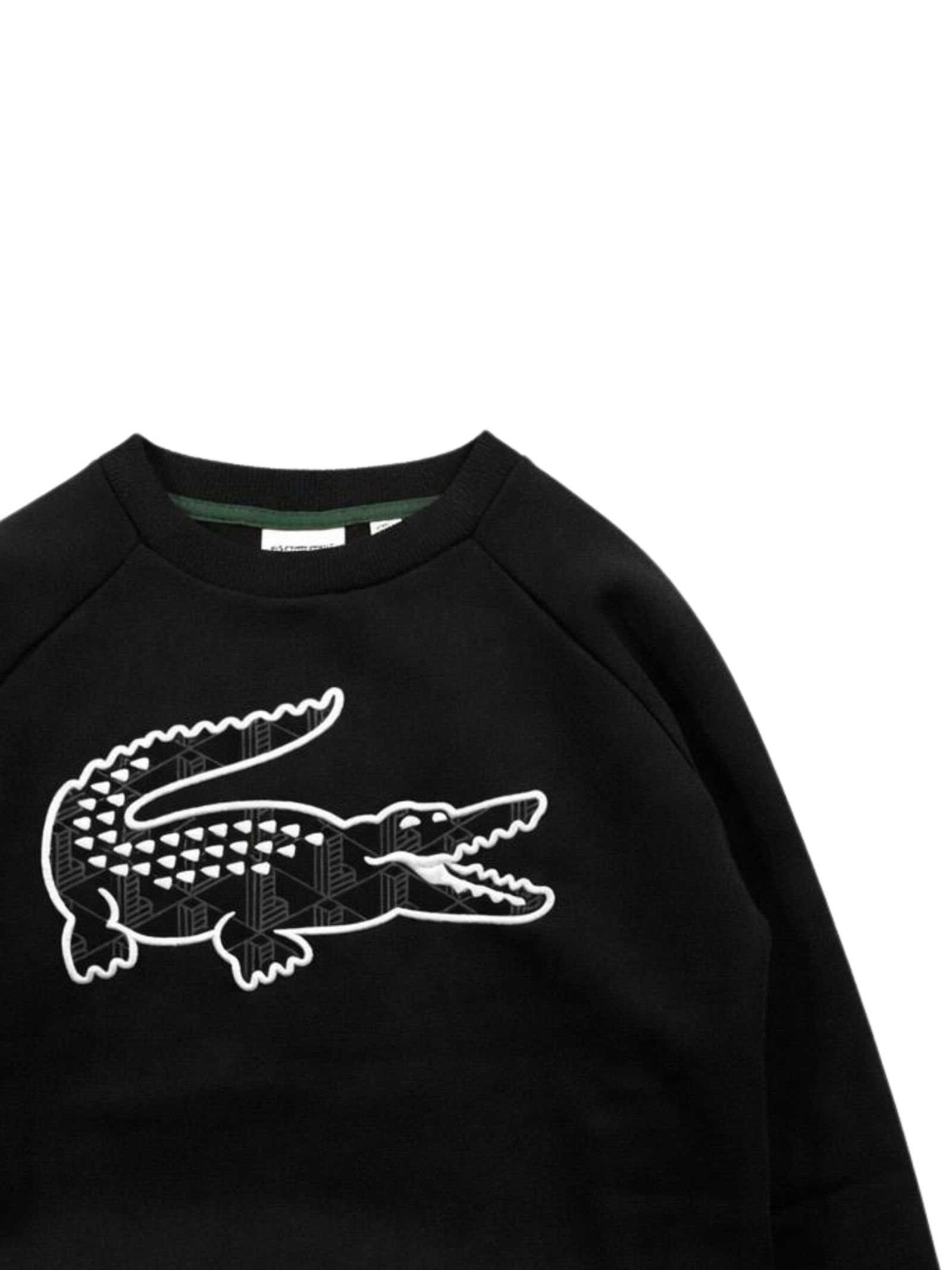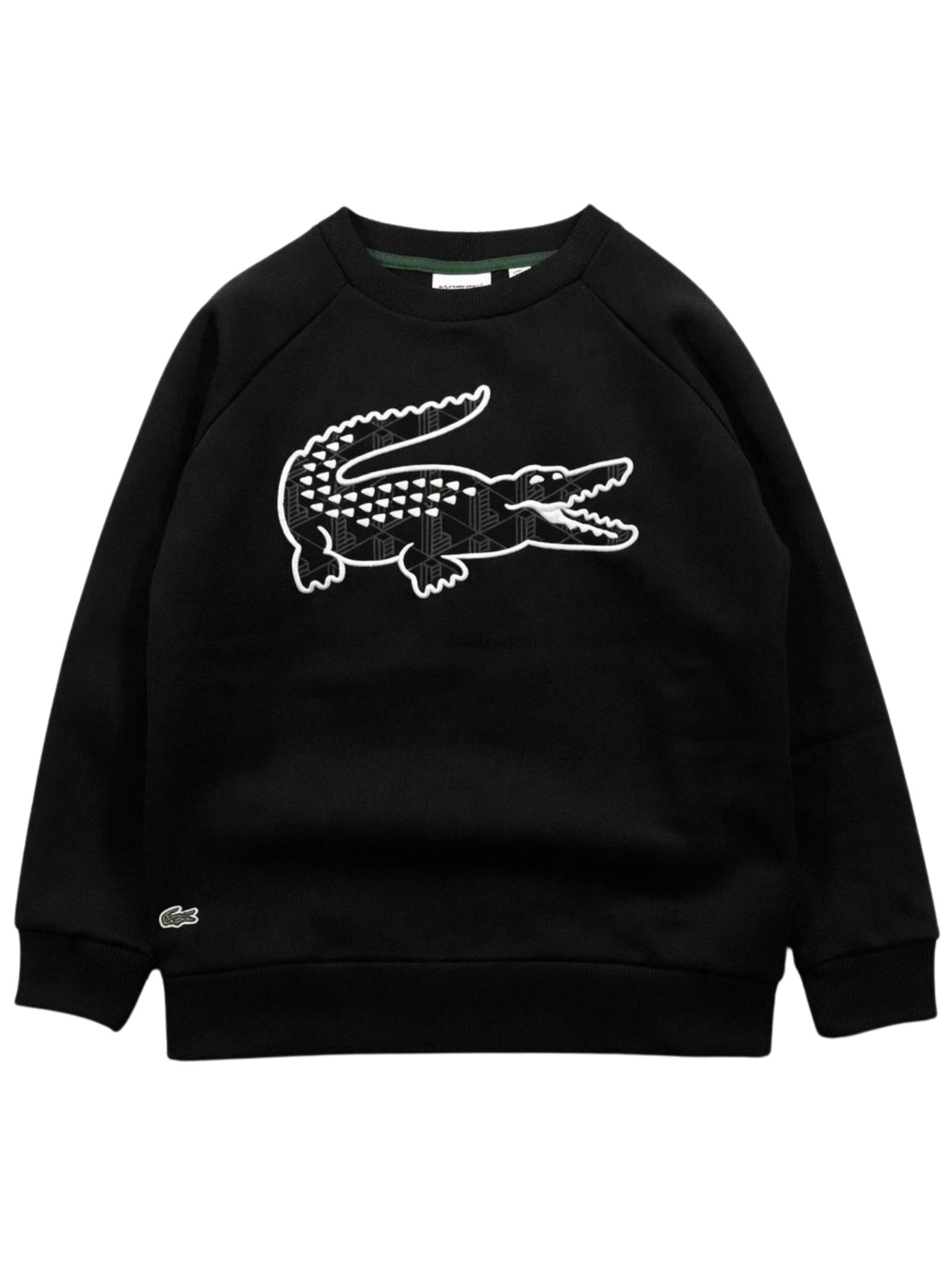 Lacoste Kids felpa di colore nero, modello girocollo, manica lunga, logo centrale ricamato a contrasto, orlo dritto, vestibilità regolare. Composizione: 80% cotone caldo 20% poliestere