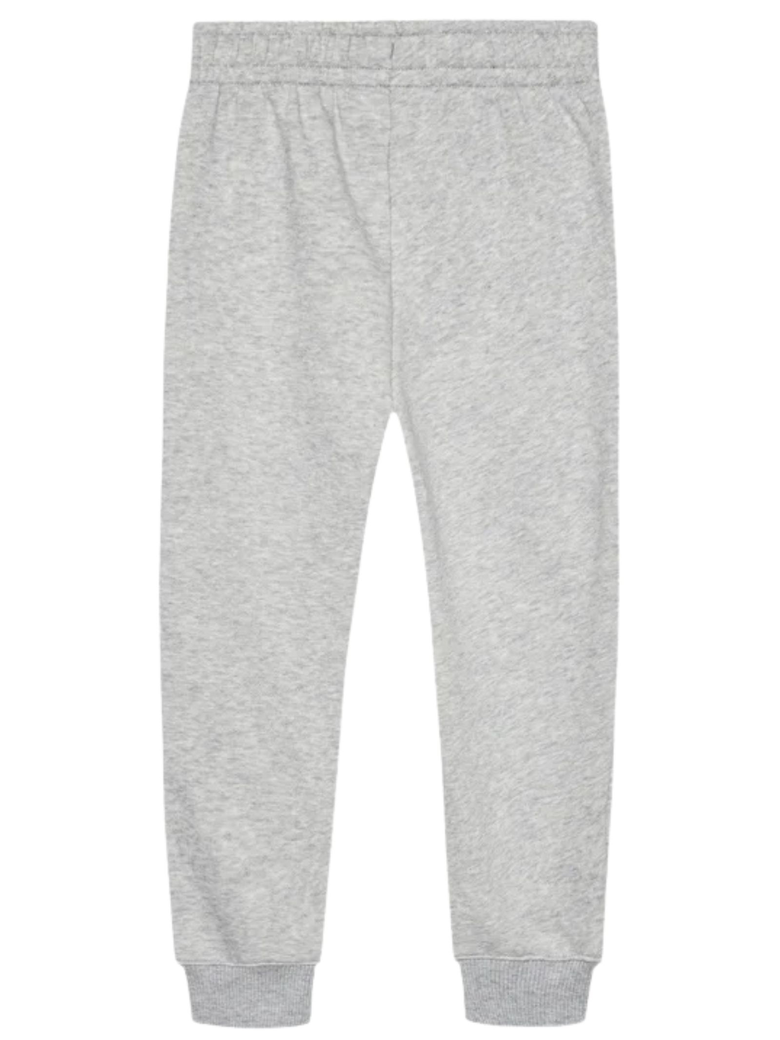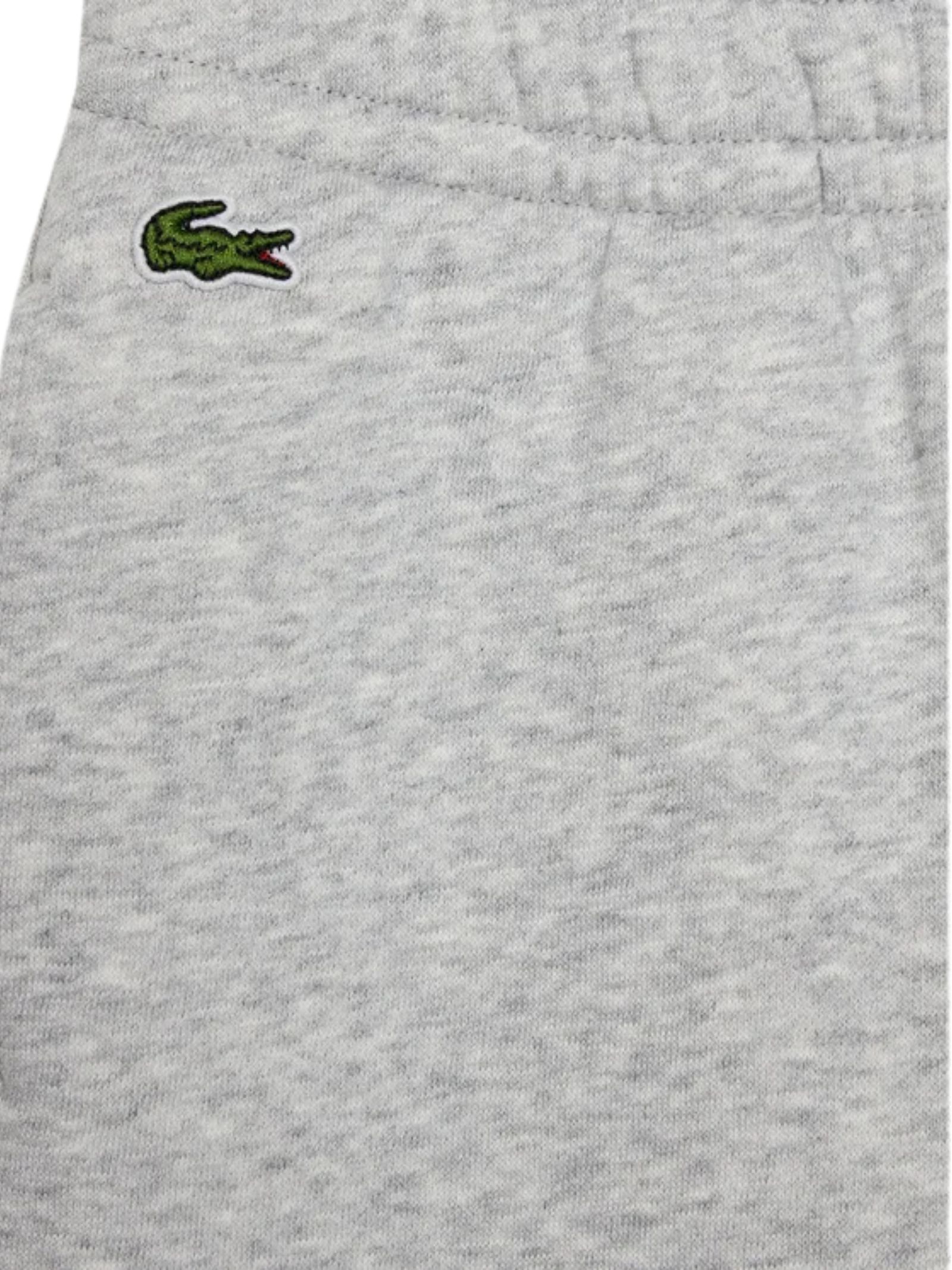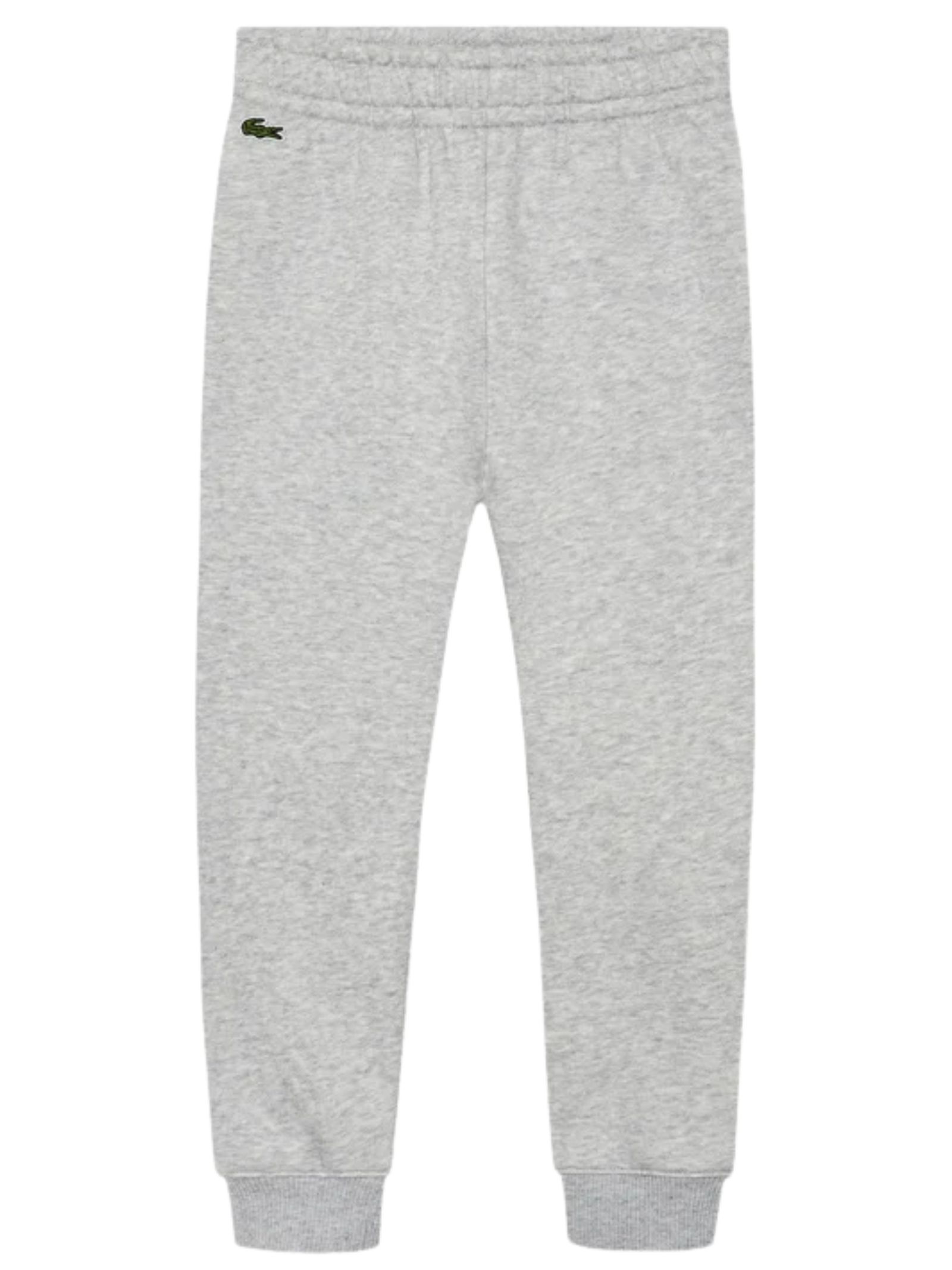 Lacoste Kids pantalone di colore grigio, design con elastico in vita, coulisse interna, due tasche laterali, applicazione patch logo, caviglie elastiche, vestibilità regolare. Composizione: 94% cotone caldo