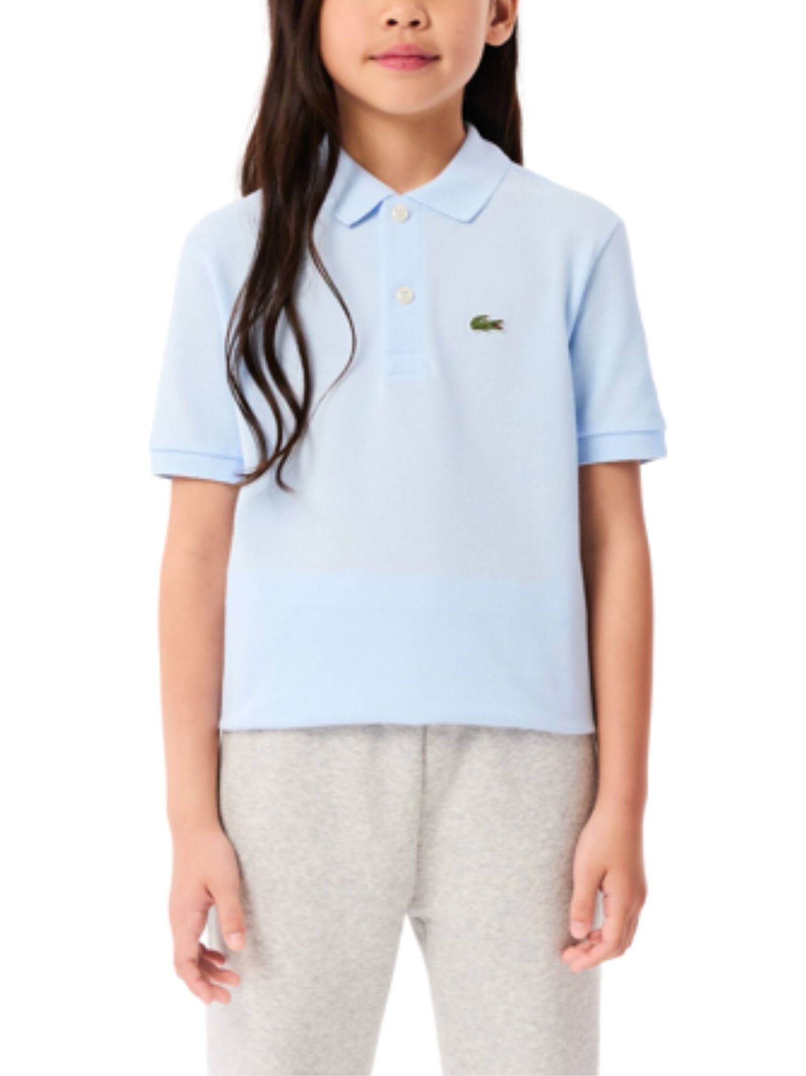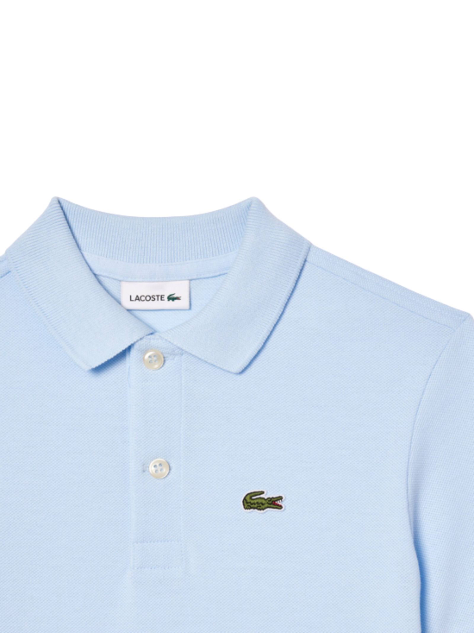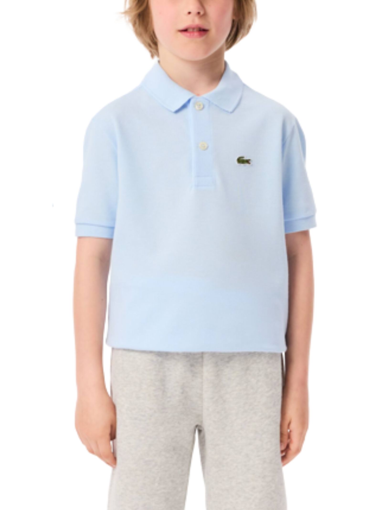Lacoste Kids polo di colore azzurro, realizzata in cotone piquet, mezza manica, applicazione logo sul petto, orlo dritto, vestibilità regolare. Composizione: 100% cotone