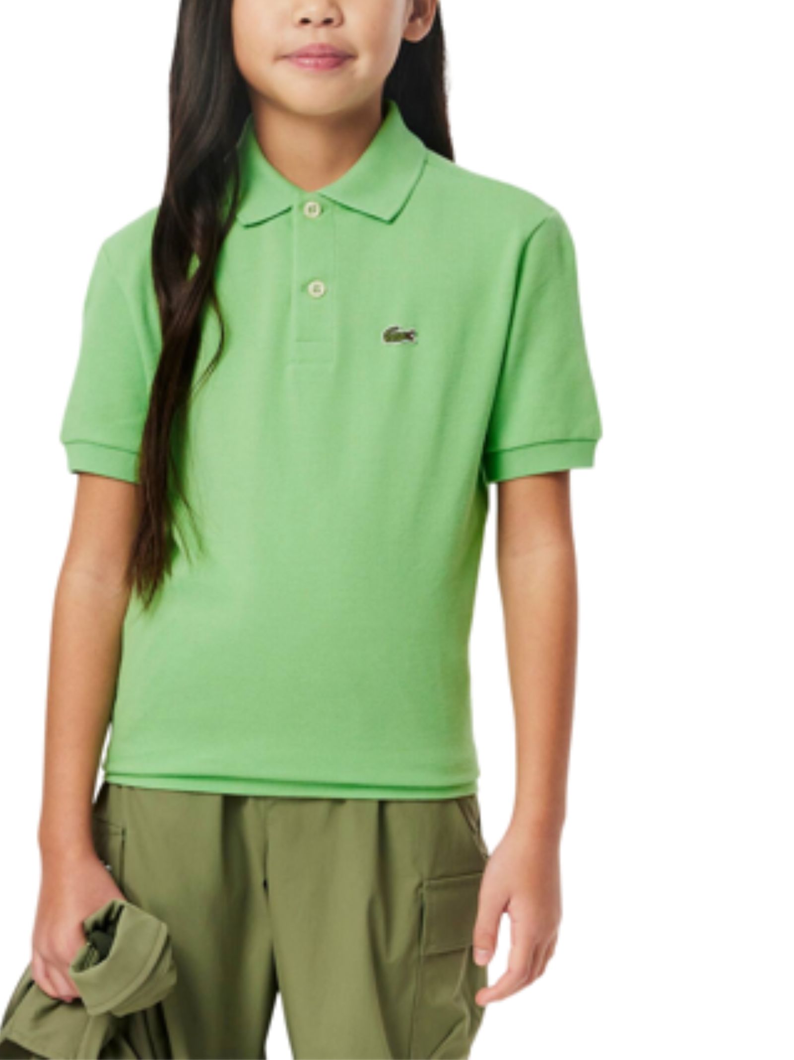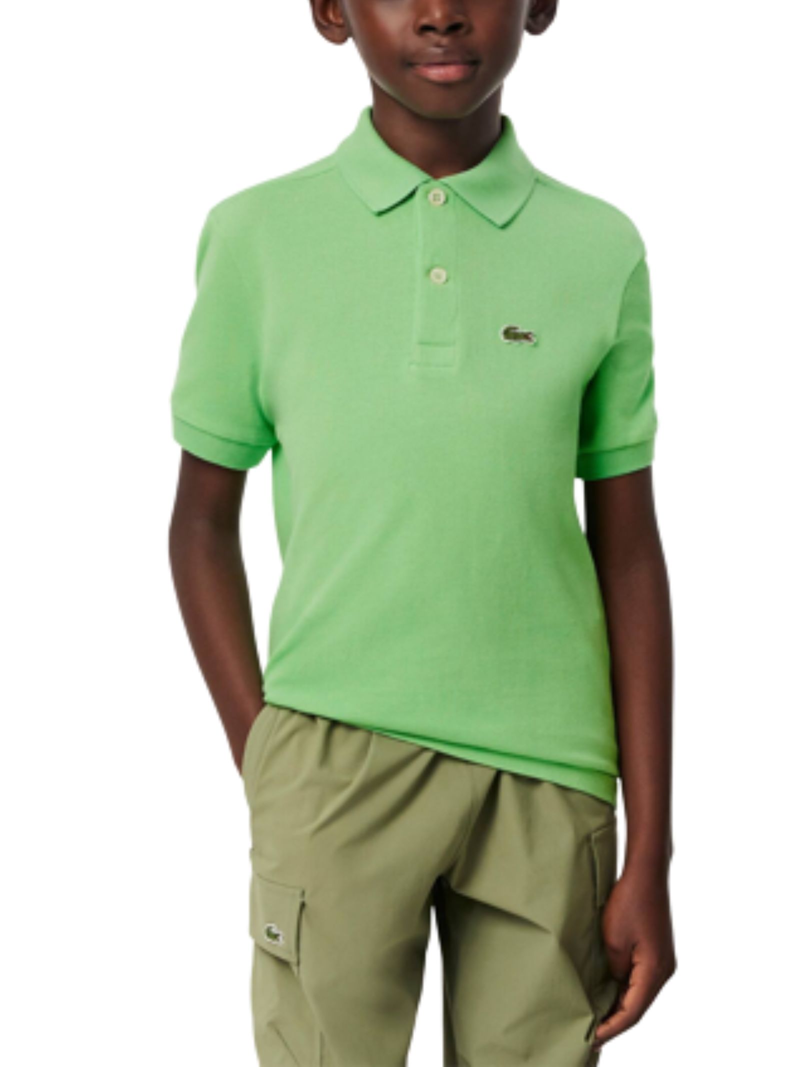 Lacoste Kids polo di colore verde, realizzata in cotone piquet, mezza manica, applicazione logo sul petto, orlo dritto, vestibilità regolare. Composizione: 100% cotone