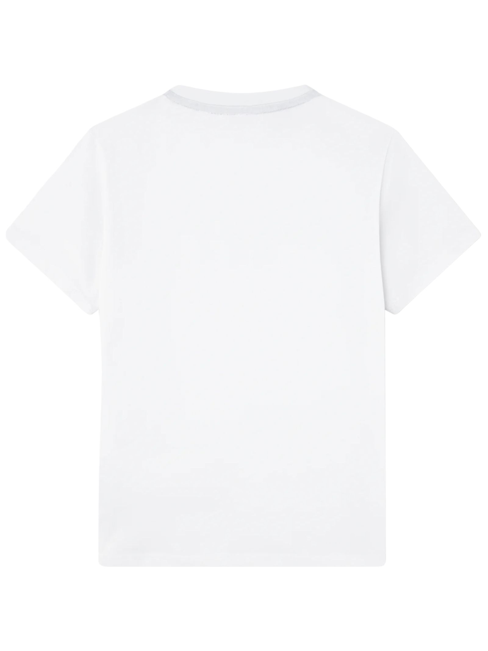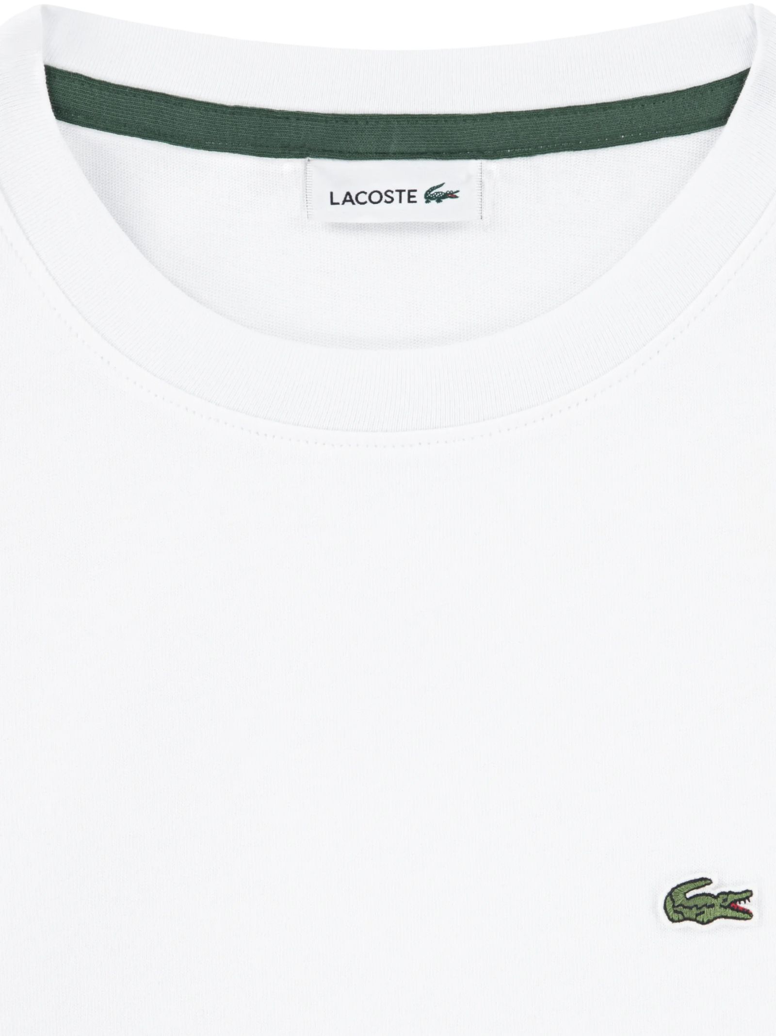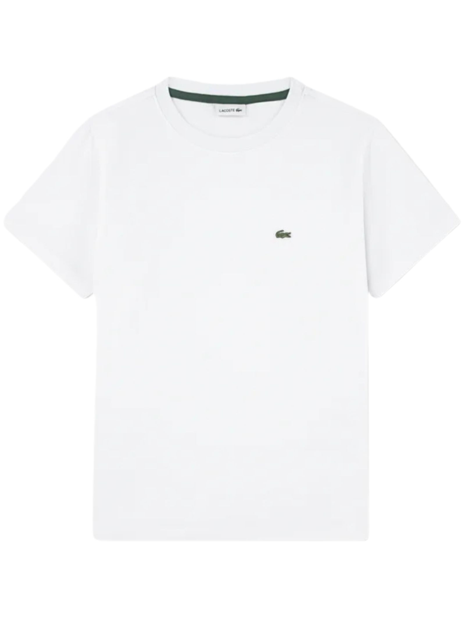 Lacoste Kids t-shirt di colore bianco, modello girocollo, mezza manica, applicazione logo ricamato sul petto, orlo dritto, vestibilità regolare. Composizione: 100% cotone