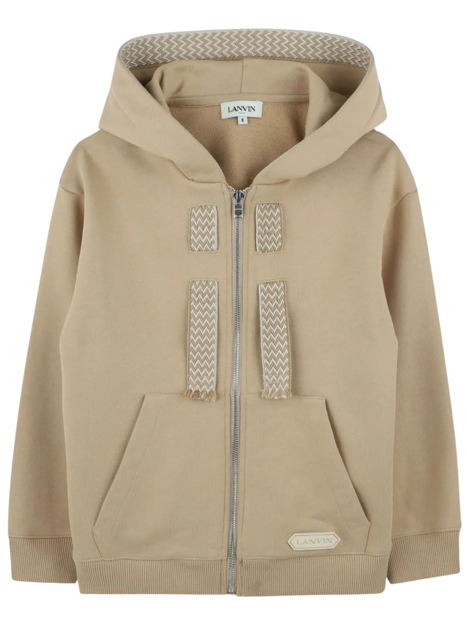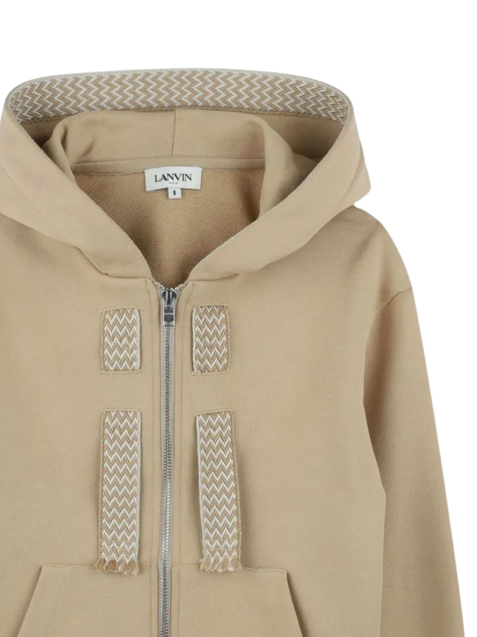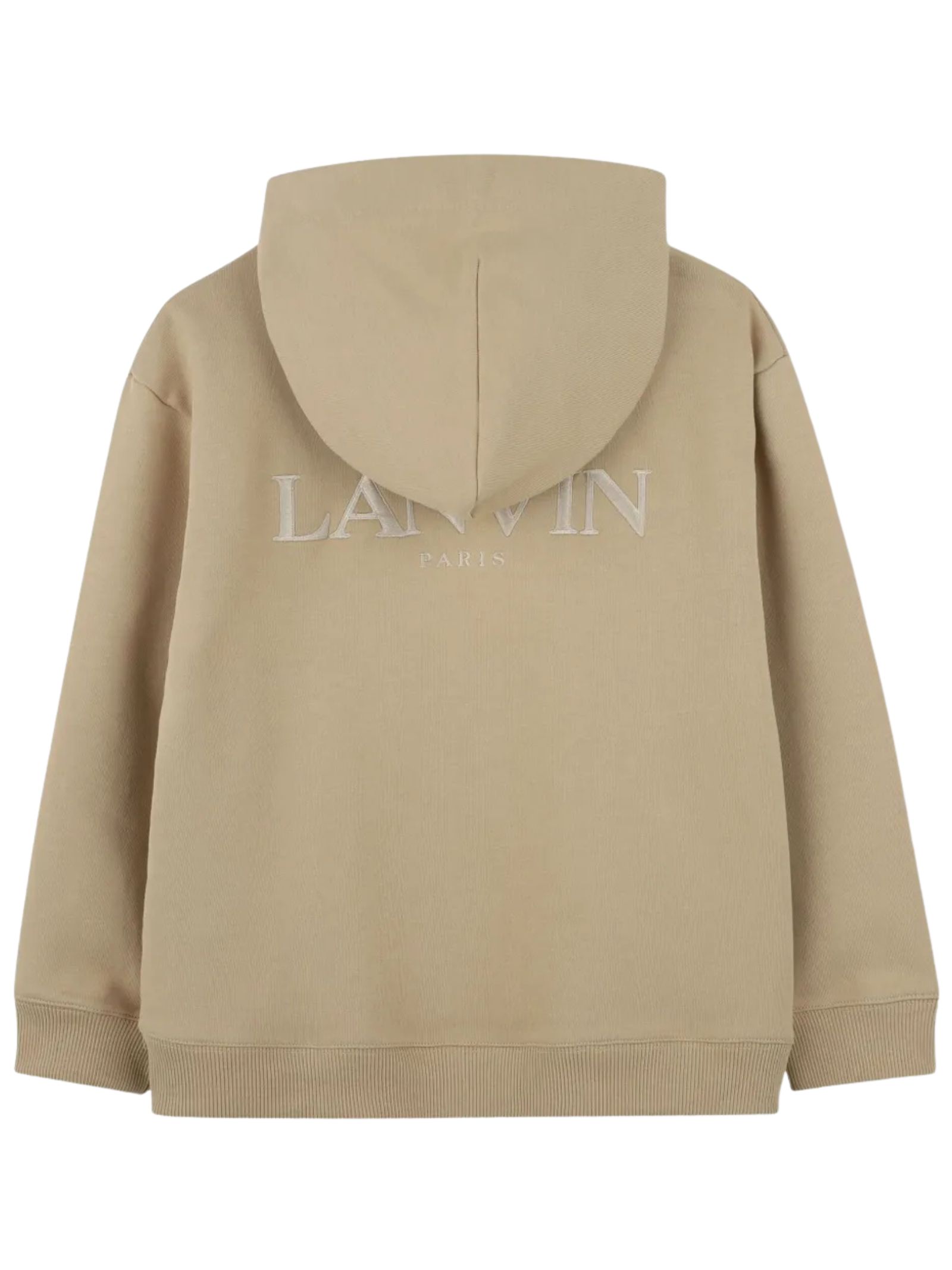 Lanvin Kids felpa di colore beige, dettagli a coontrasto, modello con cappuccio, manica lunga, zip centrale, maxi ricamo logo sul retro, due tasche laterali, orli a costine, logo gommato applicato, vestibilità regolare. Composizione: 100% cotone