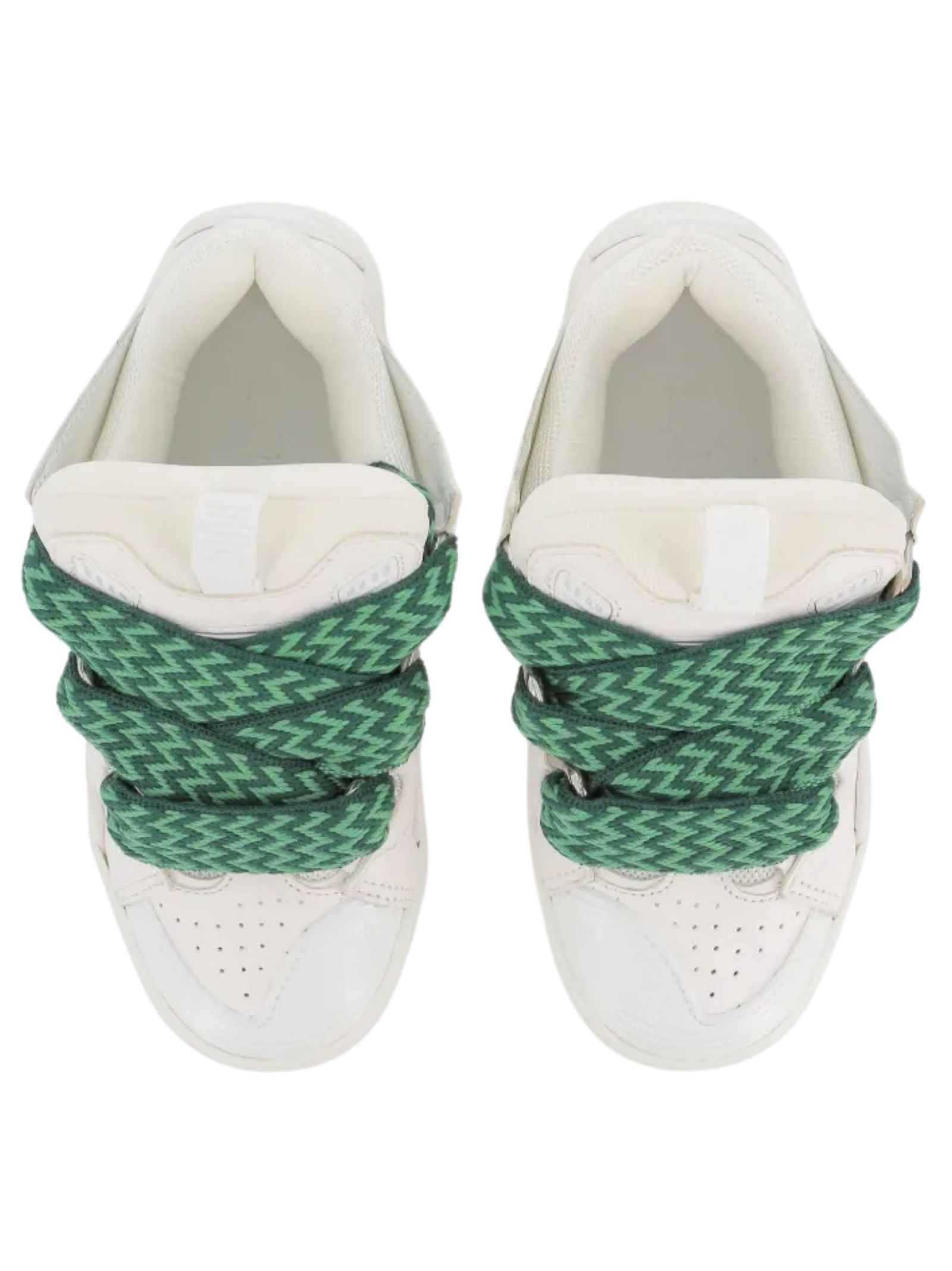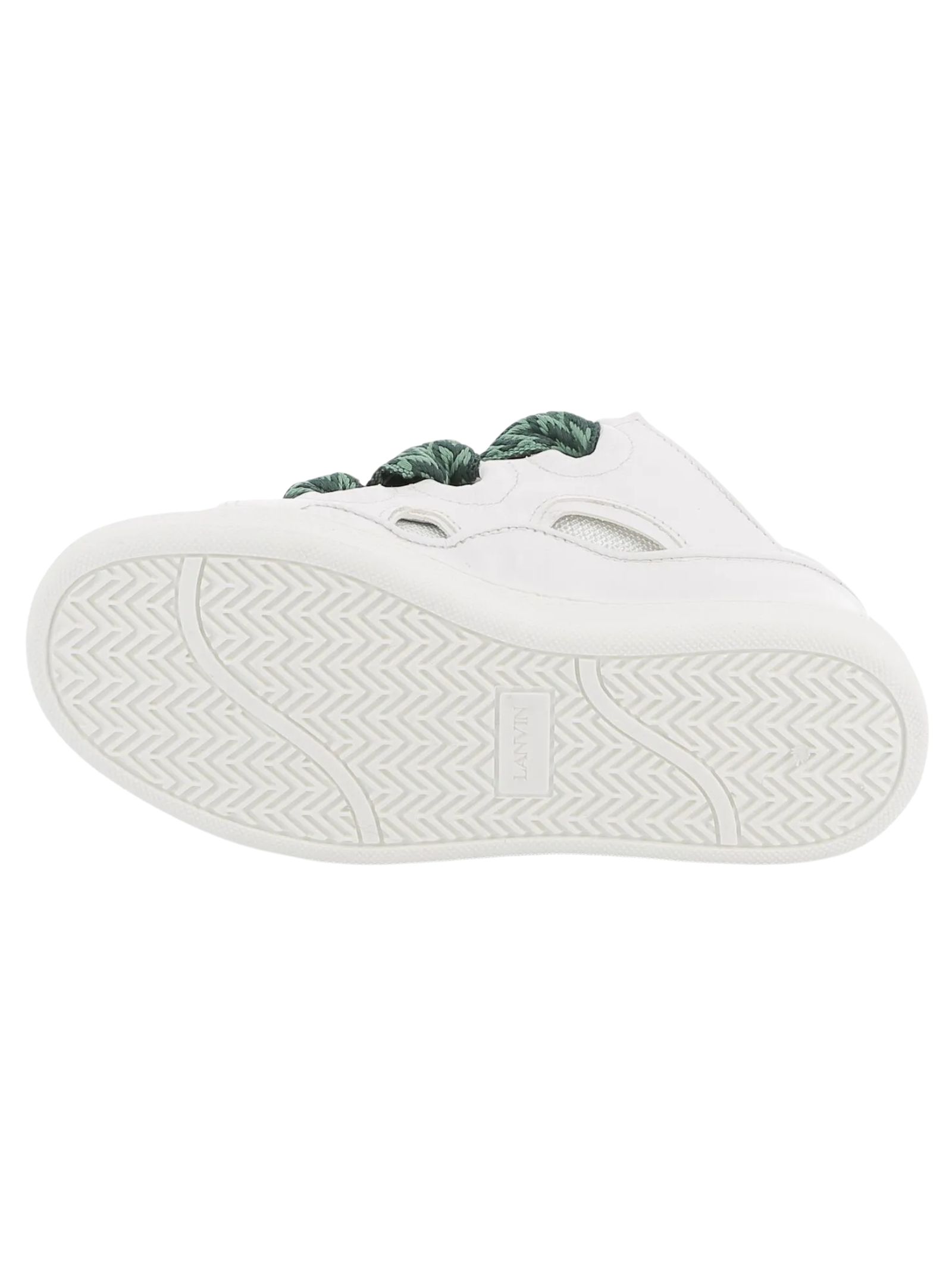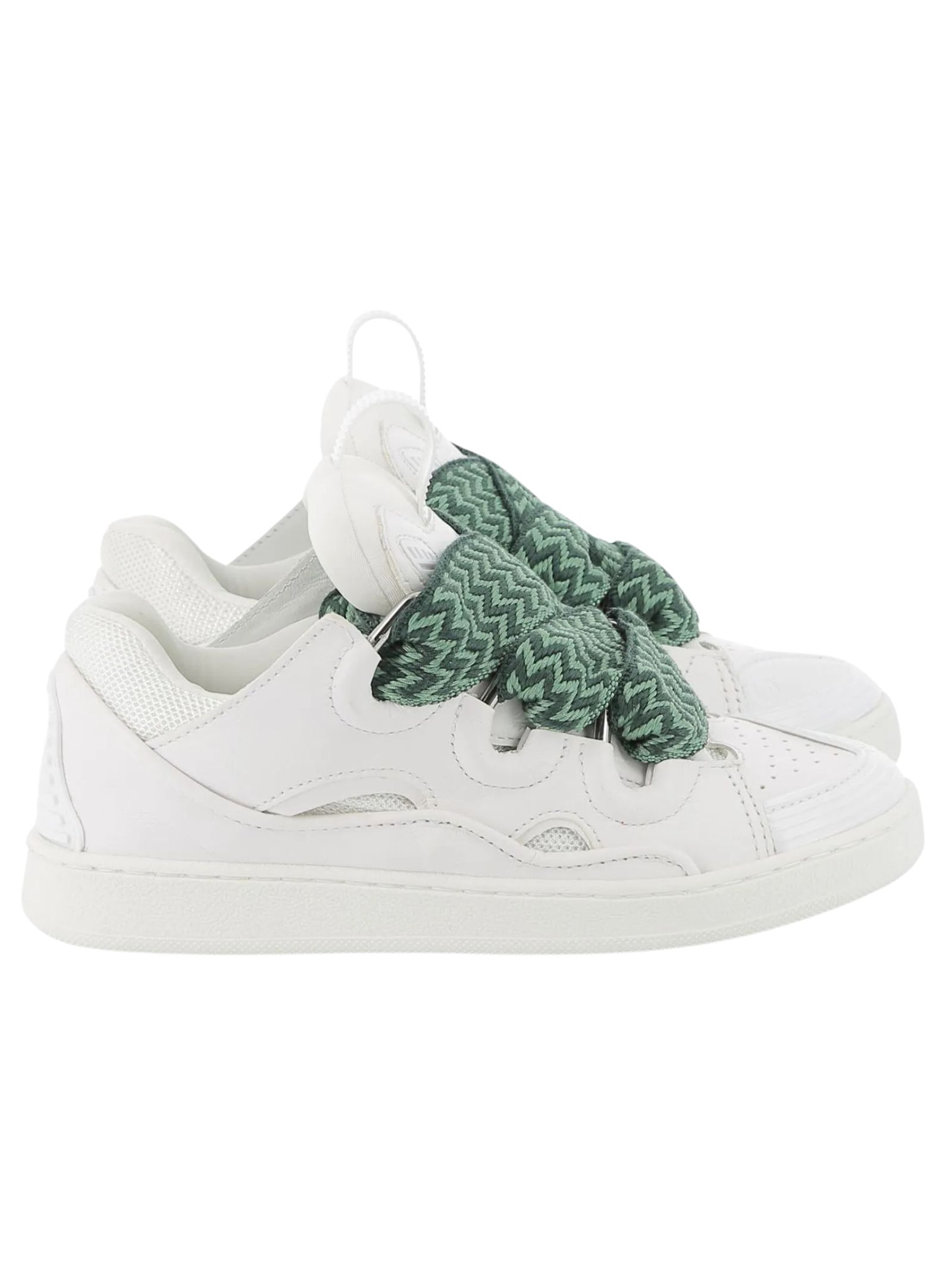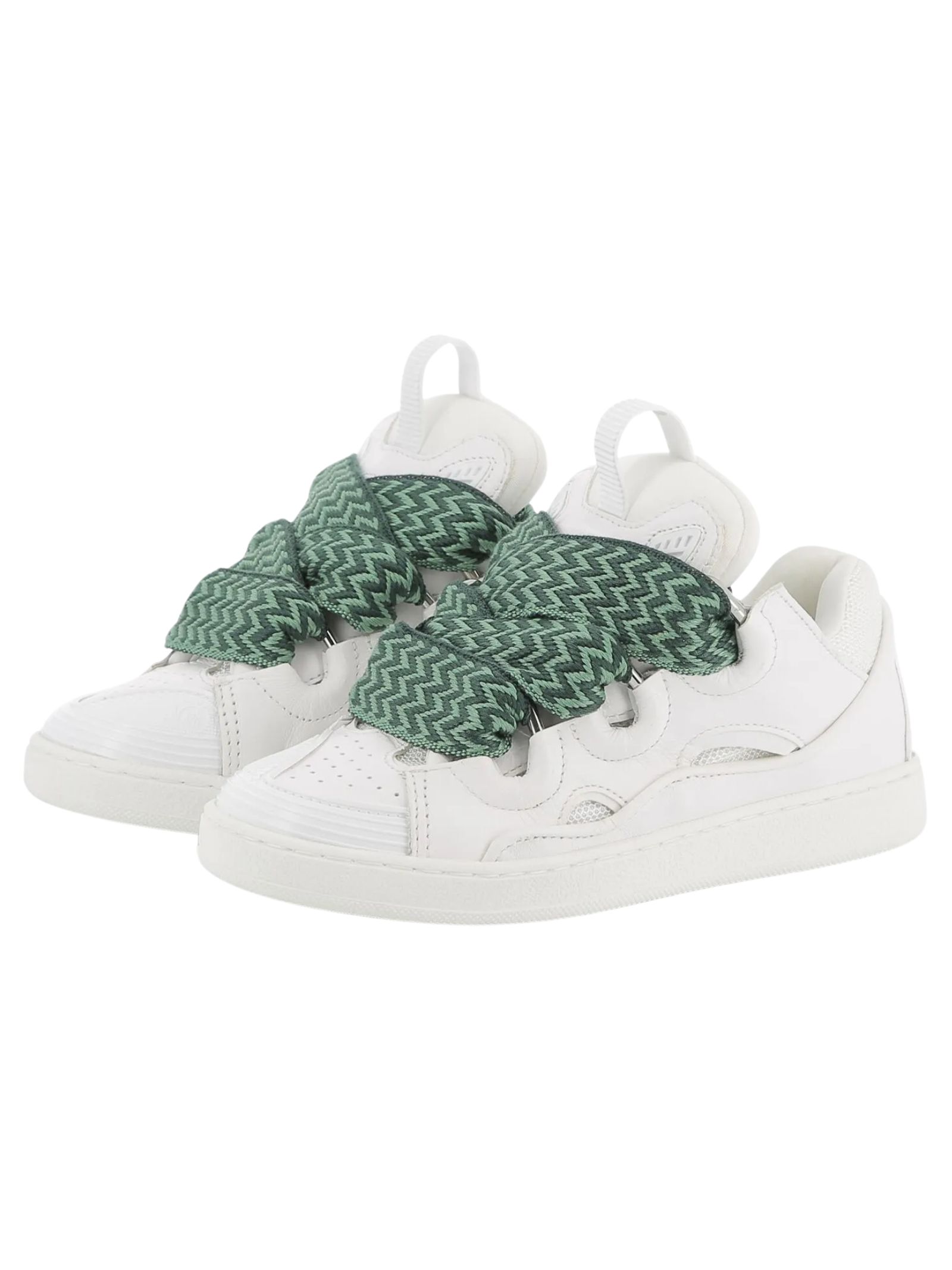 Sneakers LANVIN kids di colore bianco con design a inserti e lacci di colore verde. Chiusura frontale con lacci, pull-tab sulla linguetta, punta traforata, suola in gomma di colore bianco. Composizione Fodera: tessuto 100% Suola: gomma 100% Esterno: pelle 100%, tessuto 100%
