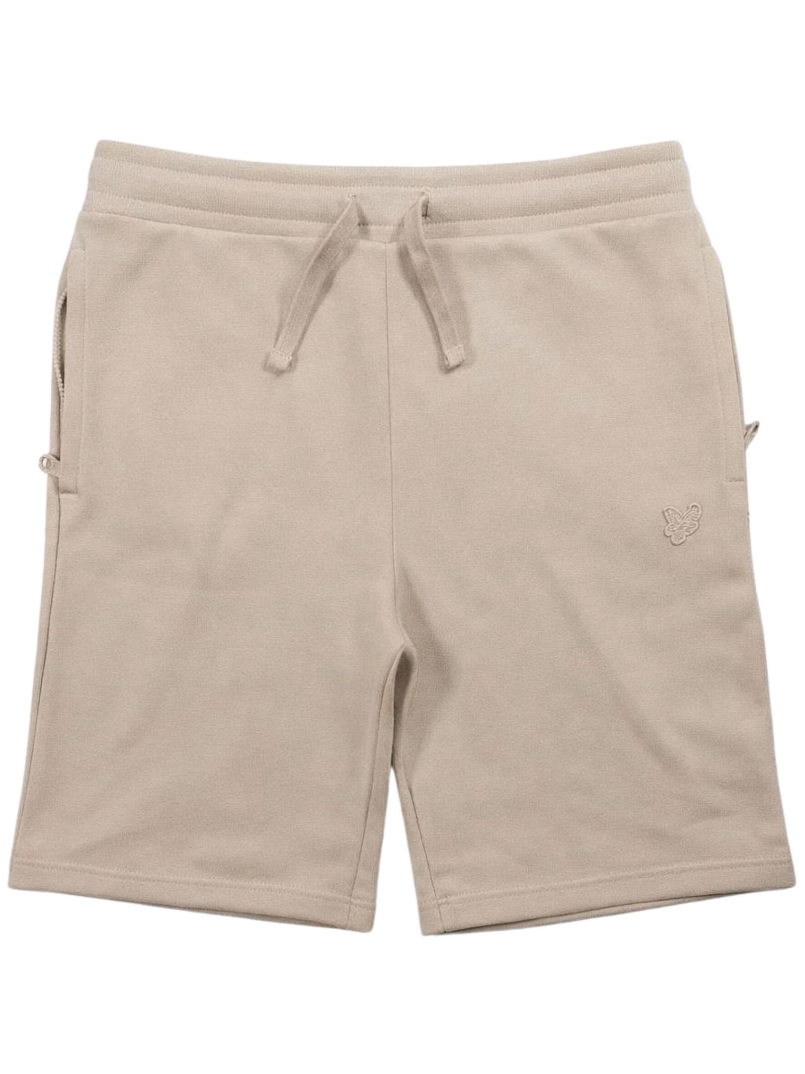Lyle & Scott Kids bermuda di colore sabbia, modello con elastico in vita e coulisse, due tasche laterali con zip, una tasca sul retro, applicazione ricamo logo, vestibilità regolare. Composizione: cotone 100%
