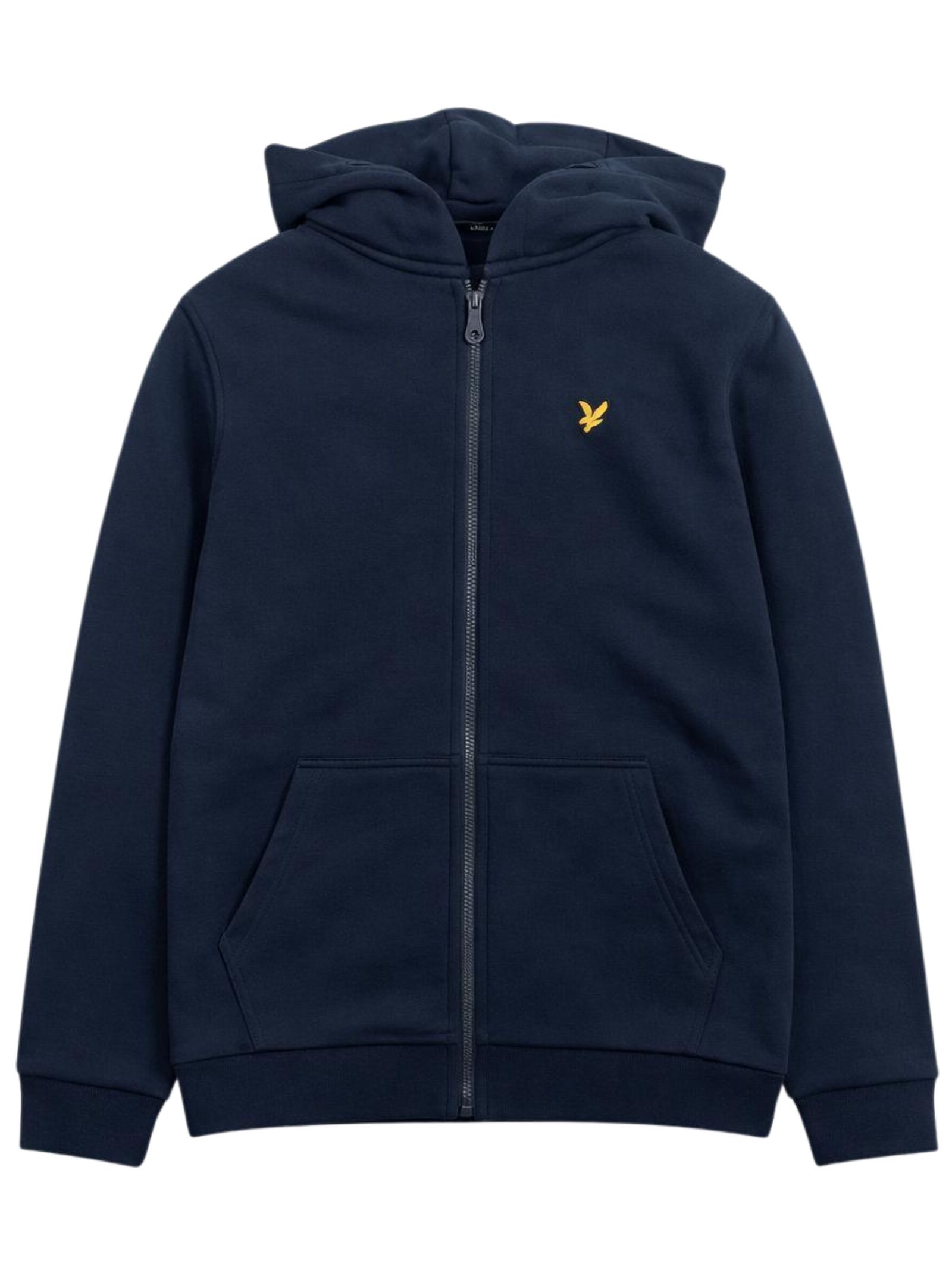 Lyle & Scott Kids felpa di colore blu, modello con cappuccio e zip centrale, manica lunga con polsini a costine, caratterizzata da ricamo logo sul petto, due tasche laterali, orlo dritto, vestibilità regolare. Composizione: 100% cotone
