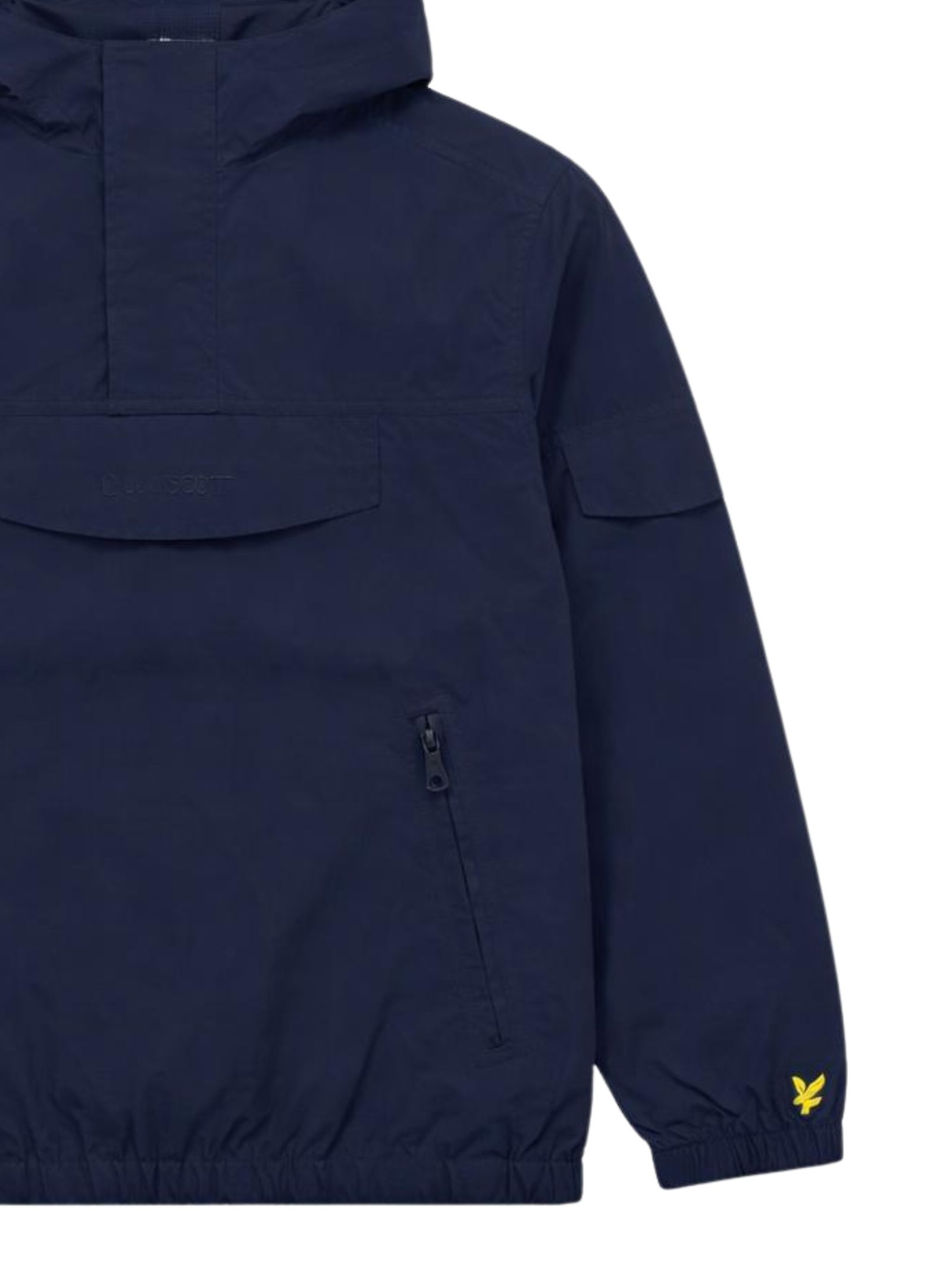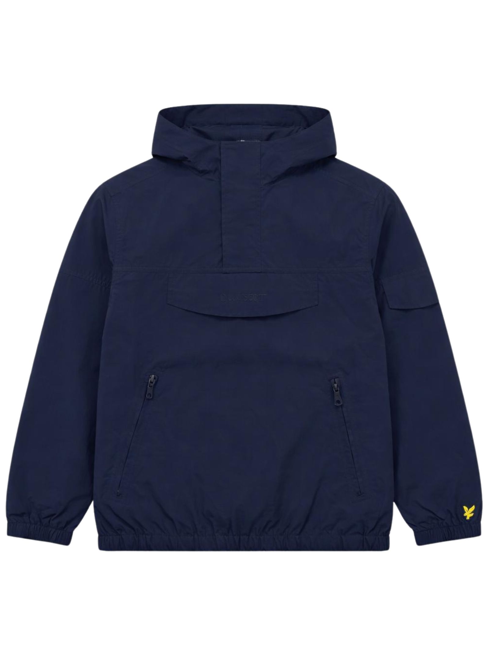 Lyle & Scott Kids giubbino di colore blu, tessuto antivento, modello con cappuccio, collo con mezza zip, due tasche laterali con zip, un tascone centrale con patta e zip, tasca sul braccio, logo ricamato, orli con elastico, vestibilità regolare. Composizione: Poliestere 100%