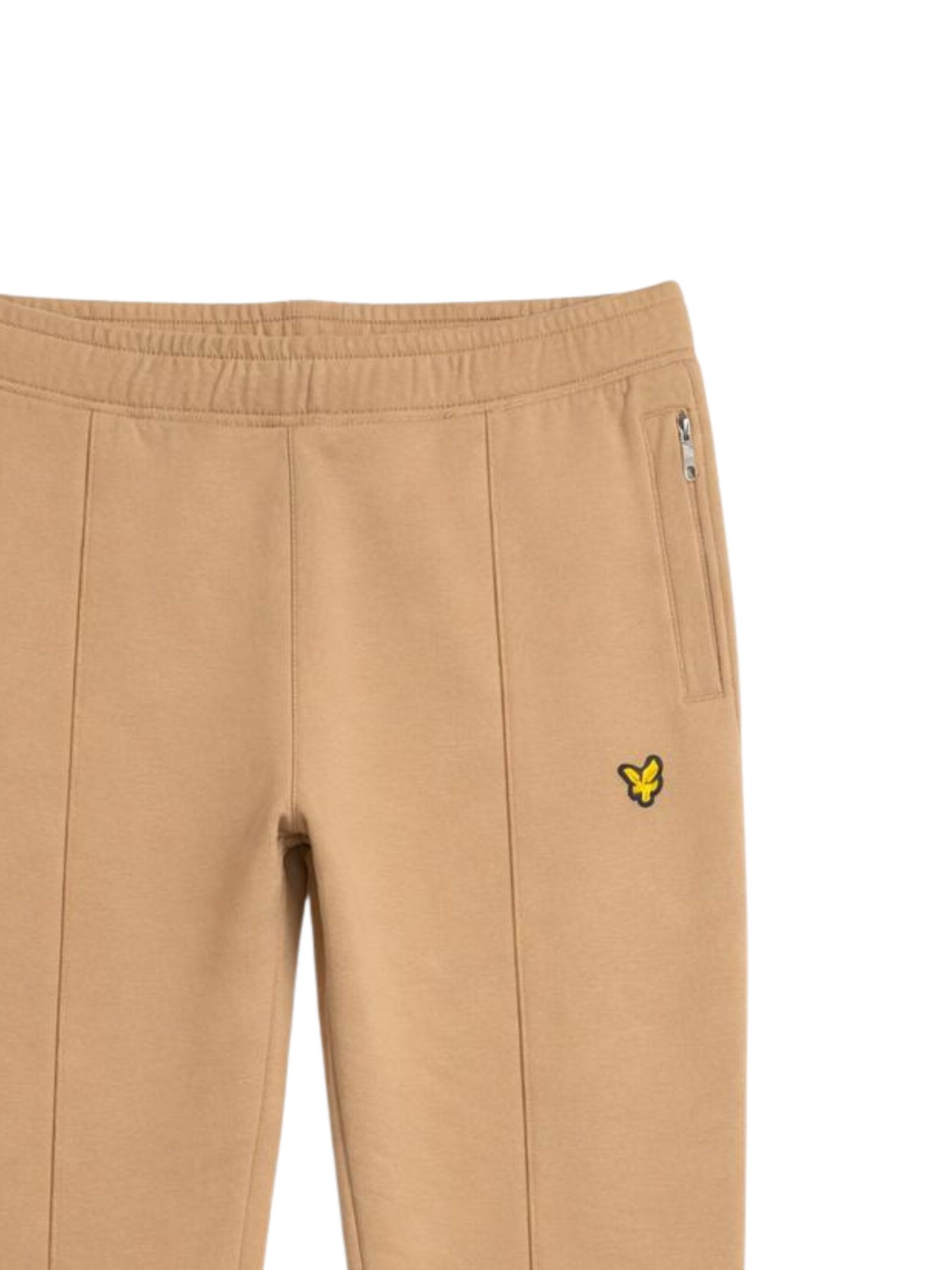 Lyle & Scott Kids pantalone di colore beige, modello con elastico in vita e coulisse interna, due tasche laterali con zip, applicazione ricamo logo a contrasto, caviglie elastiche, vestibilità regolare. Composizione: 78% cotone 17% poliestere 5% elastan