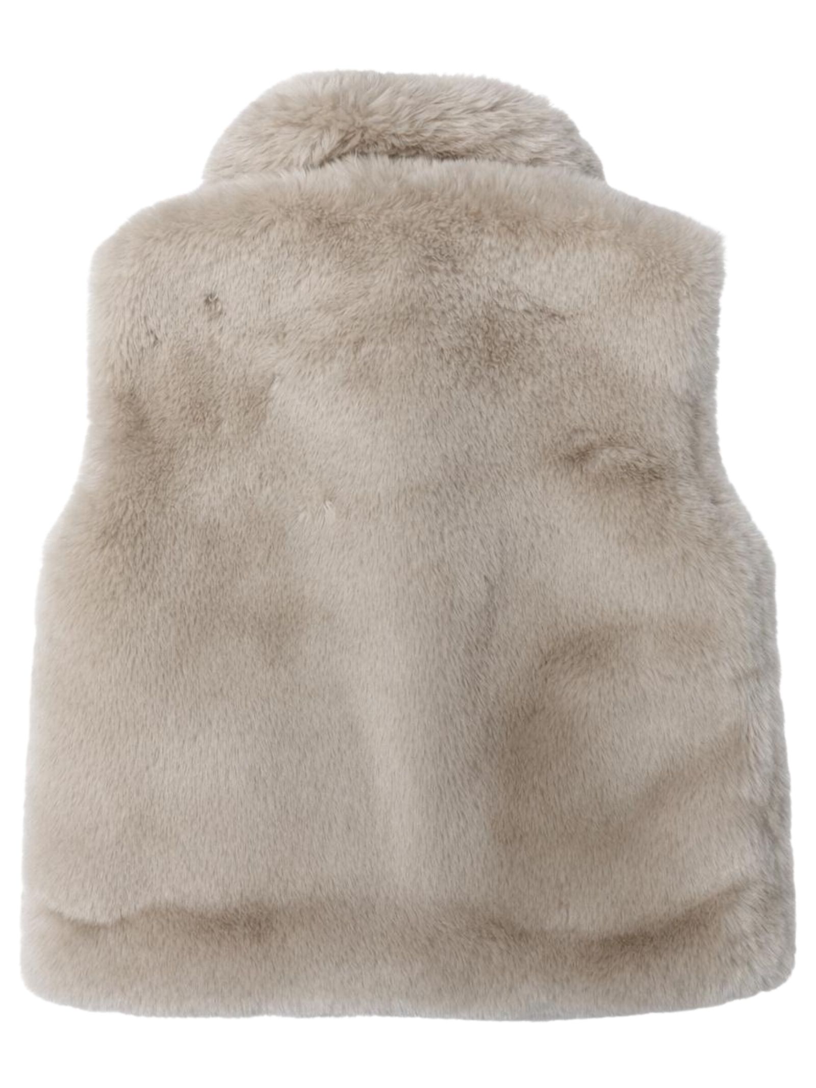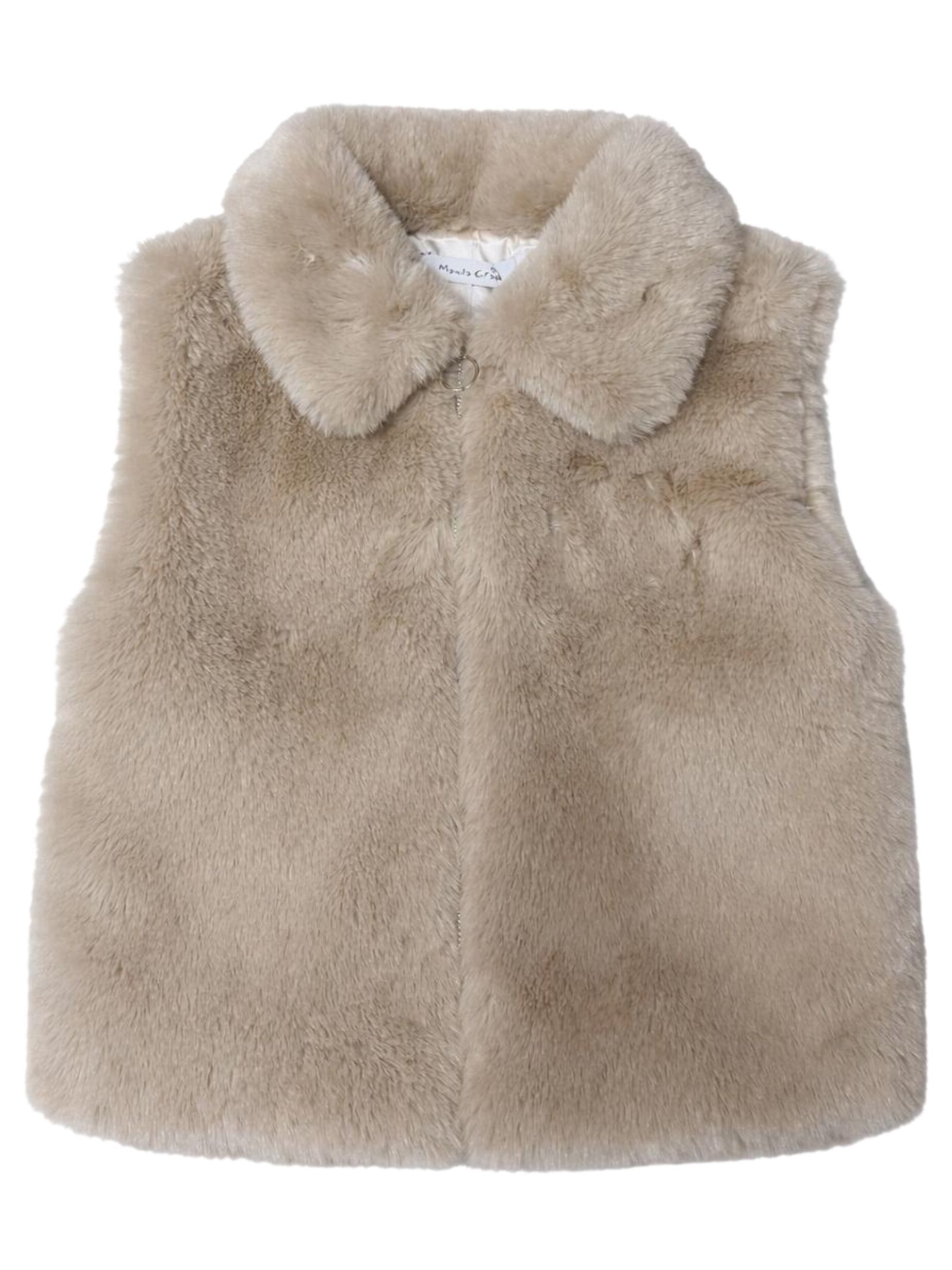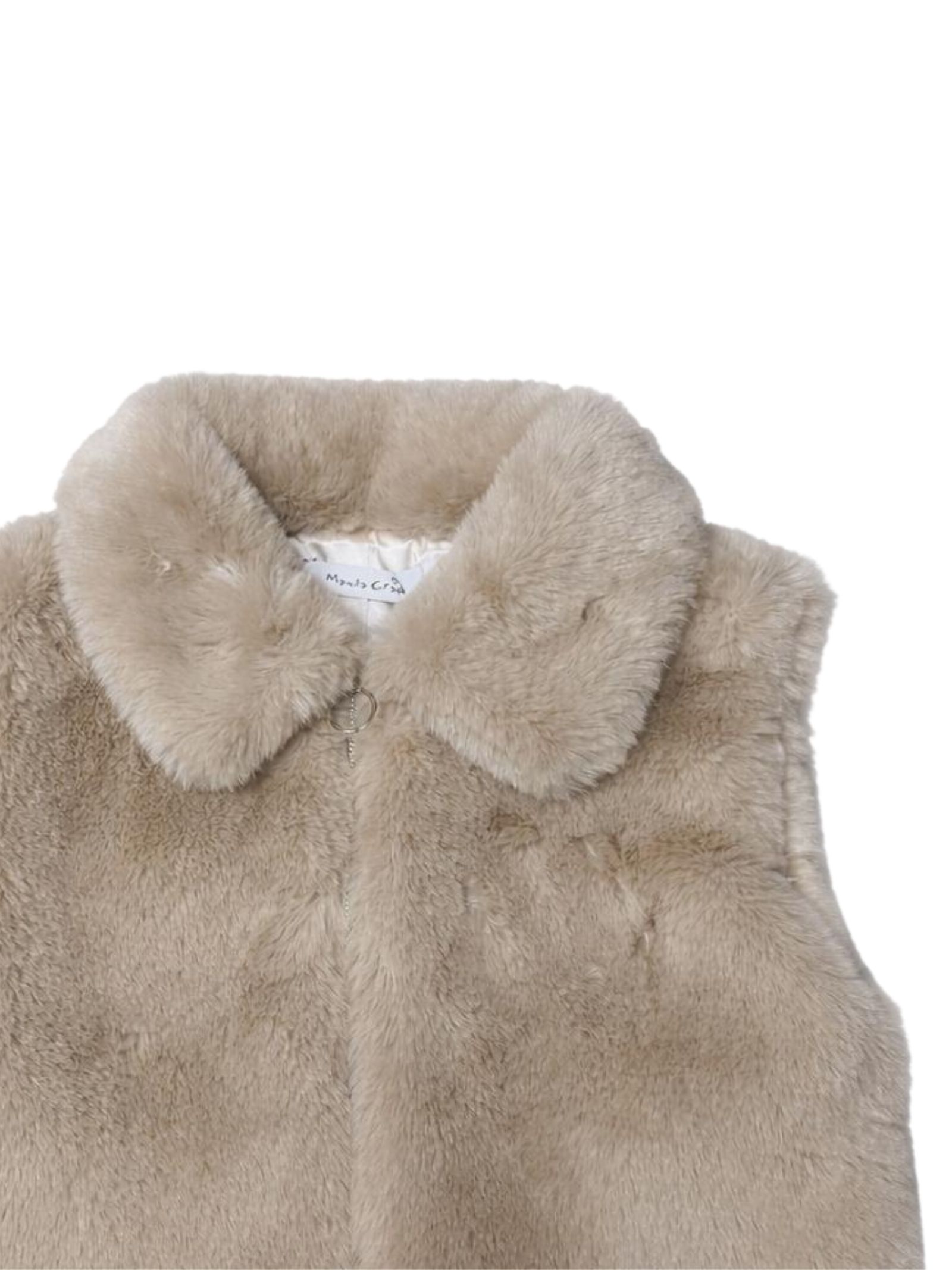 Manila Grace Kids smanicato di colore beige realizzato in morbido tessuto effetto pelliccia, zip centrale, due tasche laterali, vestibilità regolare. Composizione: Poliestere 100%