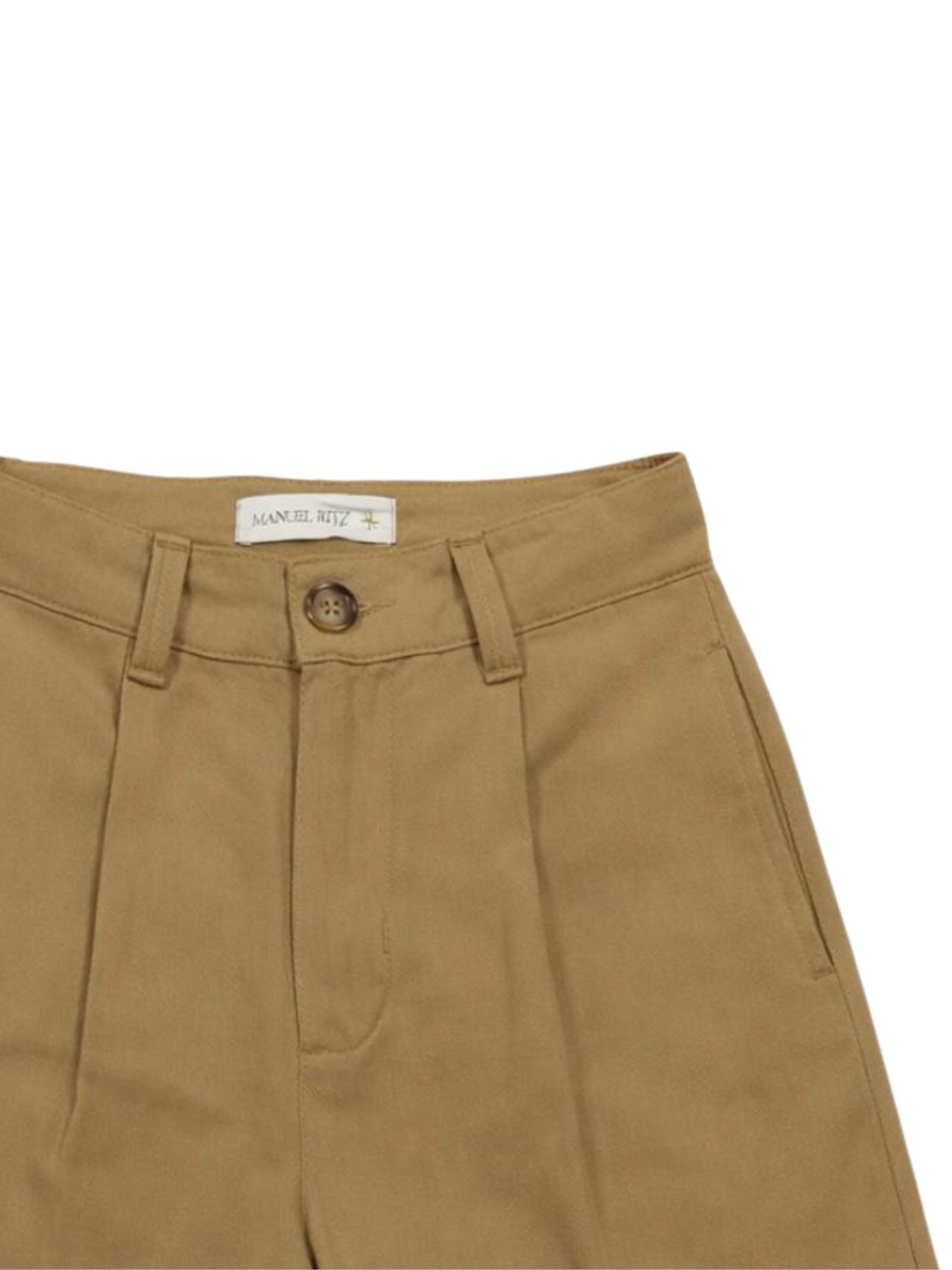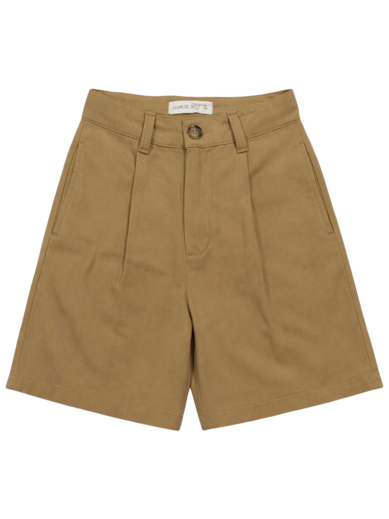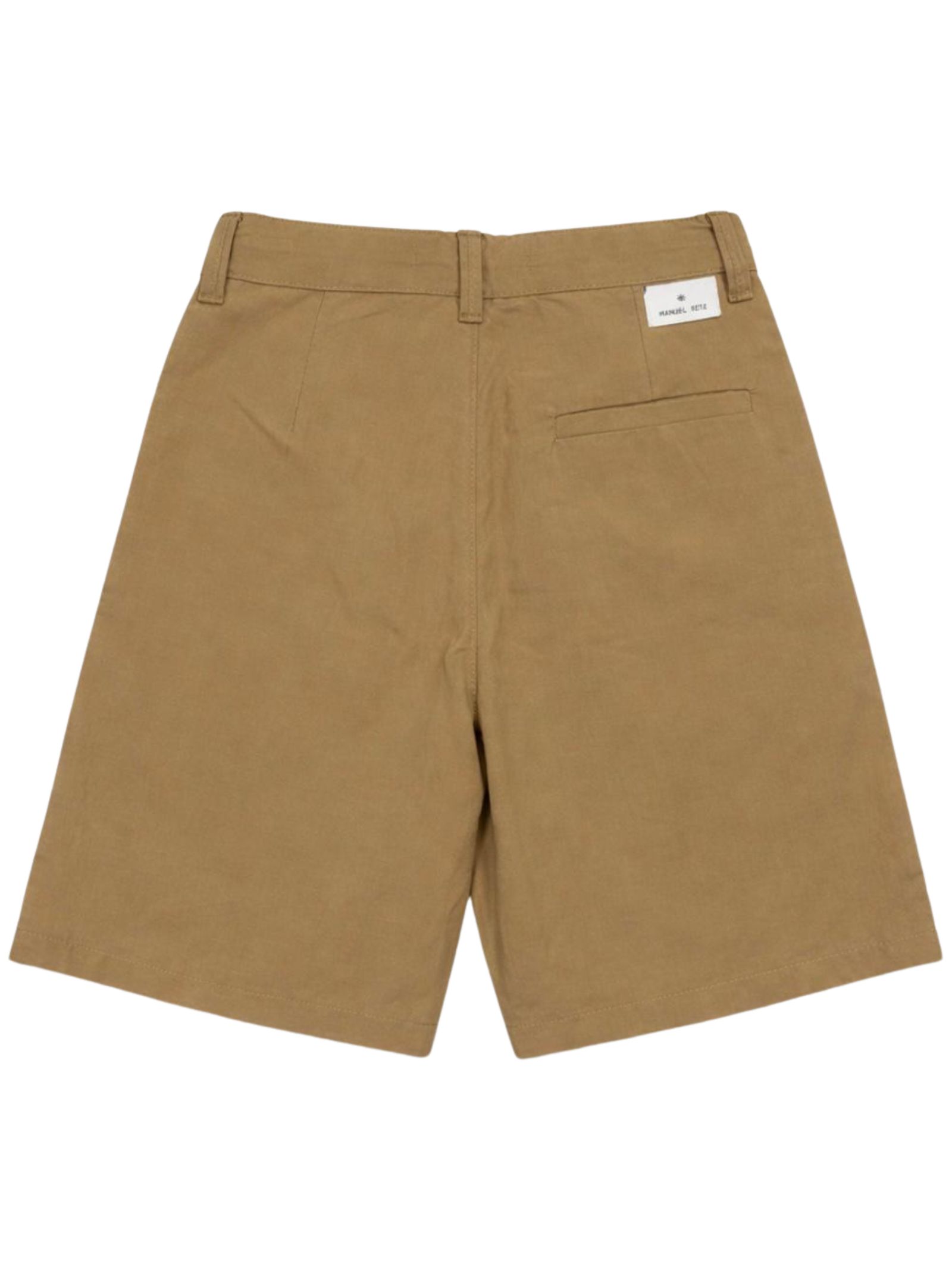 Manuel Ritz Kids bermuda di colore beige, modello con vita regolare, due tasche laterali, una tasca sul retro, due tasche cargo, applicazione logo, vestibilità regolare. Composizione: 80% viscosa 20% lino. Made in Italy