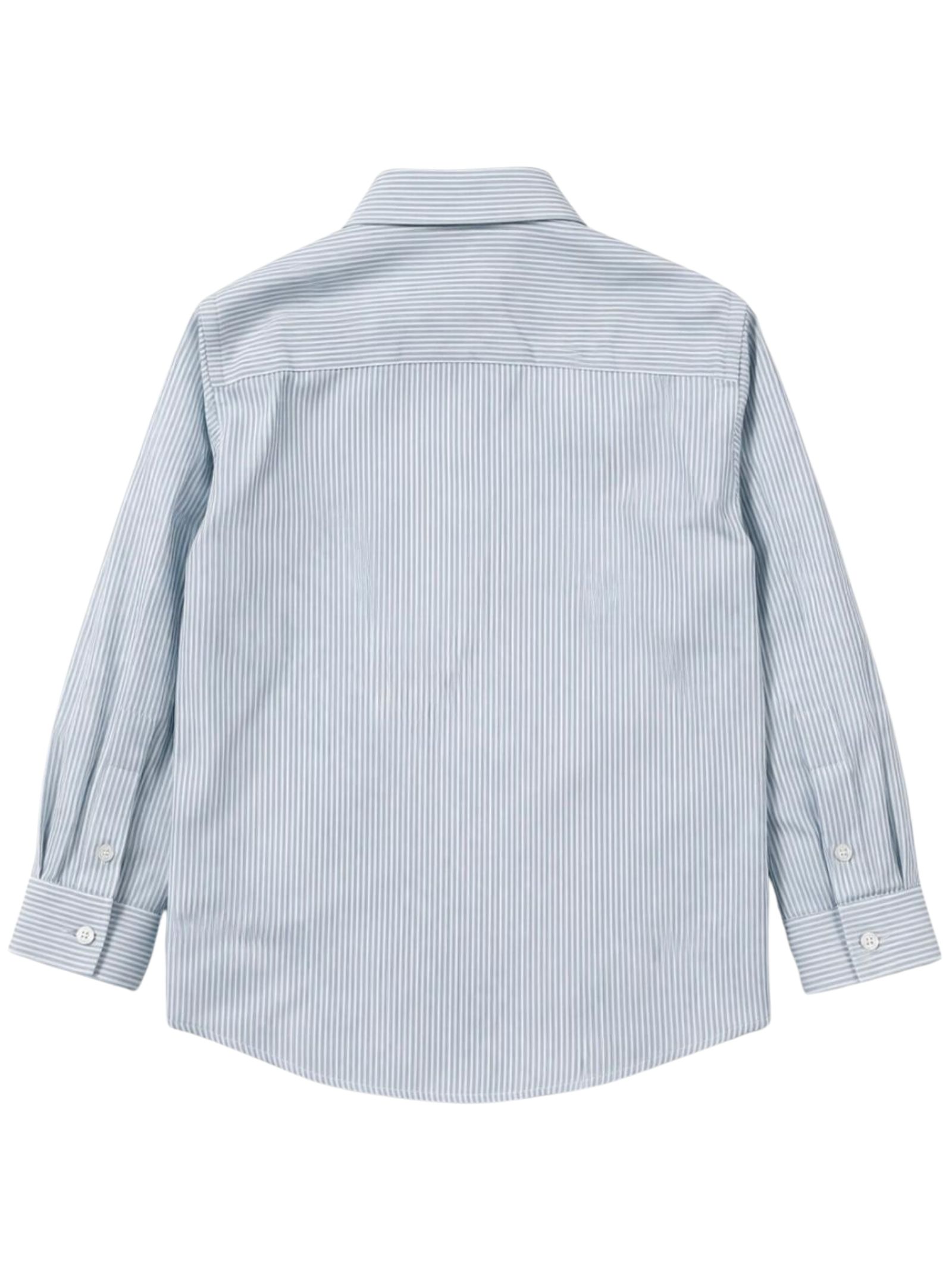 Manuel Ritz Kids camicia di colore azzurro in fantasia a righini bianco, colletto classico, maniche lunghe con polsini, orlo curvo, vestibilità regolare. Composizione: 100% cotone. Made in Italy