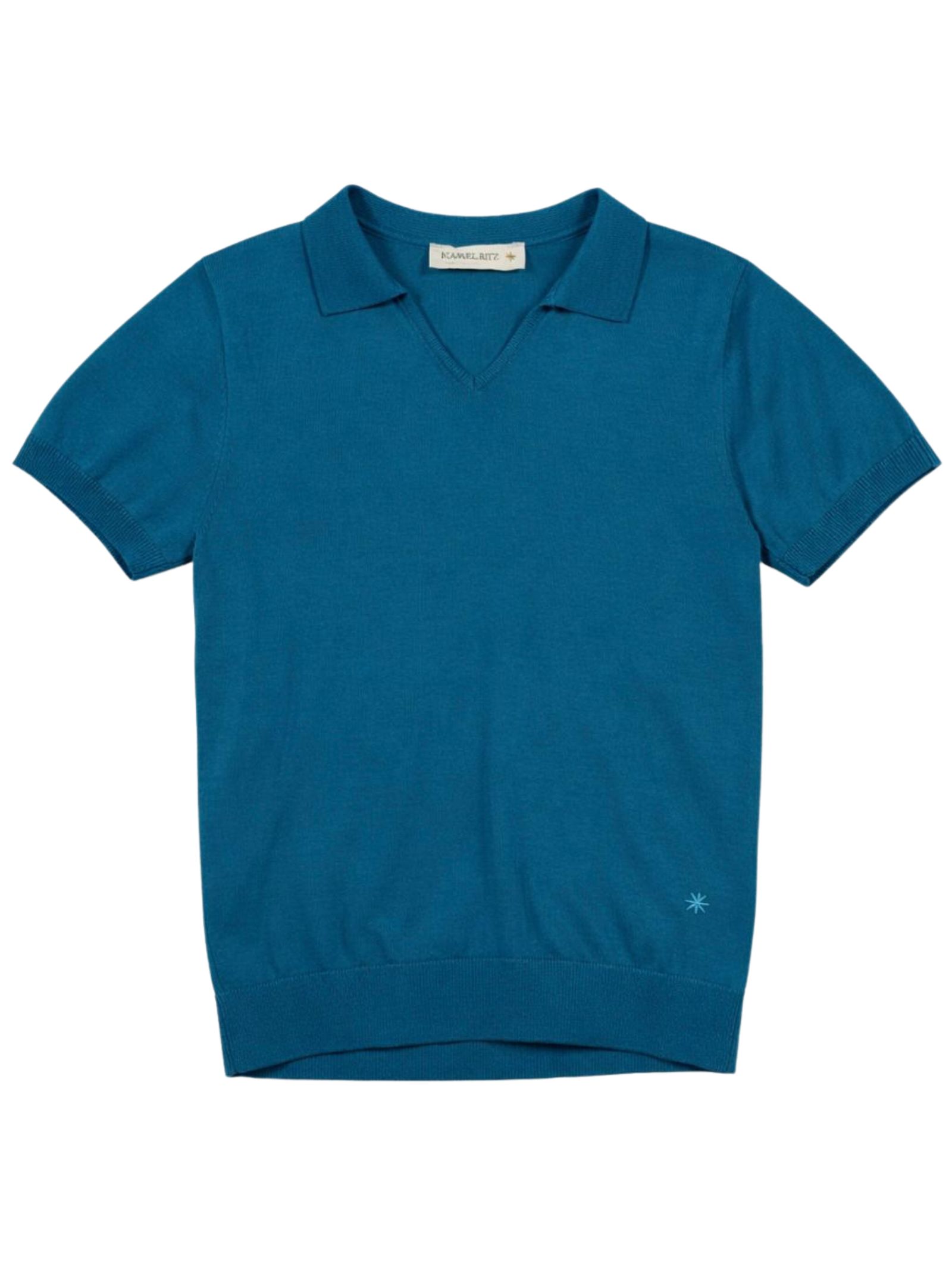 Manuel Ritz Kids polo di colore avio, modello mezza manica, logo ricamato, orlo dritto, vestibilità regolare. Composizione: 65% viscosa 35% poliammide
