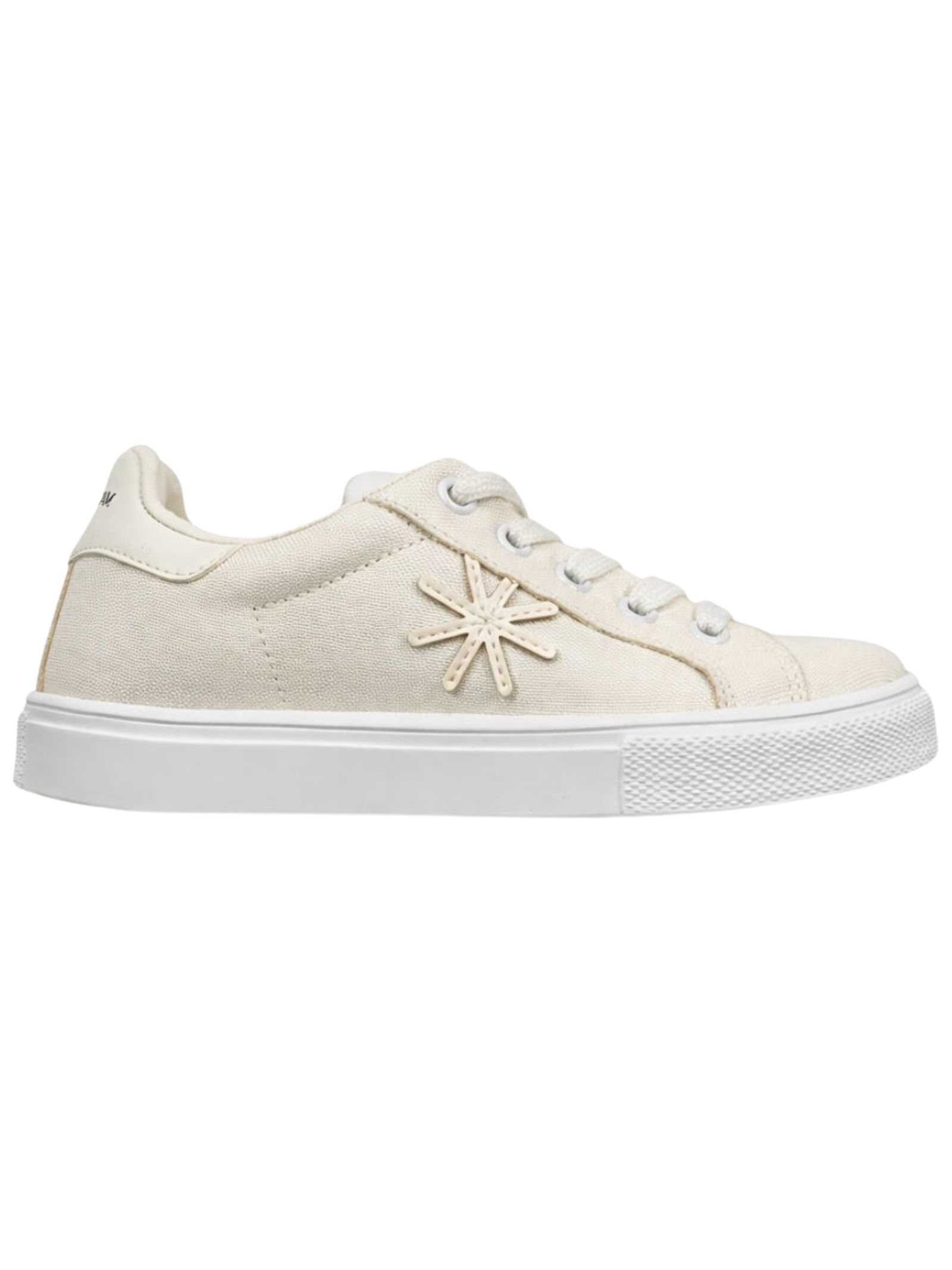 Manuel Ritz Kids scarpe realizzate in tela di colore bianco, dettagli a contrasto beige, inserti in pelle, design punta tonda, logo laterale, suola in gomma. Made in Italy