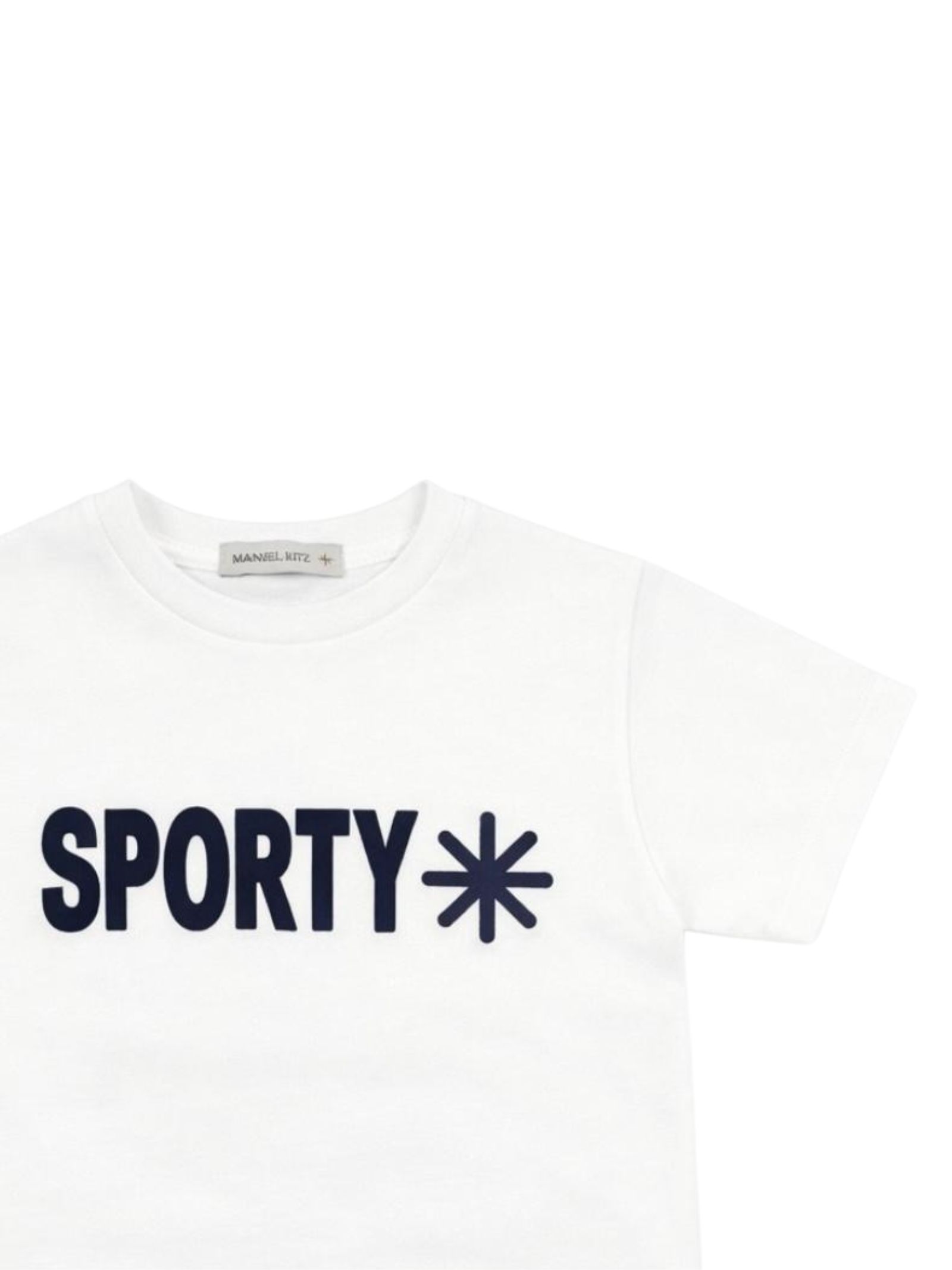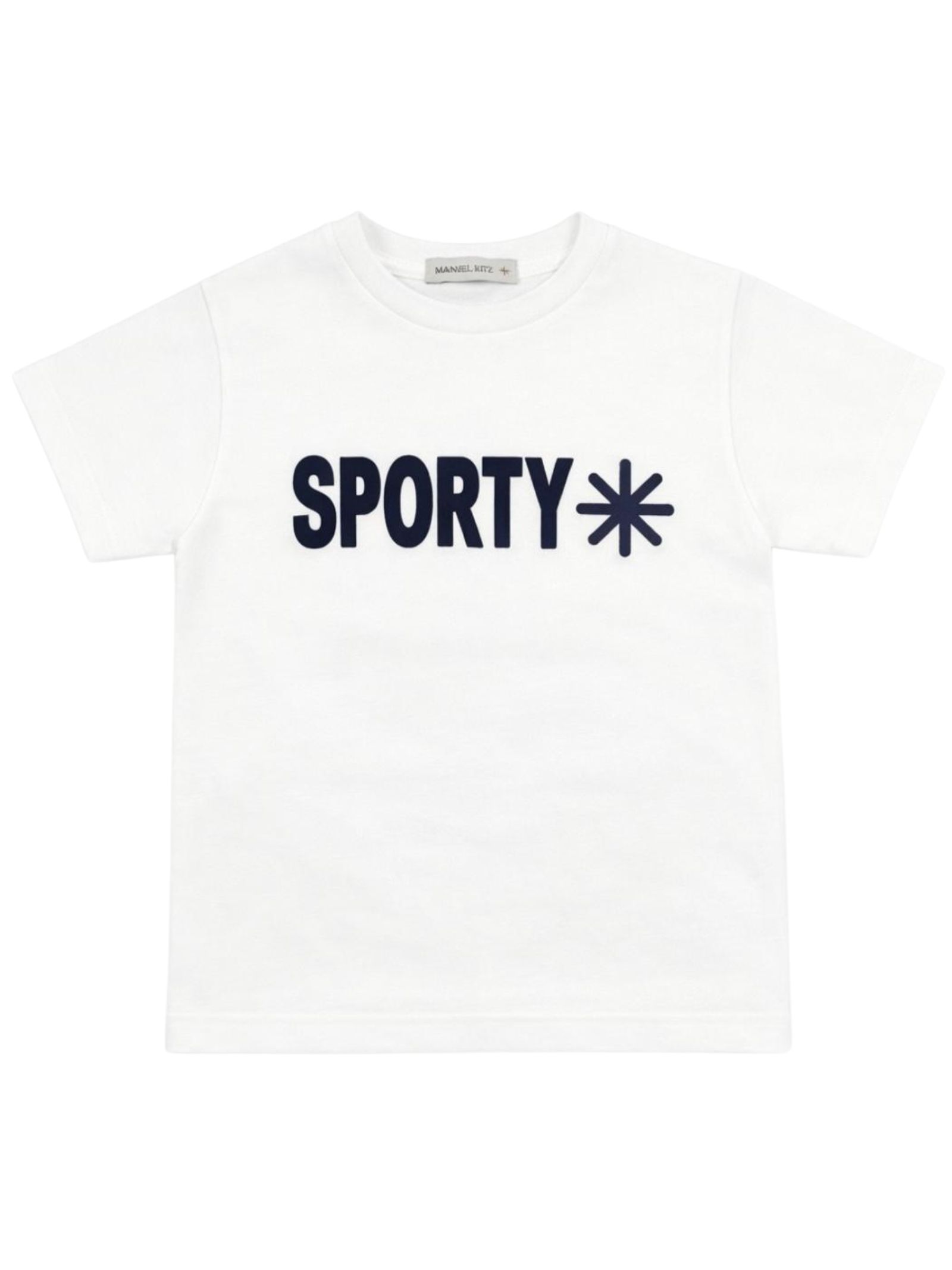 Manuel Ritz Kids t-shirt di colore bianco, modello girocollo, mezza manica, ricamo a contrasto, orlo dritto, vestibilità regolare. Composizione: 100% cotone. Made in Italy