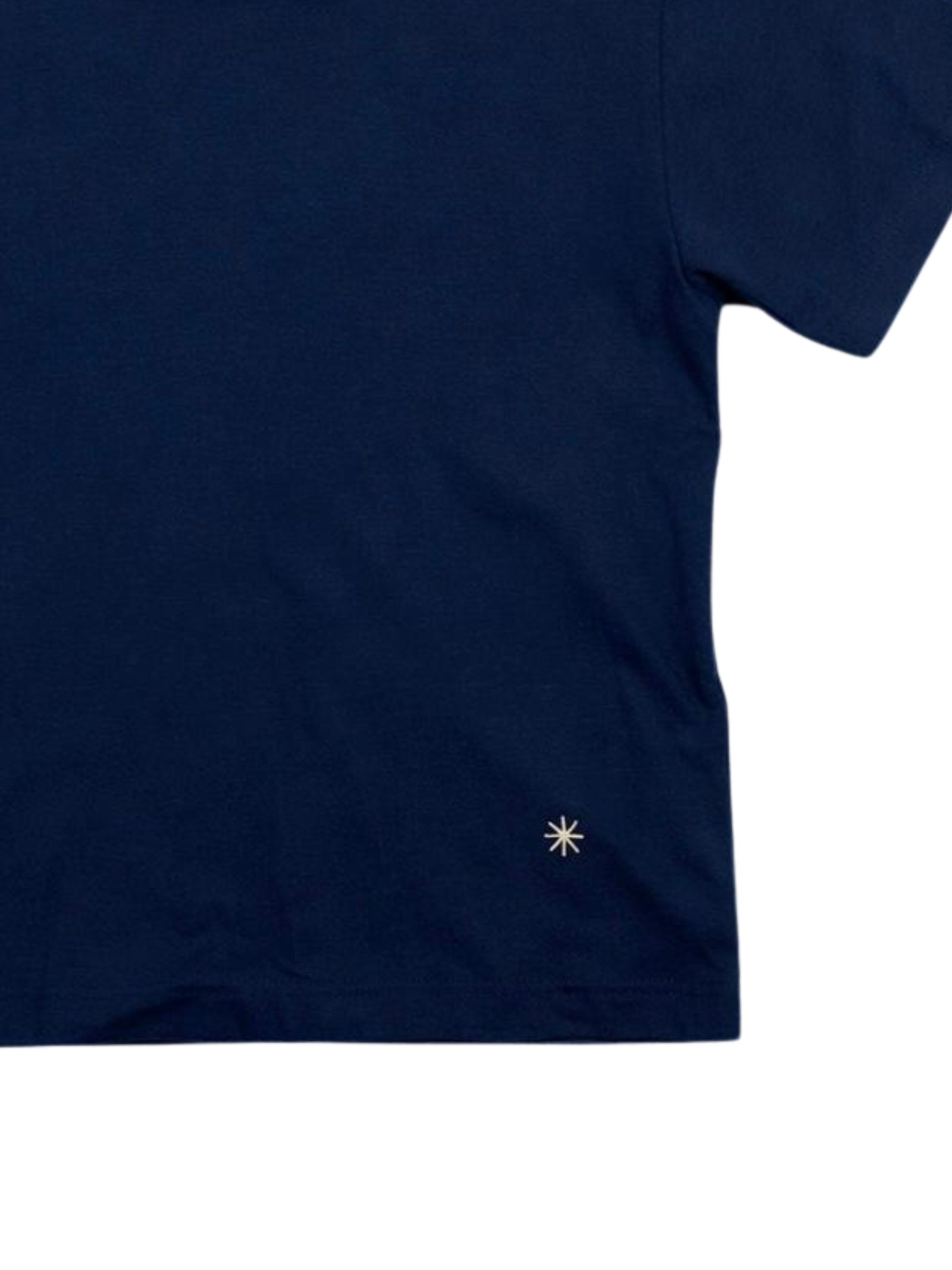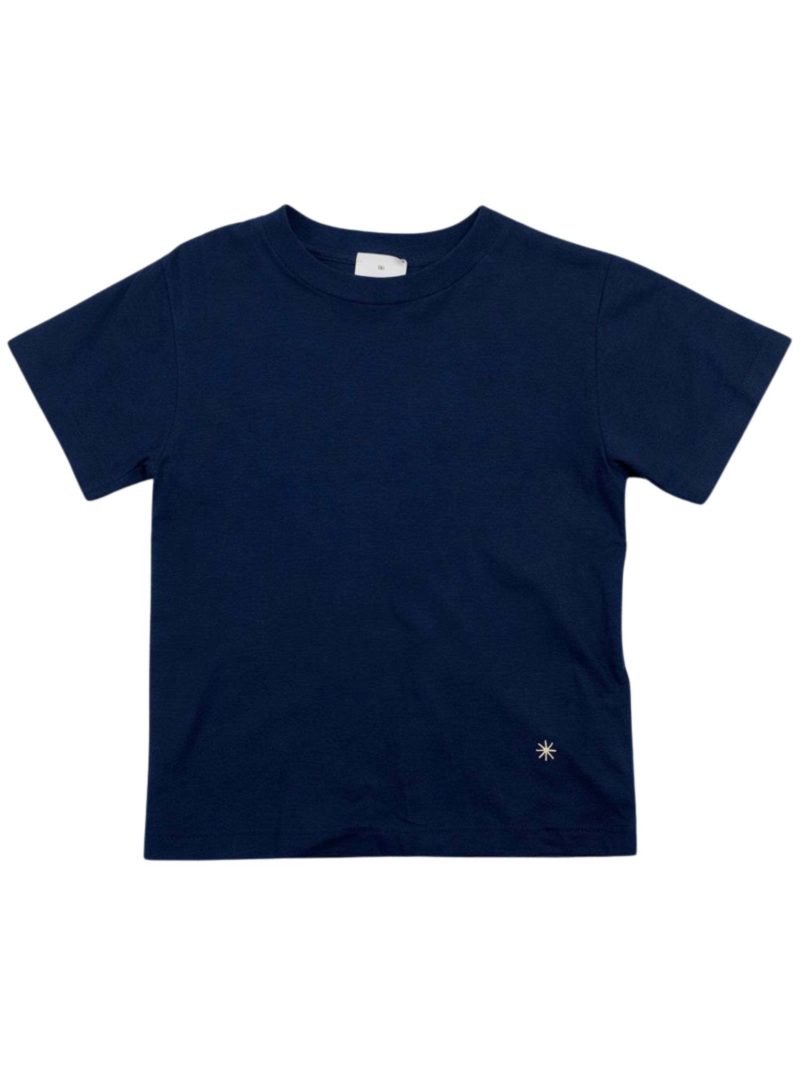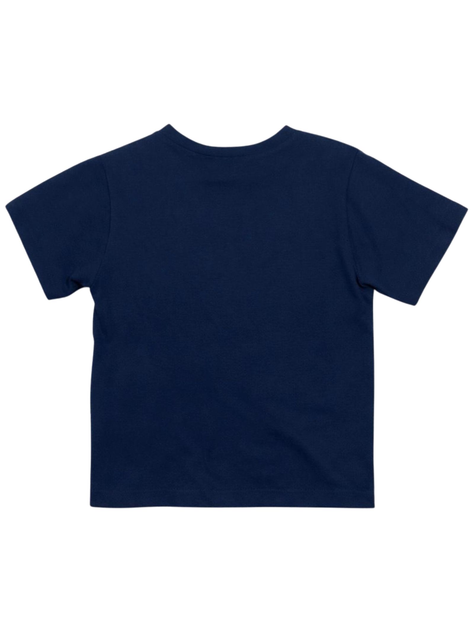 Manuel Ritz Kids t-shirt di colore blu, modello girocollo, mezza manica, ricamo logo a contrasto, orlo dritto, vestibilità regolare. Composizione: 55% lino 45% cotone. Made in Italy