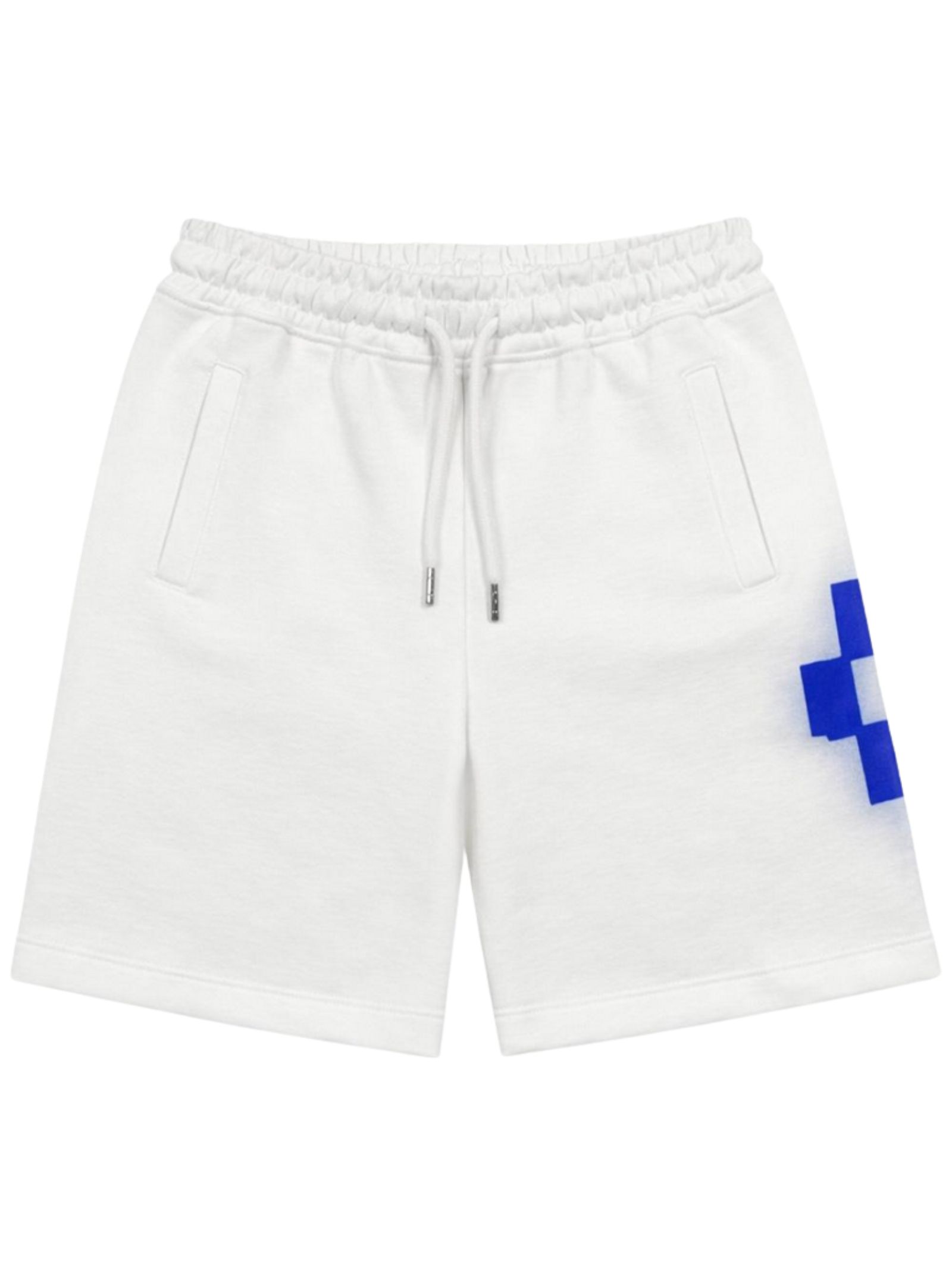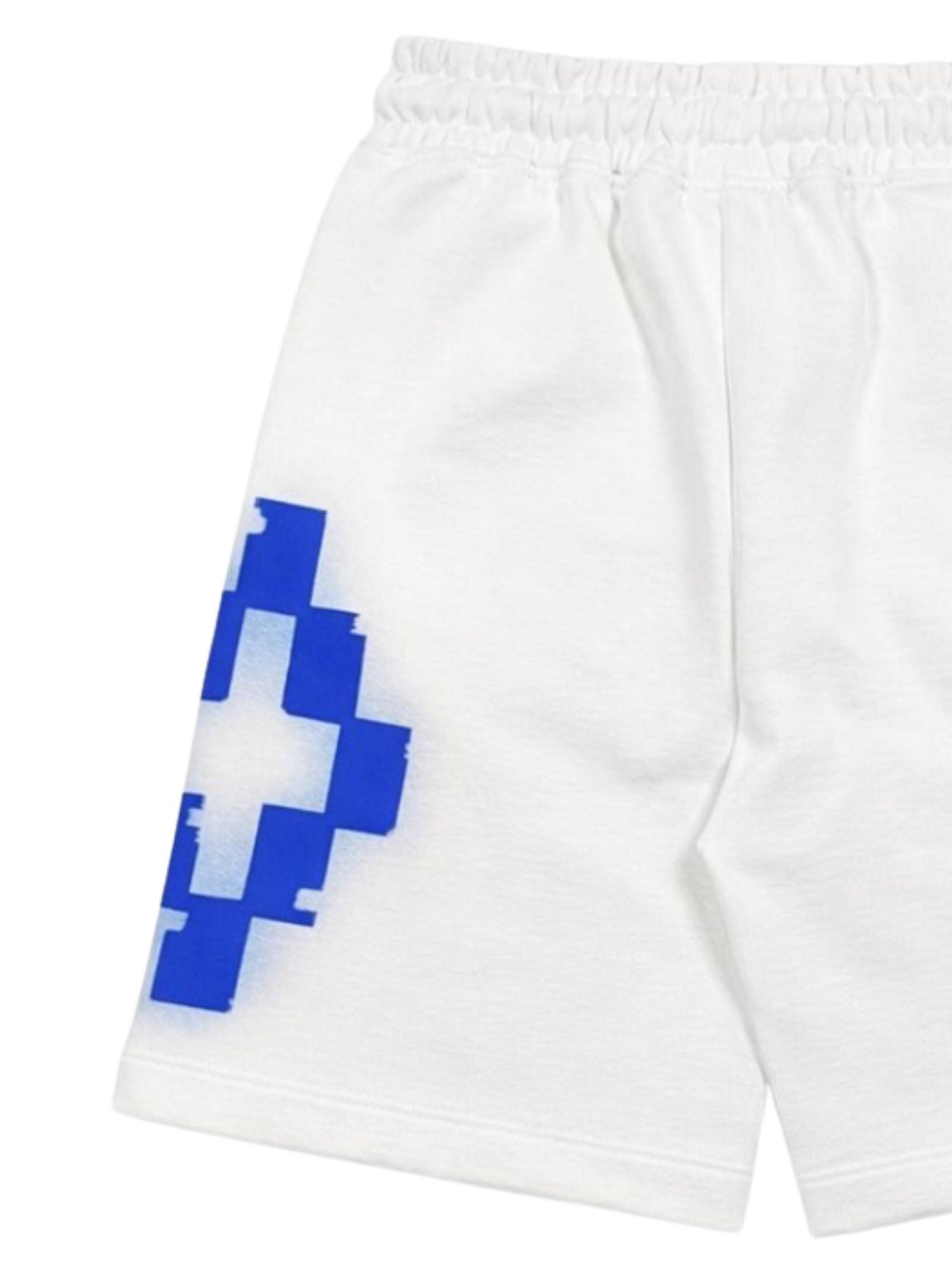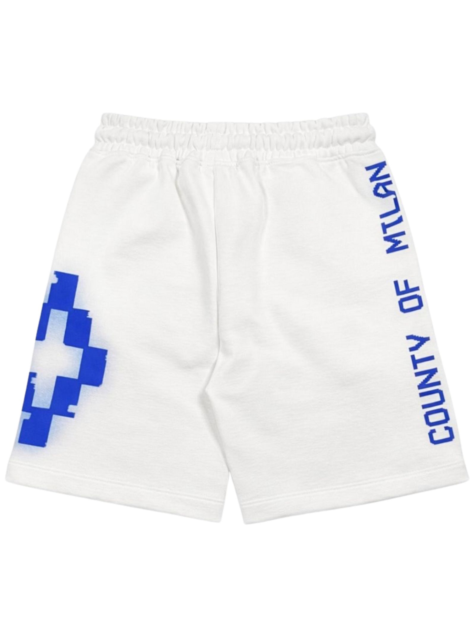 Marcelo Burlon Kids bermuda di colore bianco, logo a contrasto blu, modello con elastico in vita e coulisse, due tasche laterali, vestibilità regolare. Composizione: 100% cotone. Made in Italy