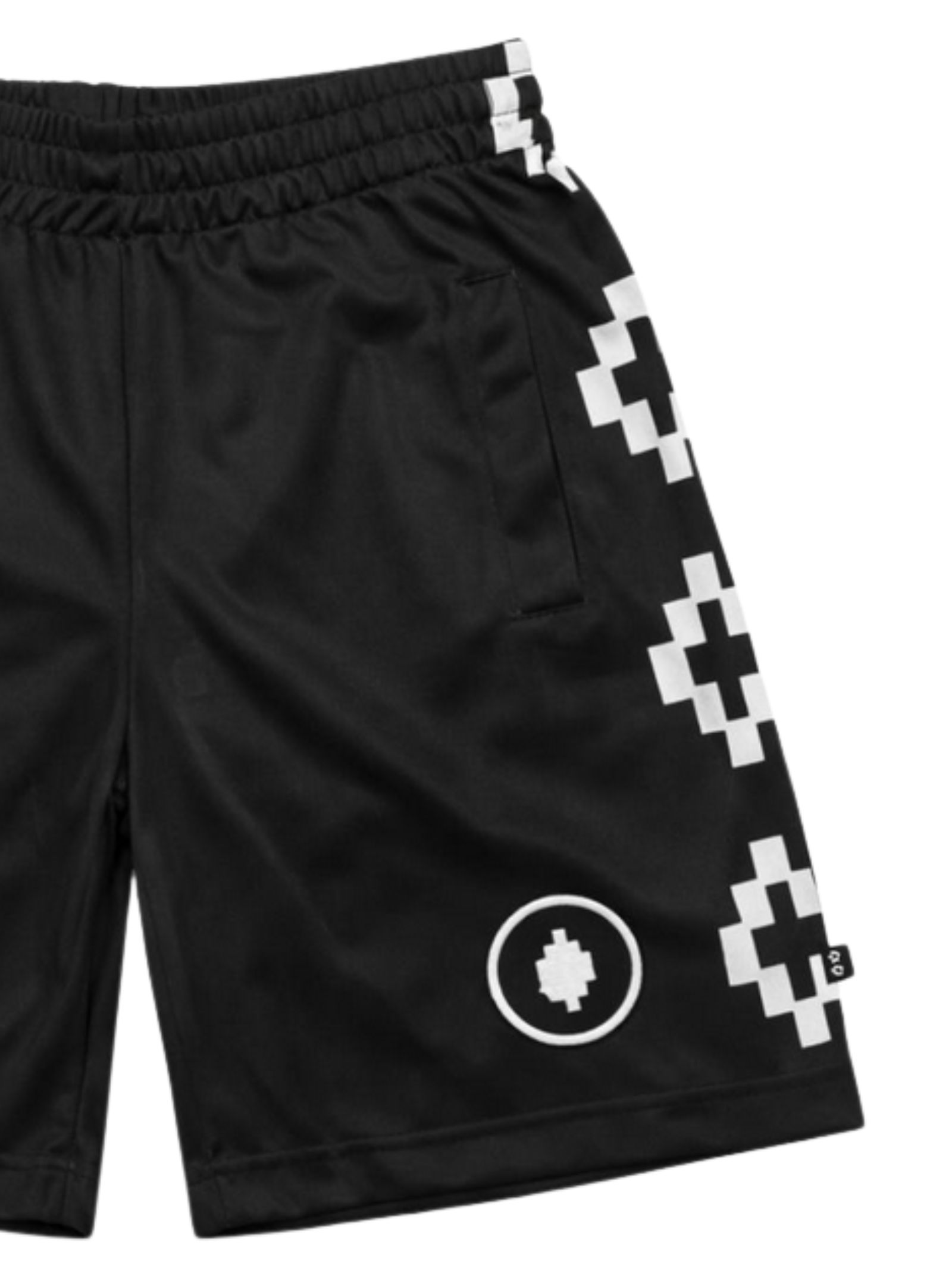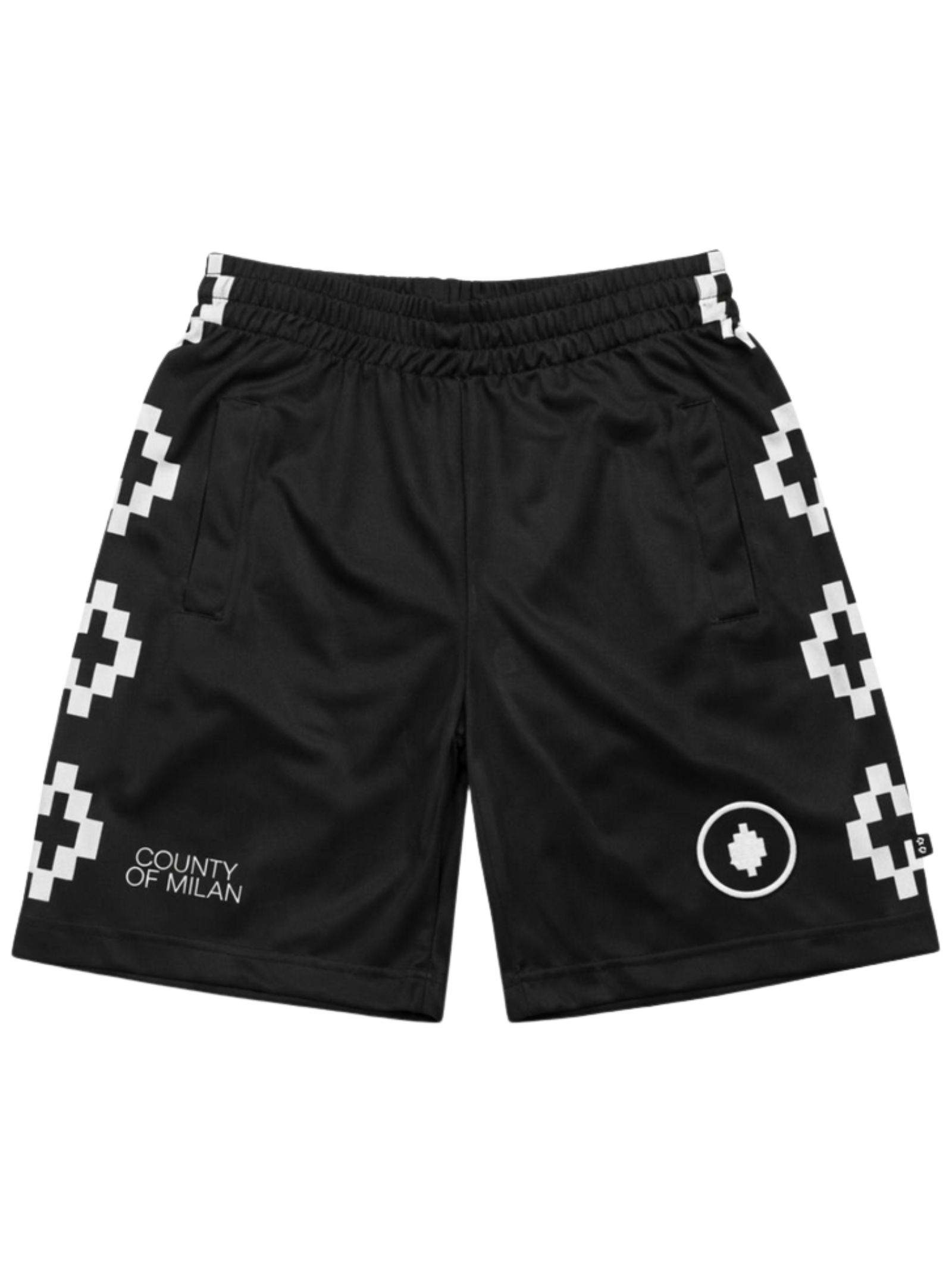 Marcelo Burlon Kids bermuda di colore nero, stampa a contrasto, modello con elastico in vita, due tasche laterali, vestibilità regolare. Composizione: 100% poliestere. Made in Italy