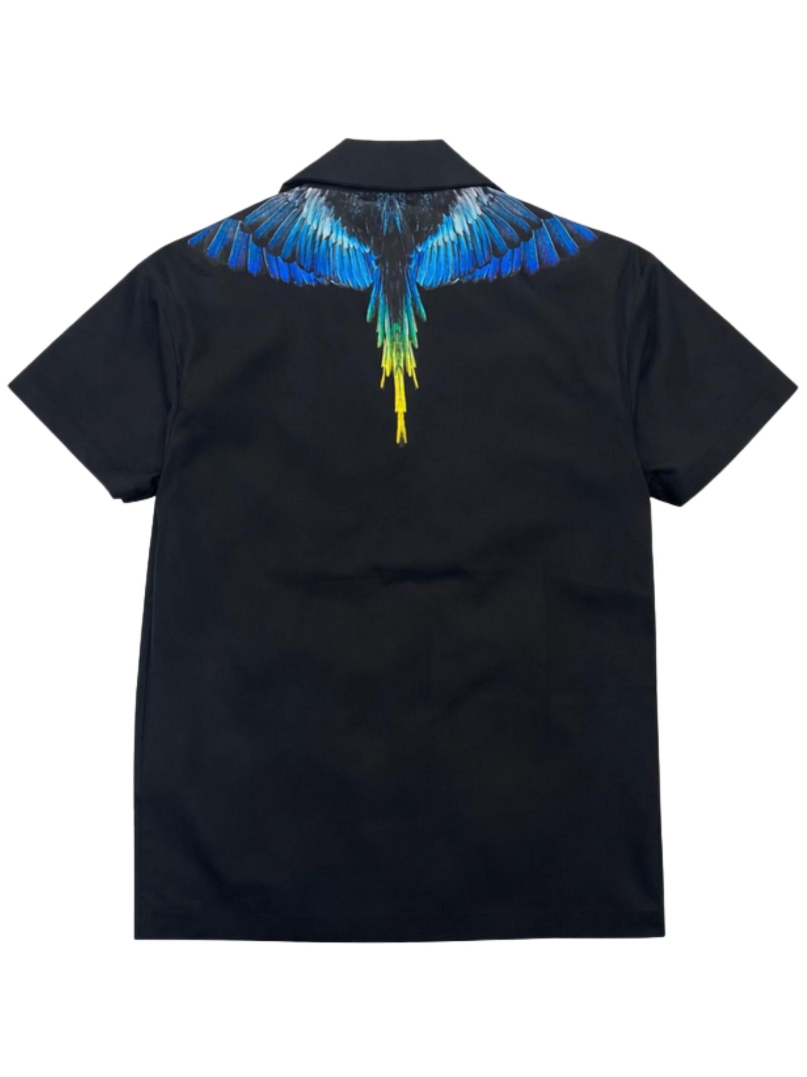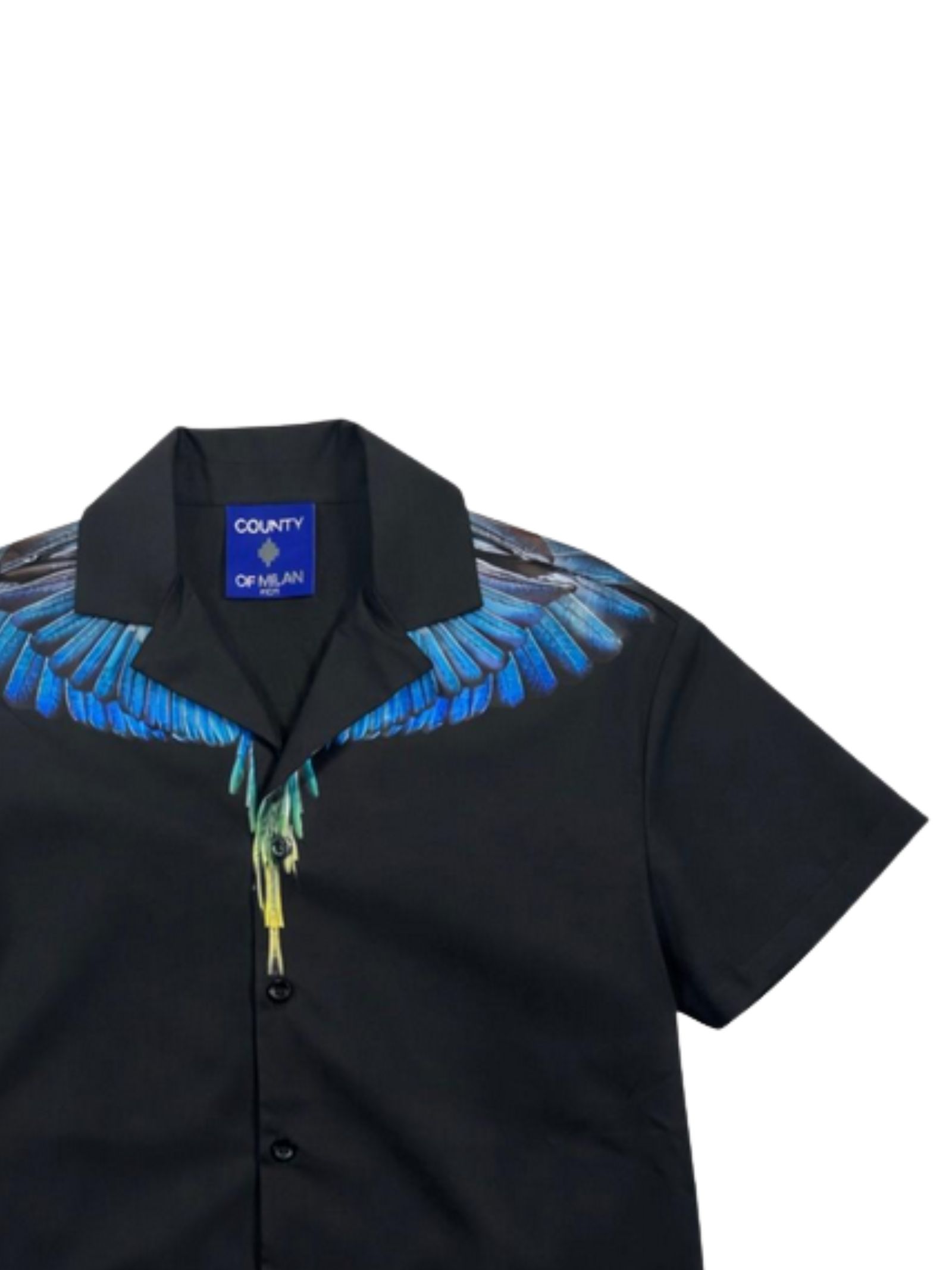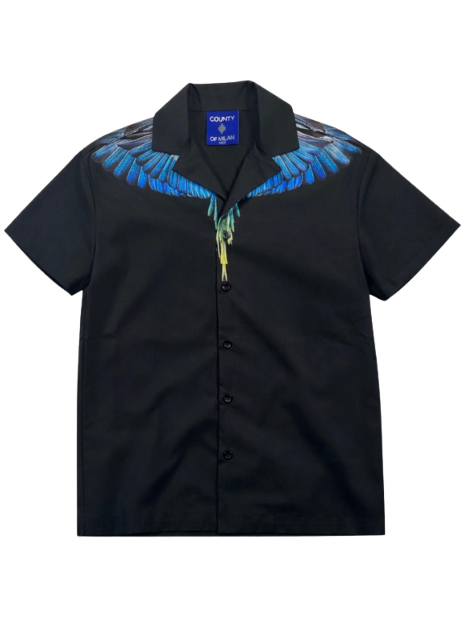 Marcelo Burlon Kids camicia di colore nero, modello mezza manica, stampa a contrasto su entrambi i lati, orlo dritto, vestibilità regolare. Composizione: 100% cotone. Made in Italy