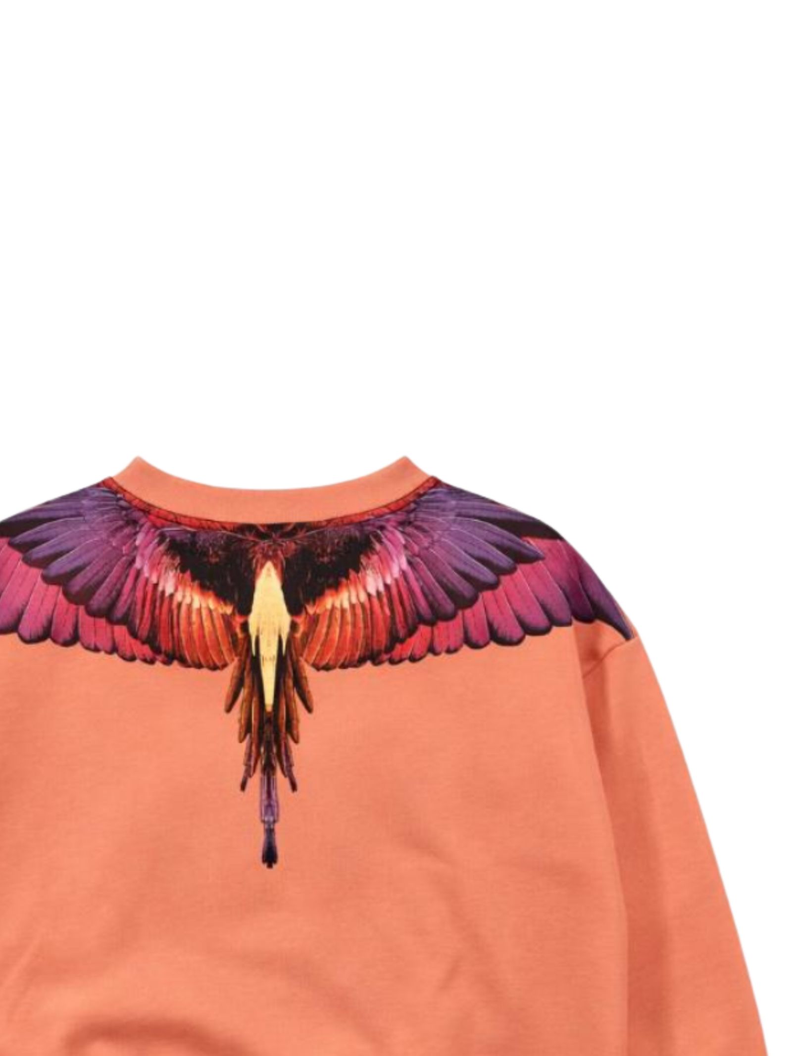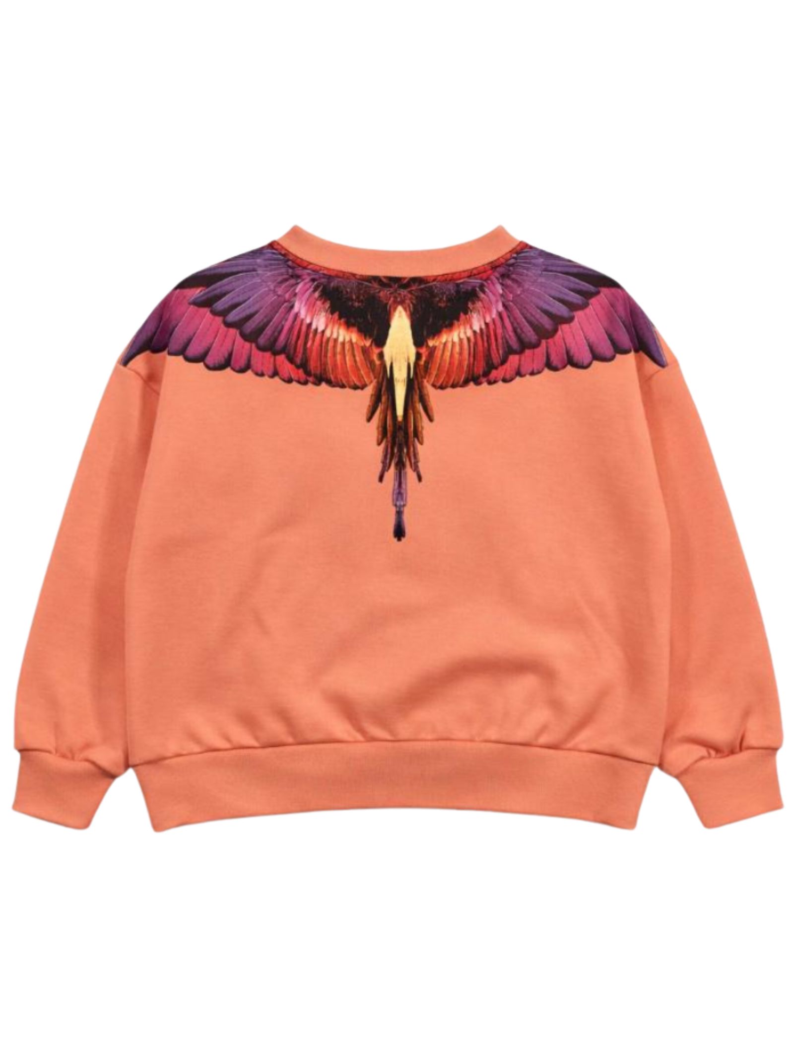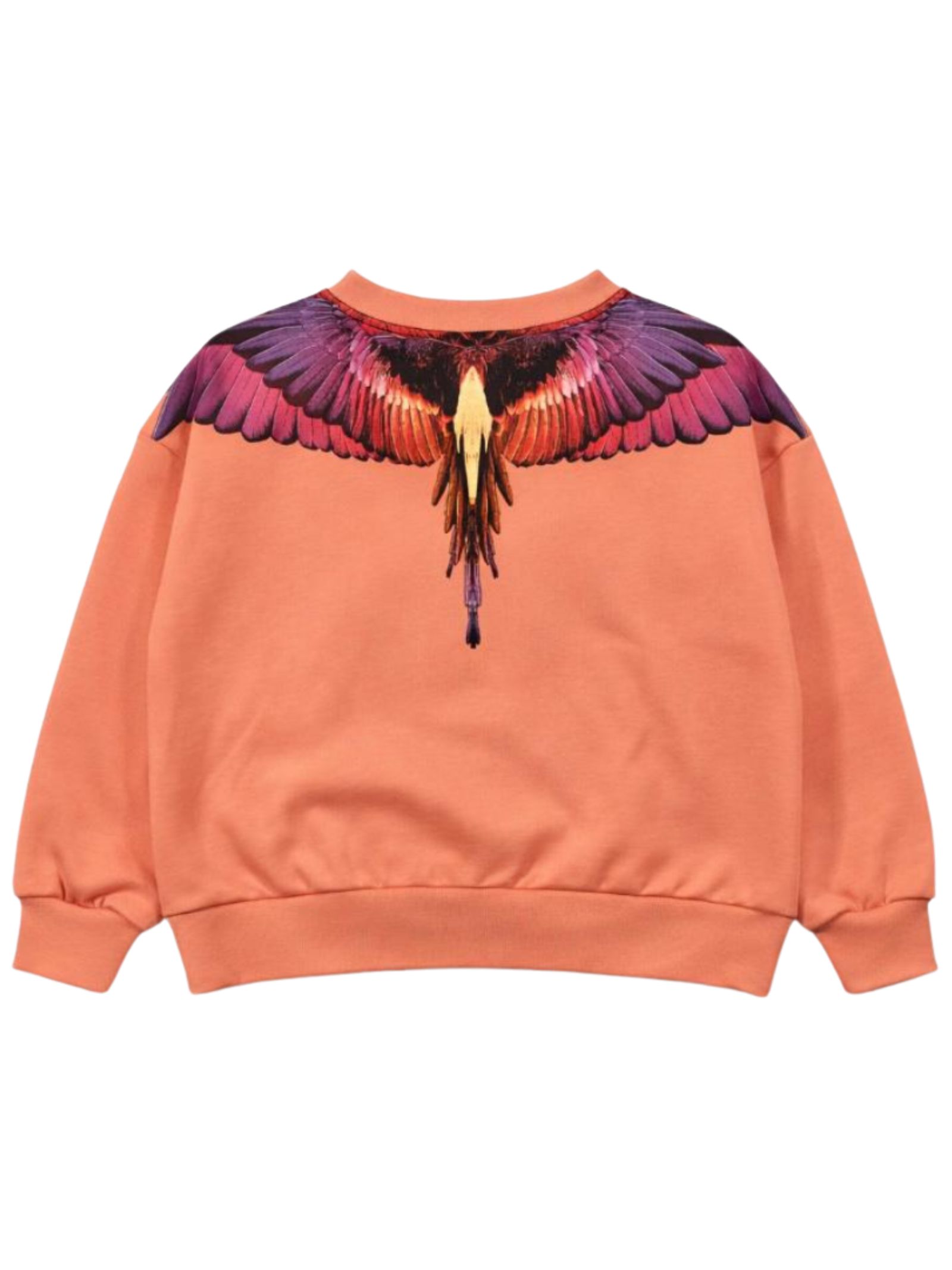 Marcelo Burlon Kids felpa di colore pesca, modello girocollo, maniche lunghe, stampa a contrasto multicolor su entrambi i lati, vestibilità regolare, orli a costine, fondo dritto. Composizione: 100% cotone