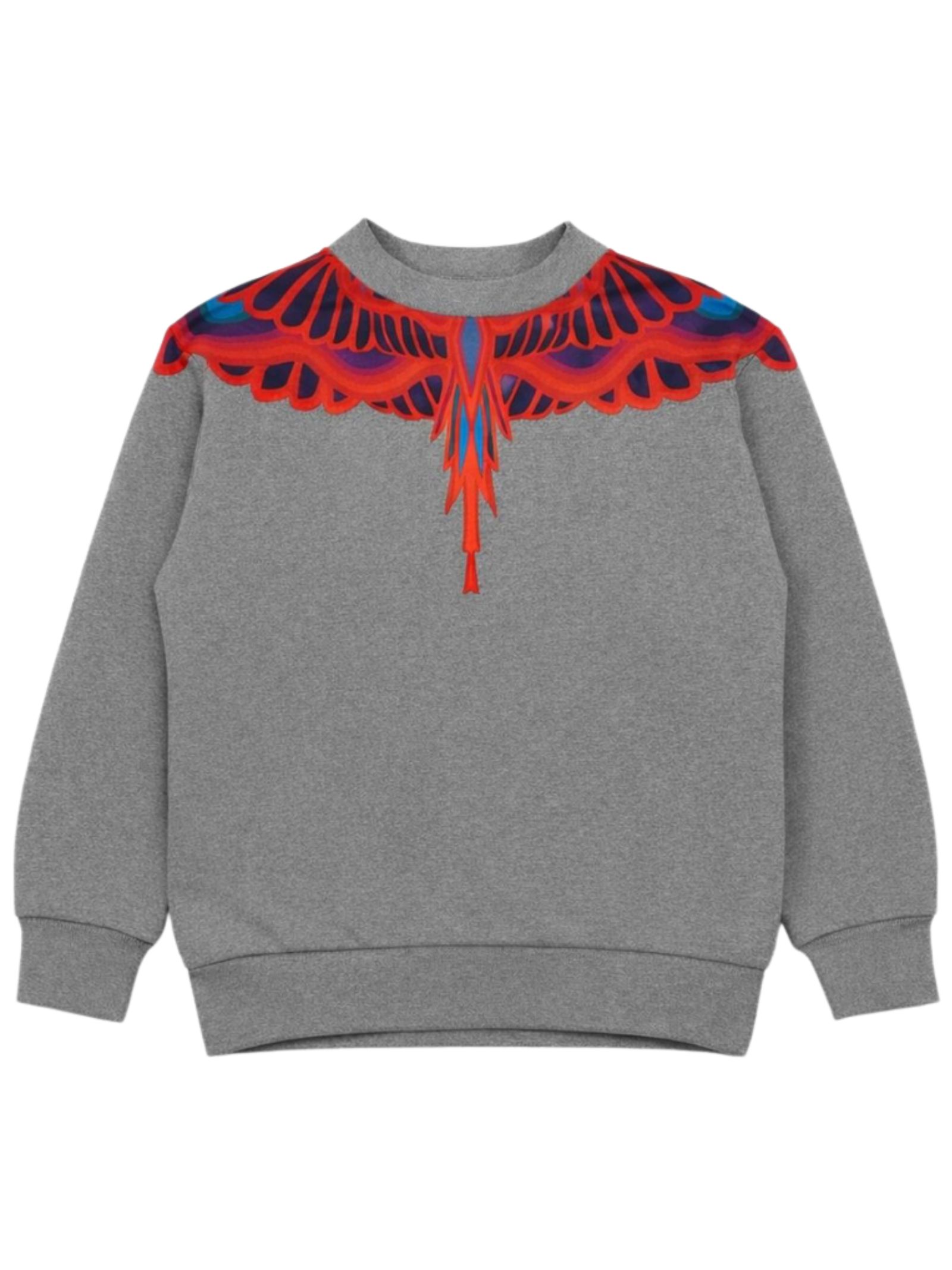 Marcelo Burlon Kids felpa di colore grigio, modello girocollo, maniche lunghe, stampa a contrasto su entrambi i lati, orli a costine, fondo dritto. Composizione: 100% cotone
