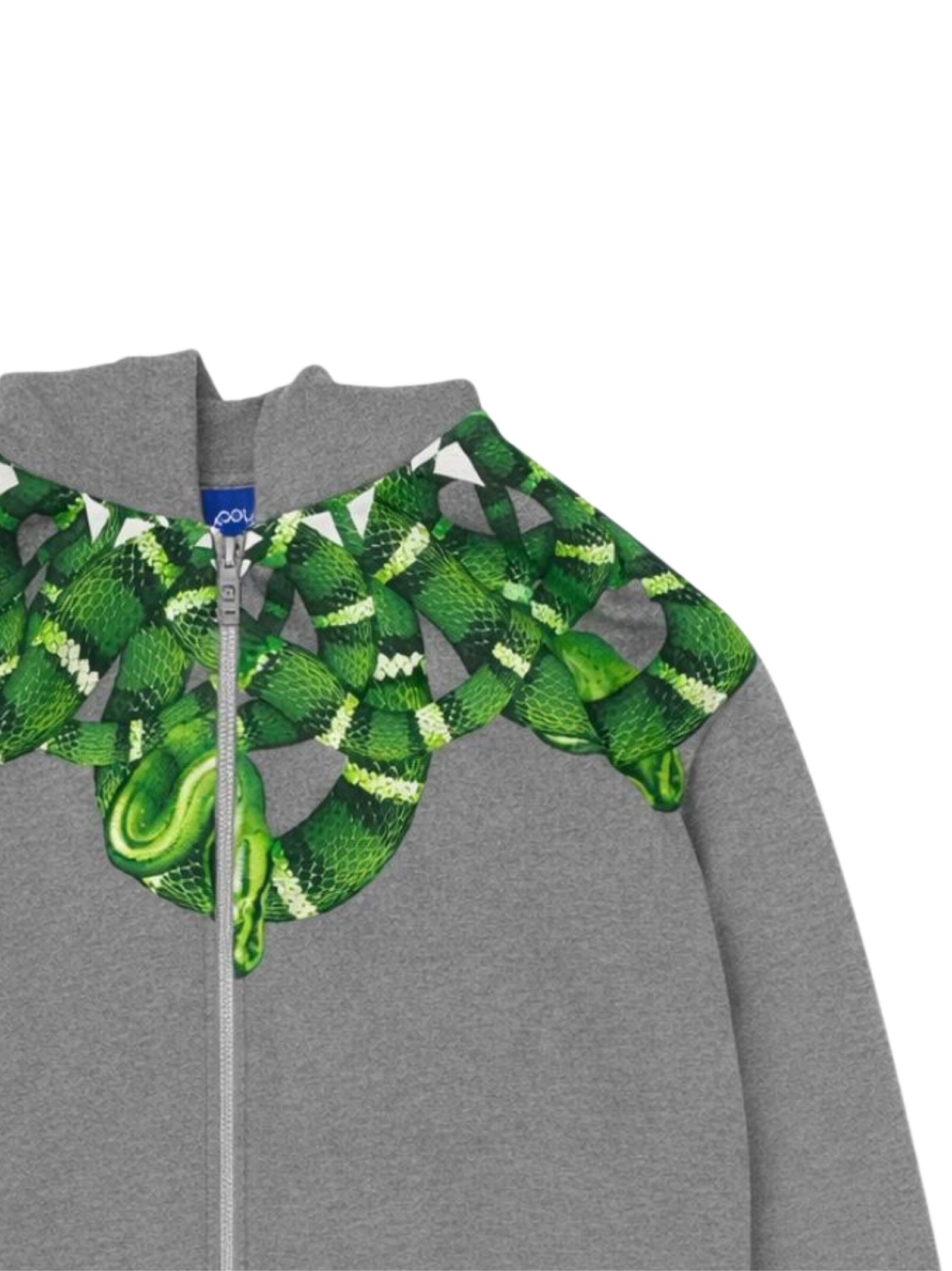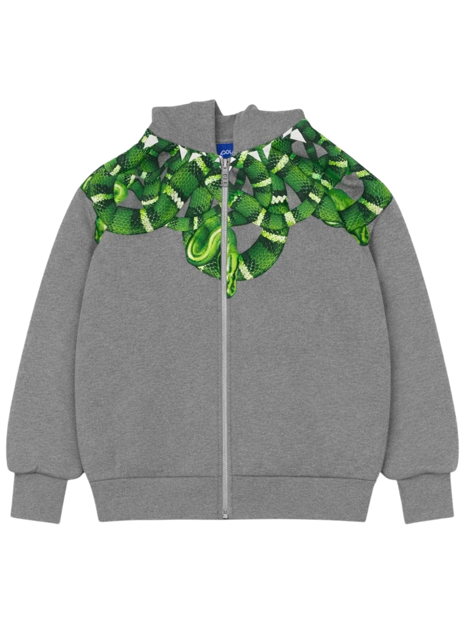 Marcelo Burlon Kids felpa di colore grigio, modello con cappuccio, maniche lunghe, stampa a contrasto, vestibilità regolare, orli a costine, fondo dritto. Composizione: 100% cotone