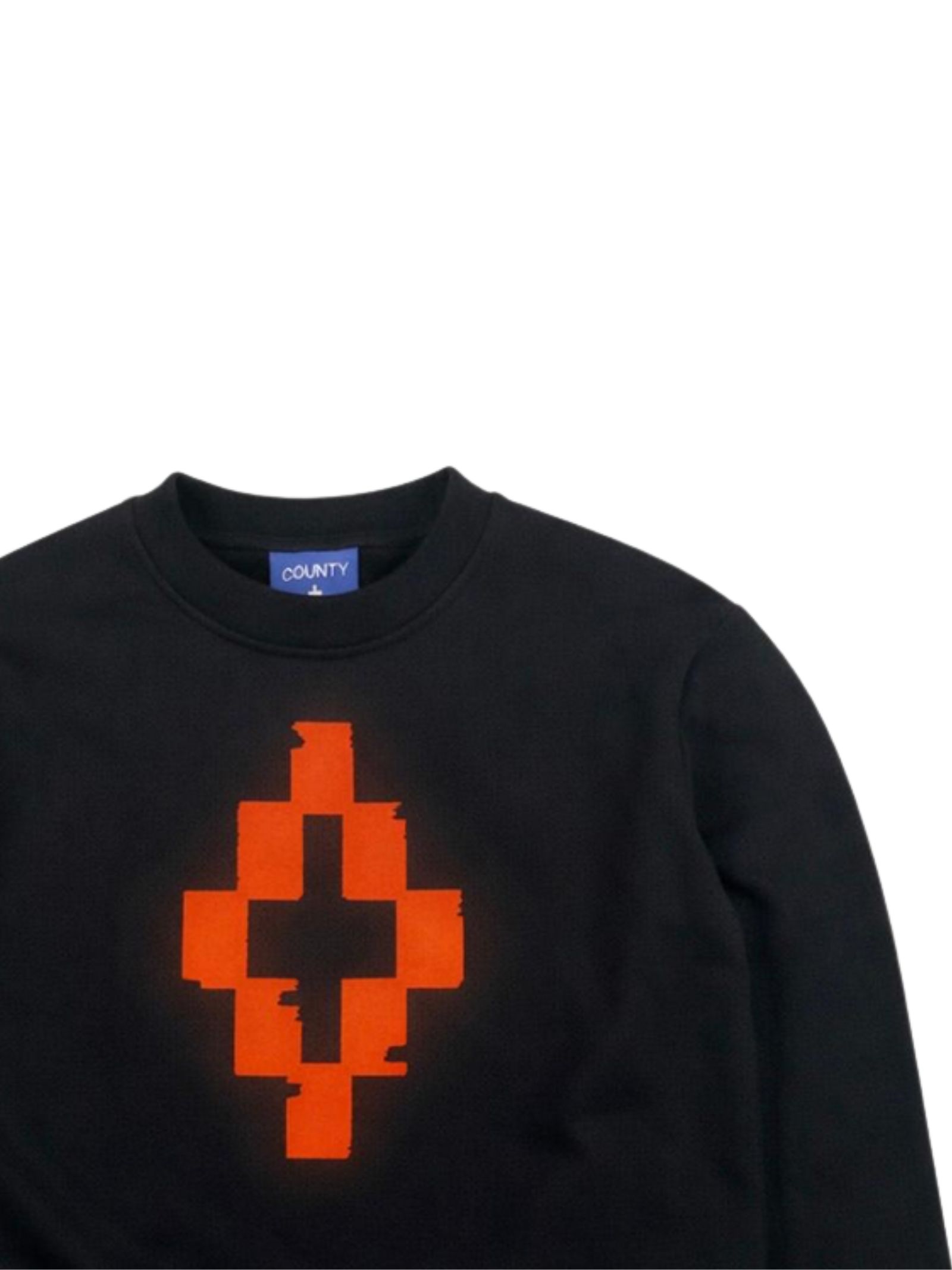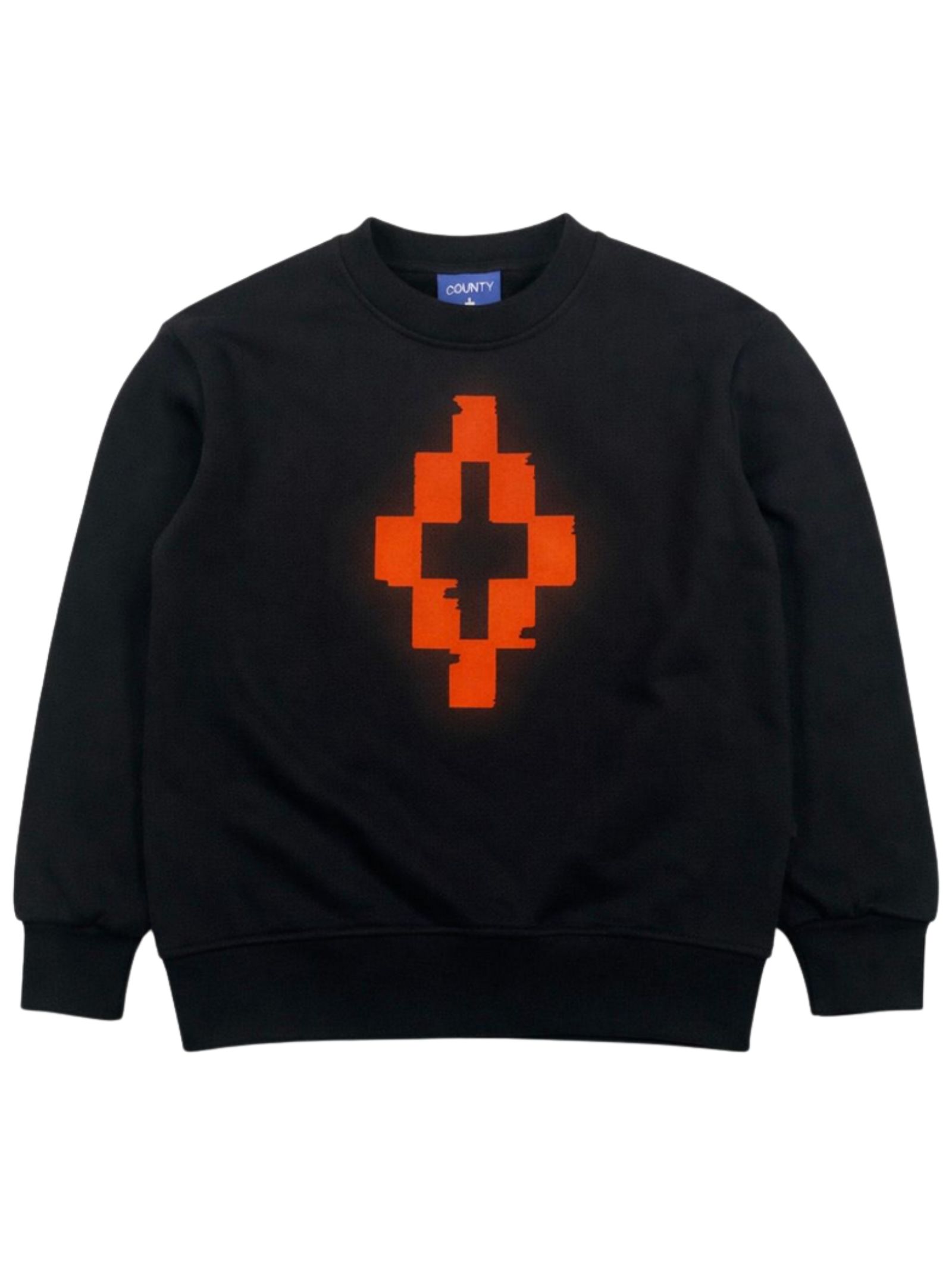 Marcelo Burlon Kids felpa di colore nero, modello girocollo, maniche lunghe, stampa a contrasto, orli a costine, fondo dritto. Composizione: 100% cotone. Made in Italy