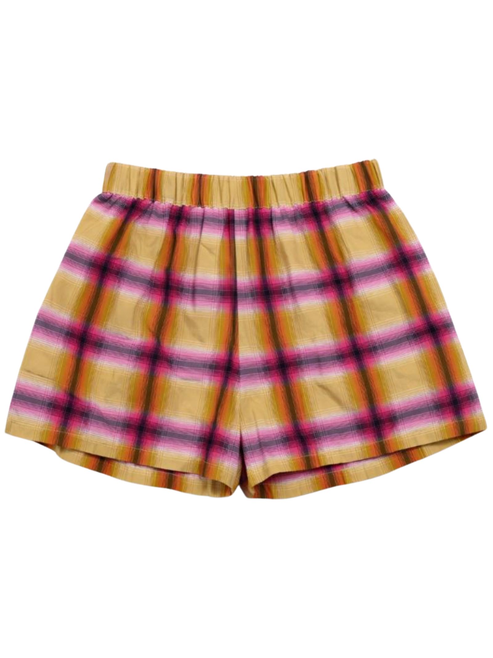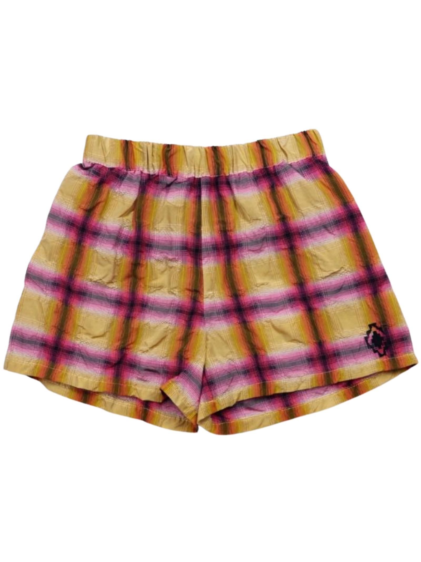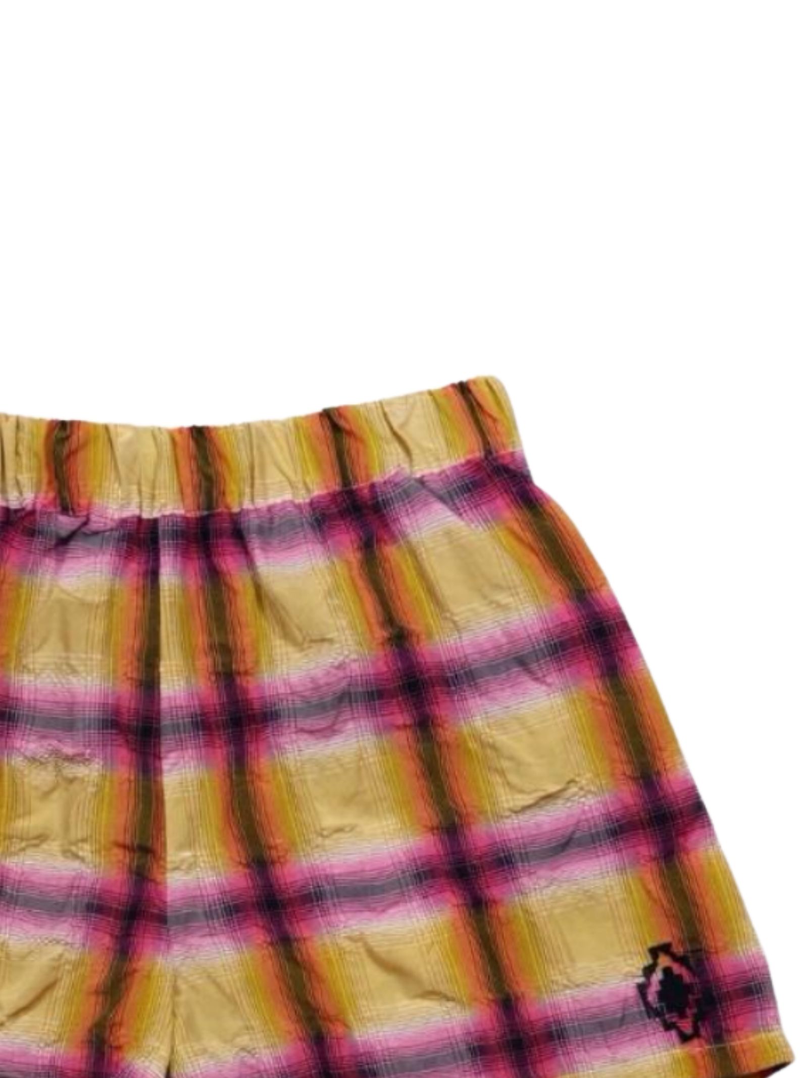 Marcelo Burlon Kids shorts in fantasia a quadri multicolor, tessuto effetto stropicciato, modello con elastico in vita, stampa logo a contrasto, vestibilità regolare. Composizione: 56% cotone 37% poliestere 7% nylon. Made in Italy