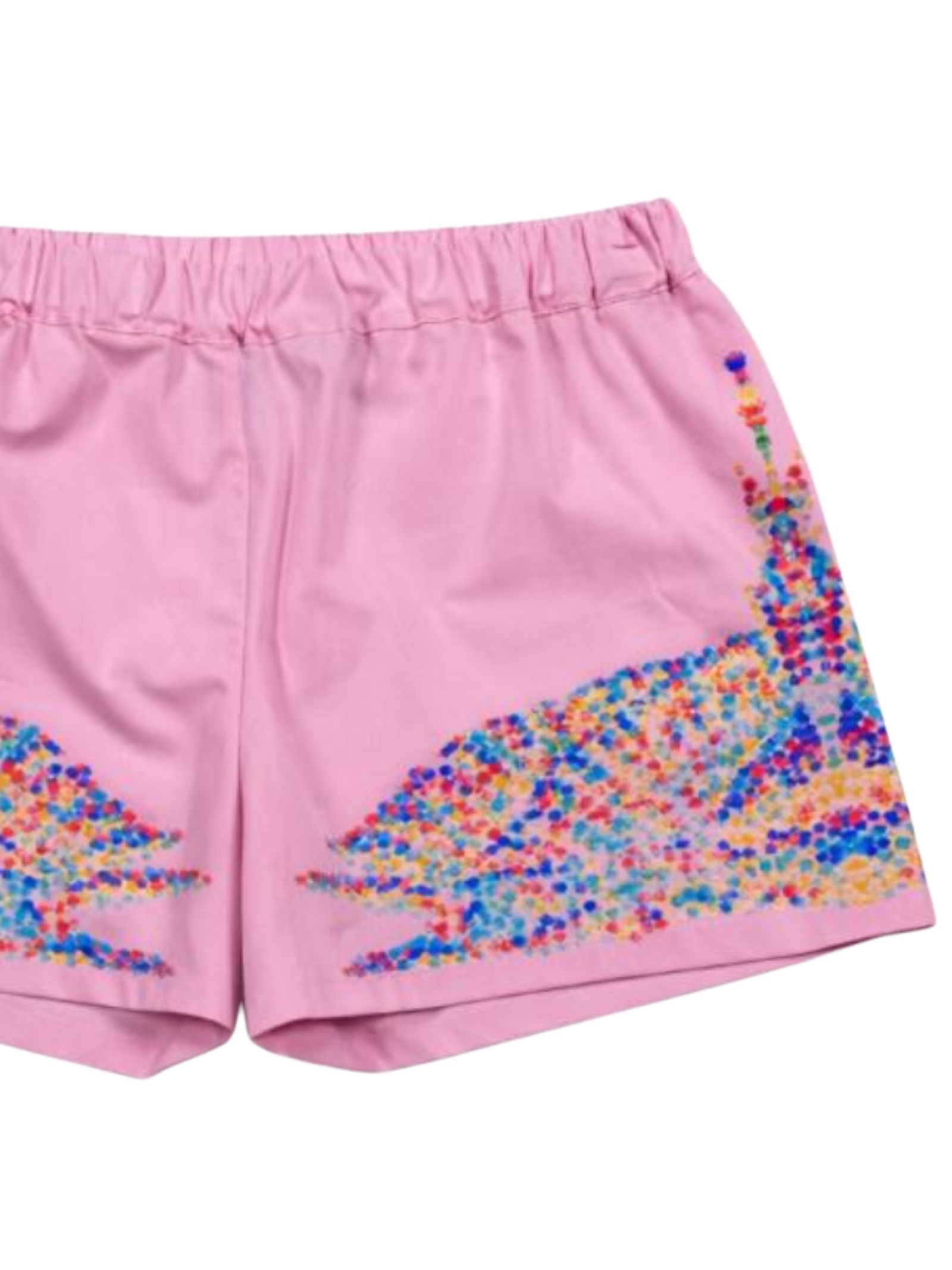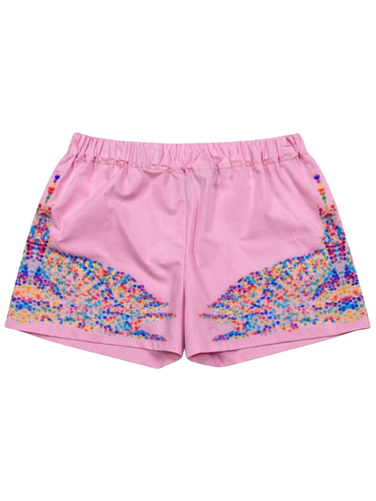 Marcelo Burlon Kids shorts di colore rosa, modello con elastico in vita, stampa a contrasto multicolor, vestibilità regolare. Composizione: 100% cotone Made in Italy