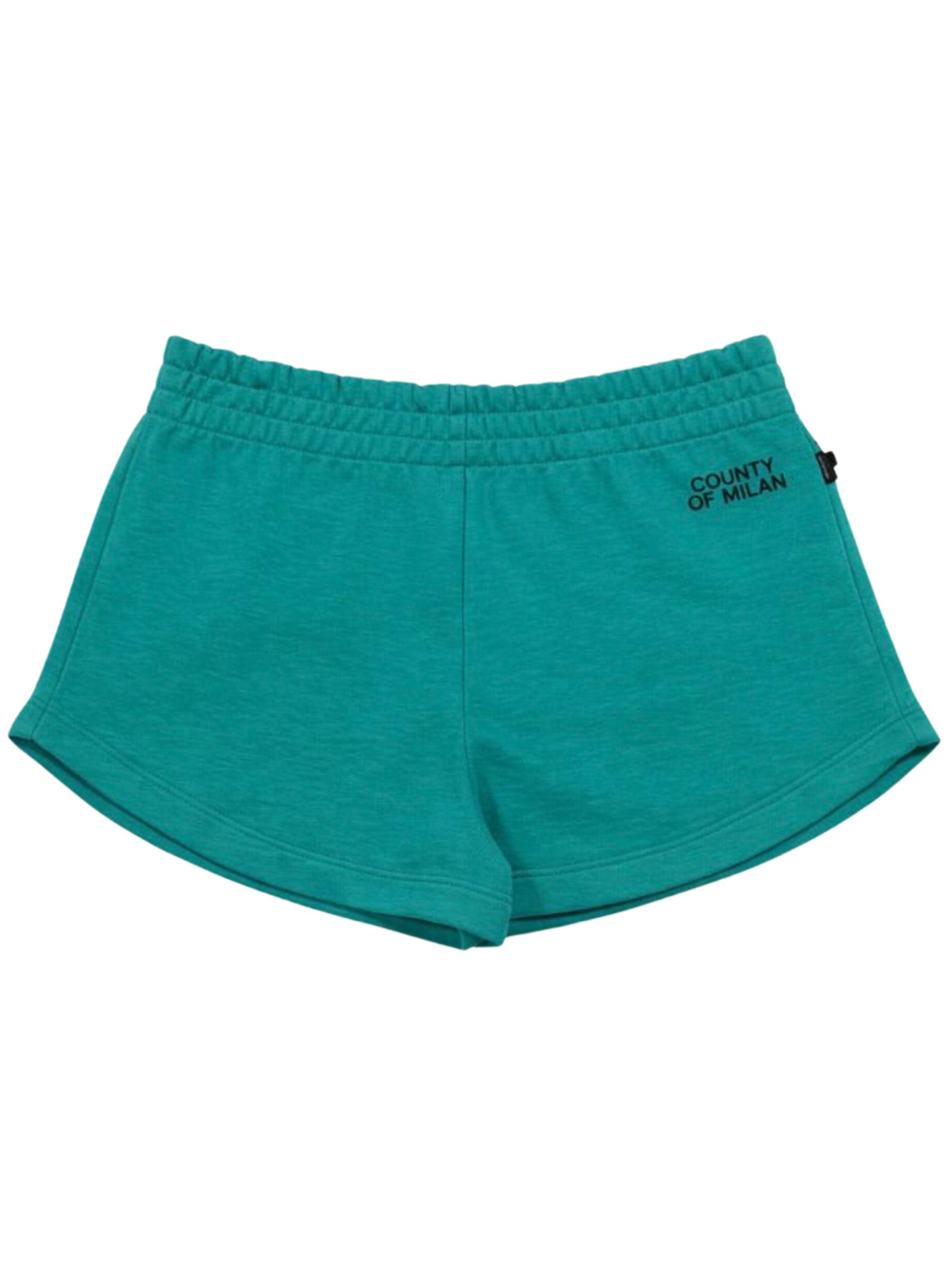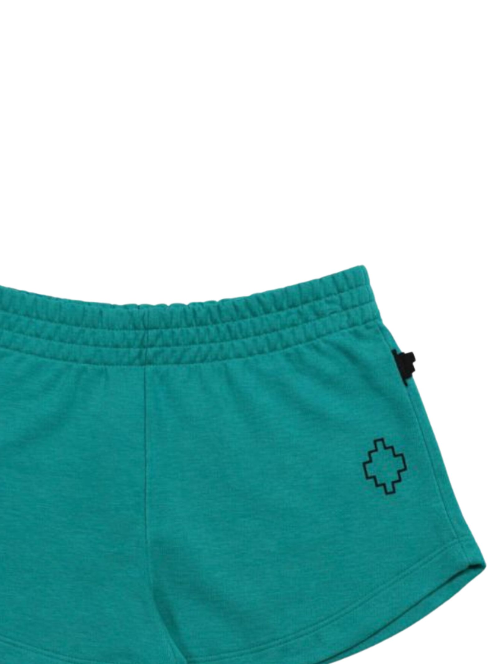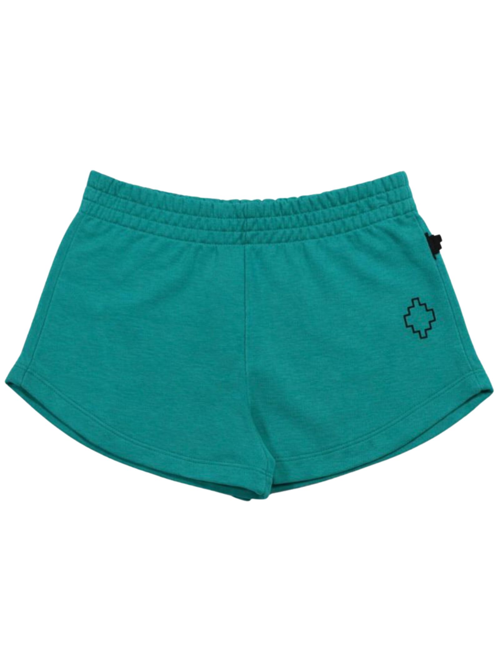 Marcelo Burlon Kids shorts di colore verde acqua, modello con elastico in vita, stampa logo a contrasto nero con glitter, vestibilità regolare. Composizione: 100% cotone Made in Italy