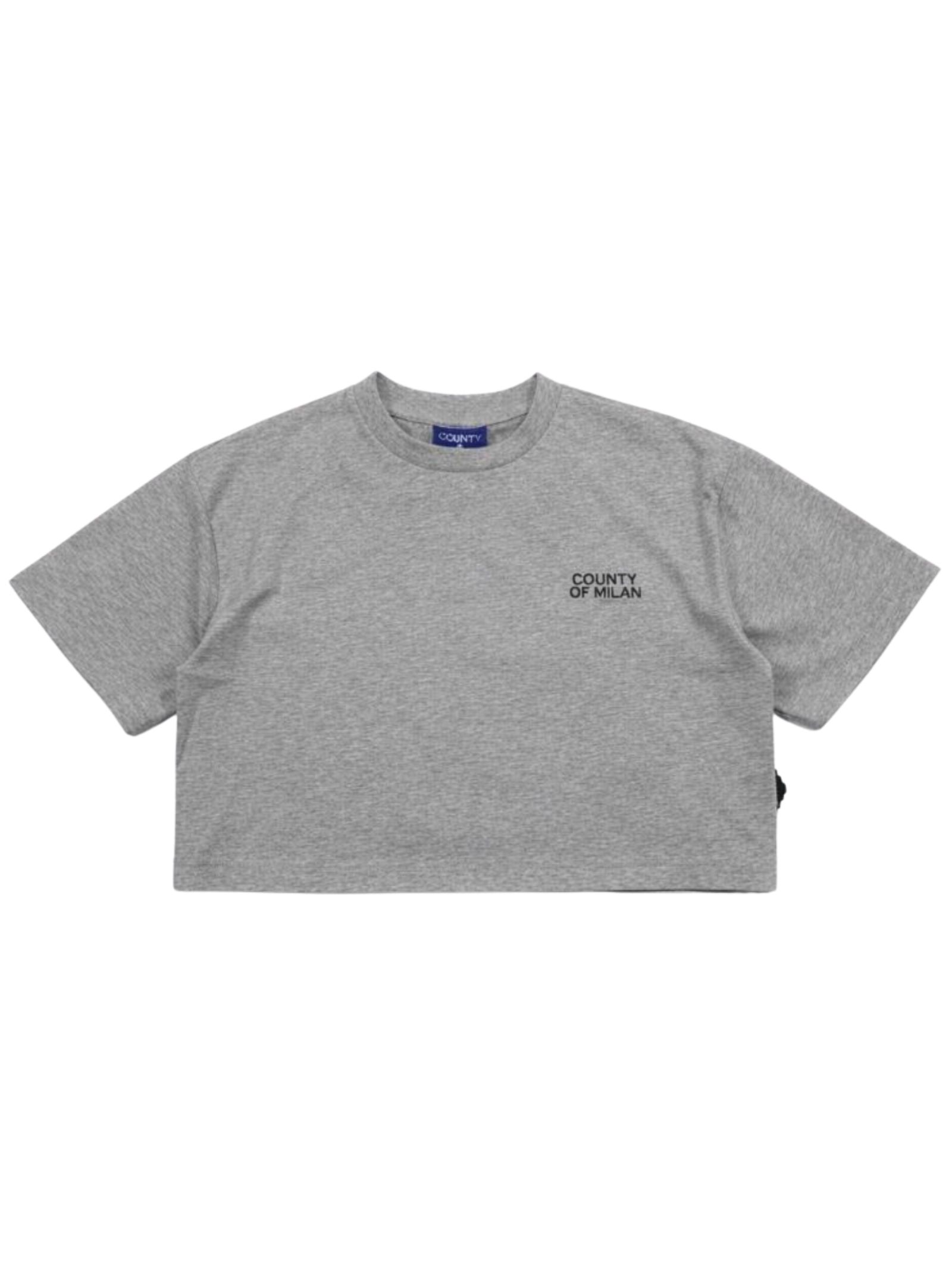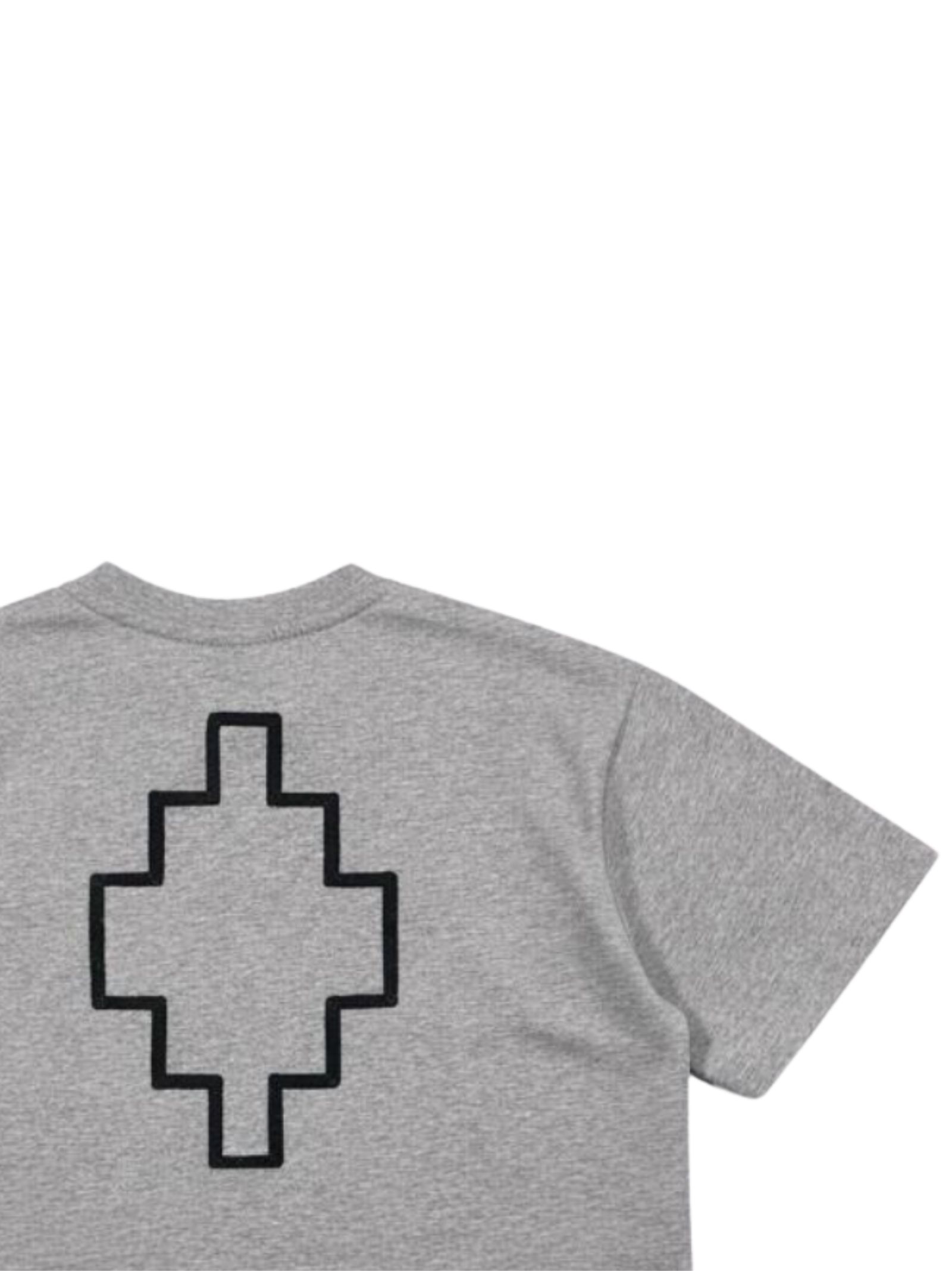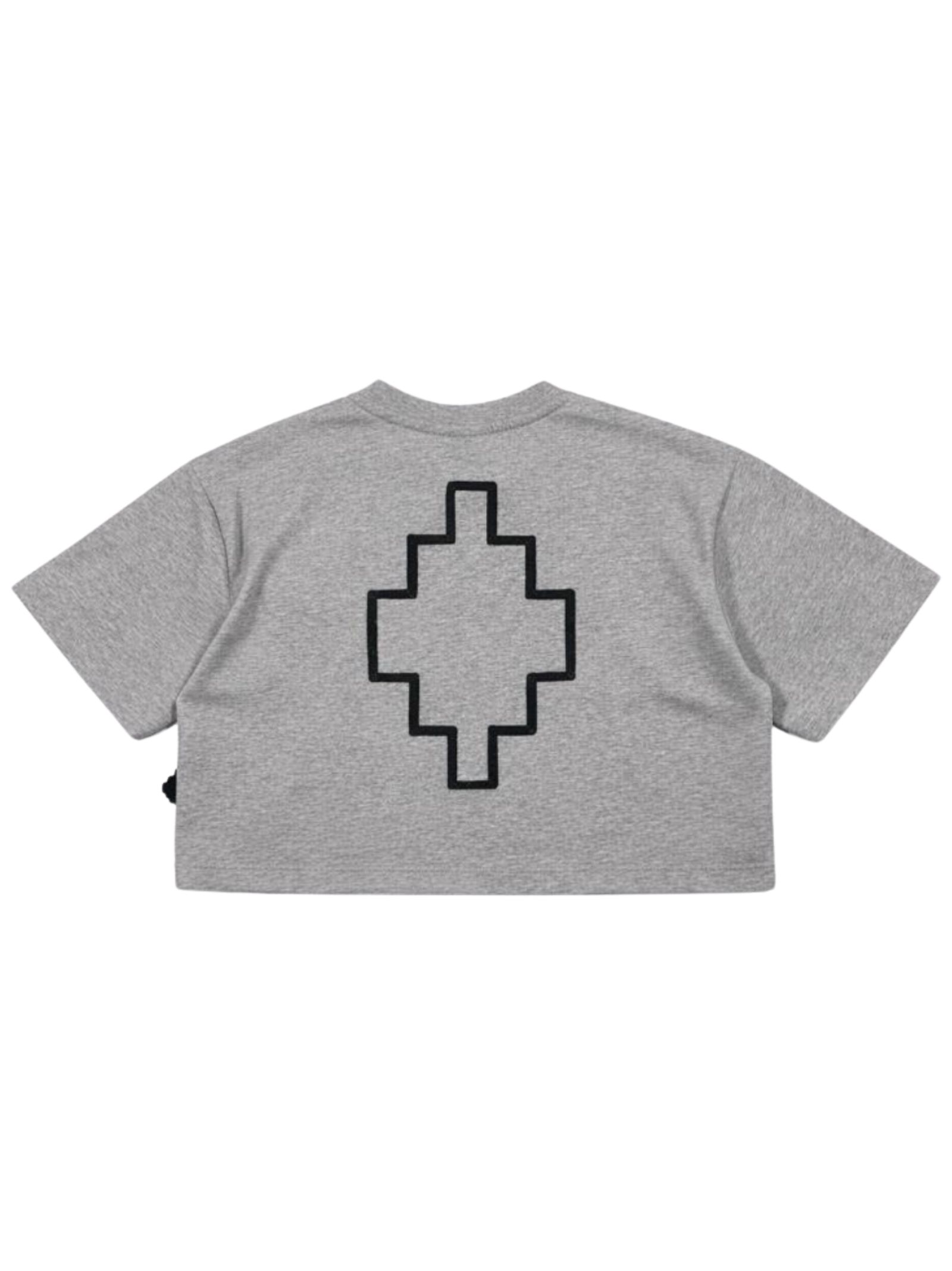 Marcelo Burlon Kids t-shirt di colore grigio, modello cropped, girocollo, mezza manica, stampa a contrasto nero con glitter su entrambi i lati, orlo dritto, vestibilità ampia. Composizione: 100% cotone. Made in Italy