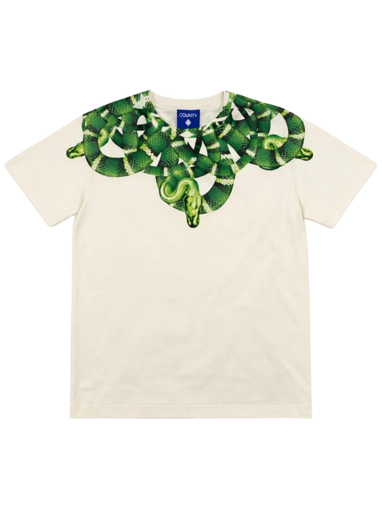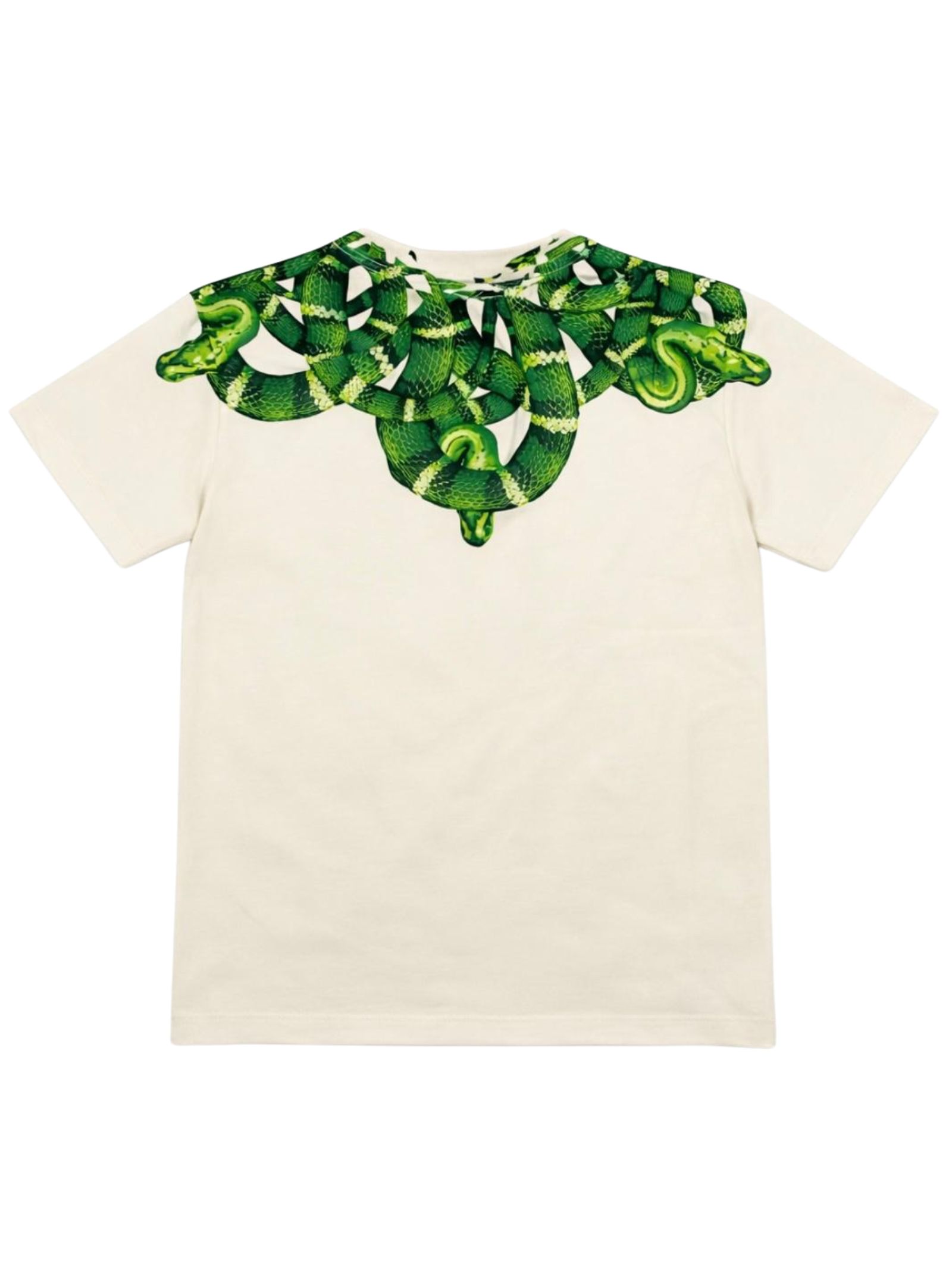 Marcelo Burlon Kids t-shirt di colore bianco, modello girocollo, mezza manica, stampa a contrasto verde, orlo dritto, vestibilità regolare. Composizione: 100% cotone