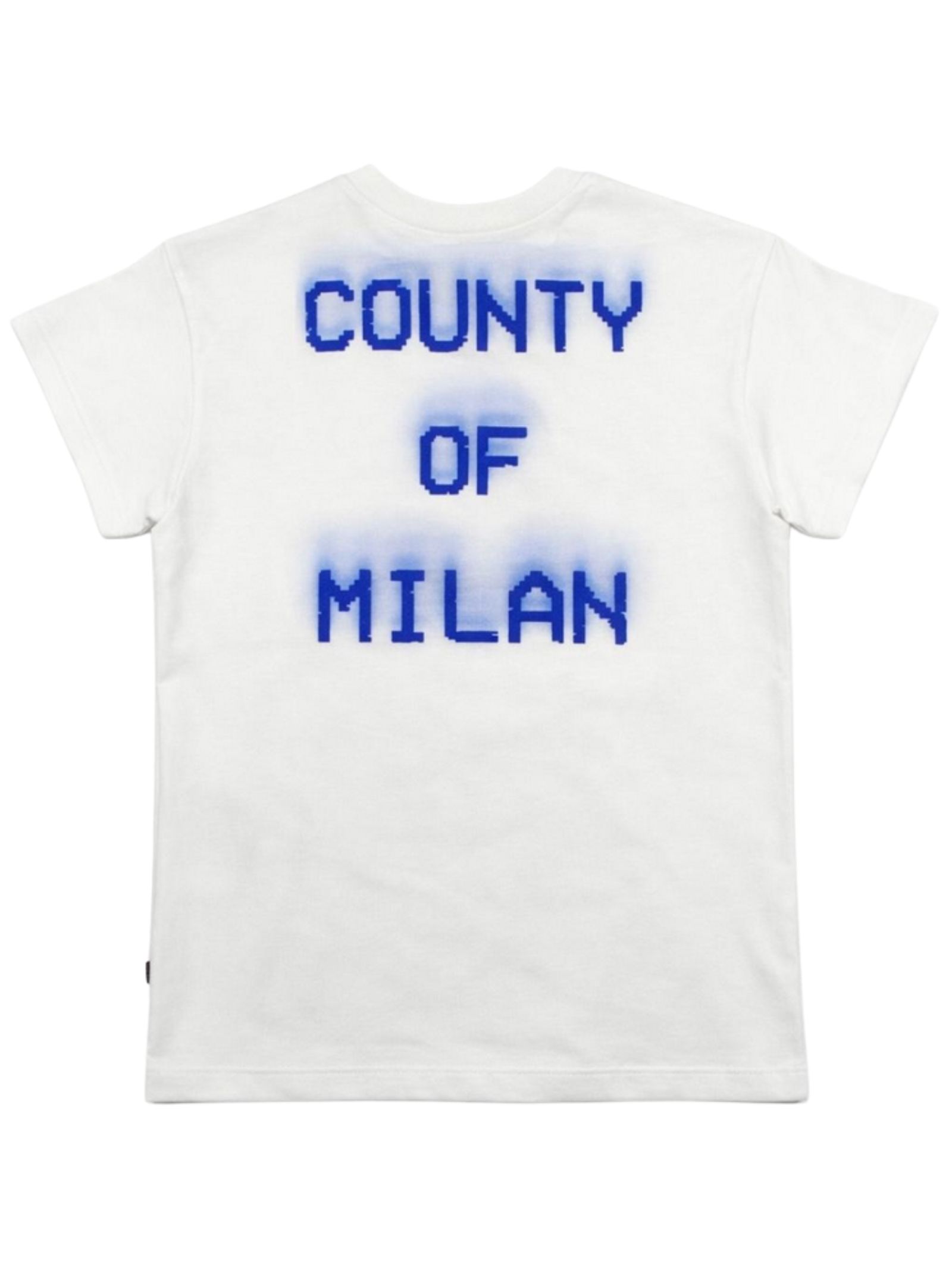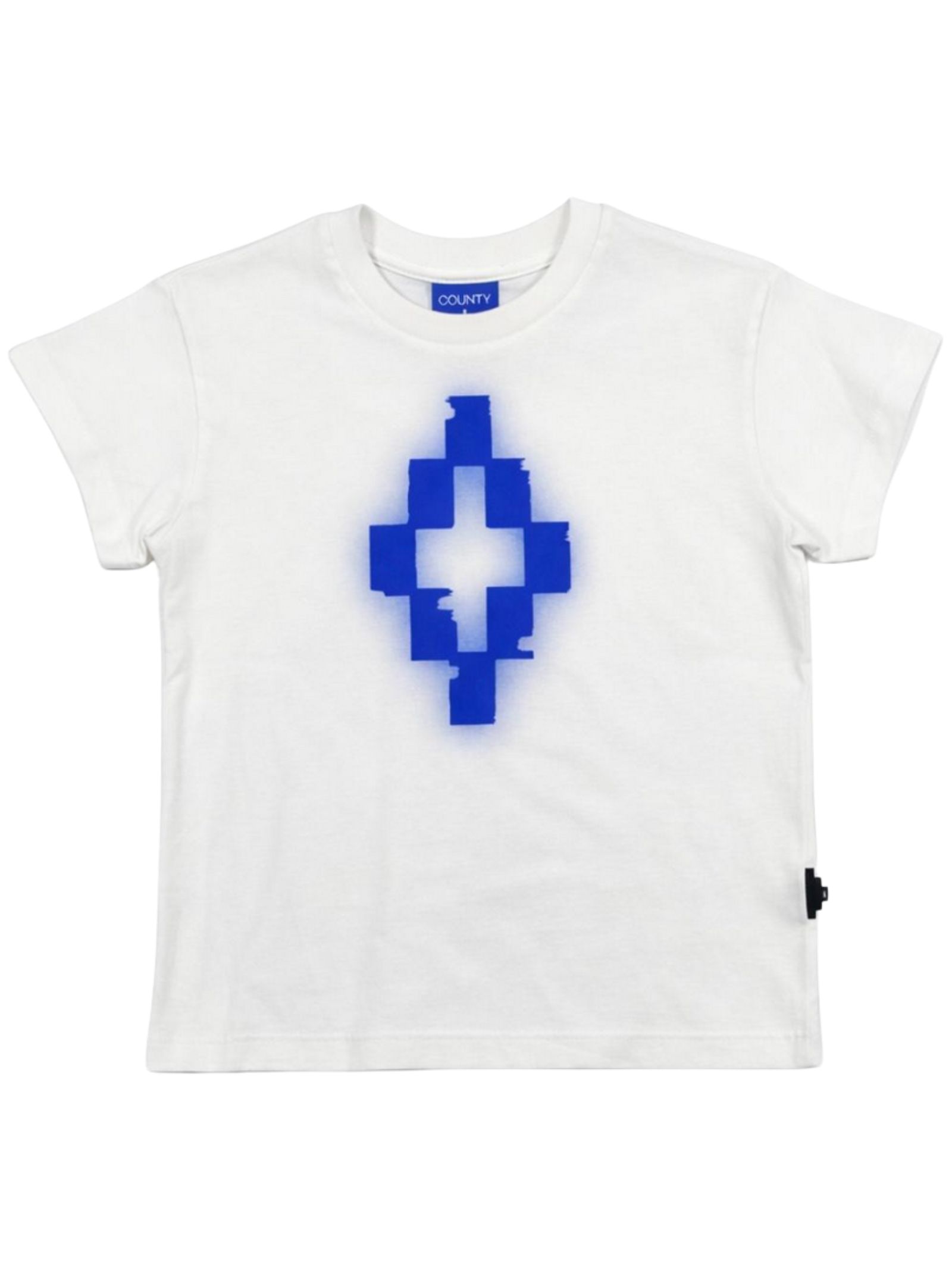 Marcelo Burlon Kids t-shirt di colore bianco, modello girocollo, mezza manica, stampa a contrasto blu, orlo dritto, vestibilità regolare. Composizione: 100% cotone. Made in Italy