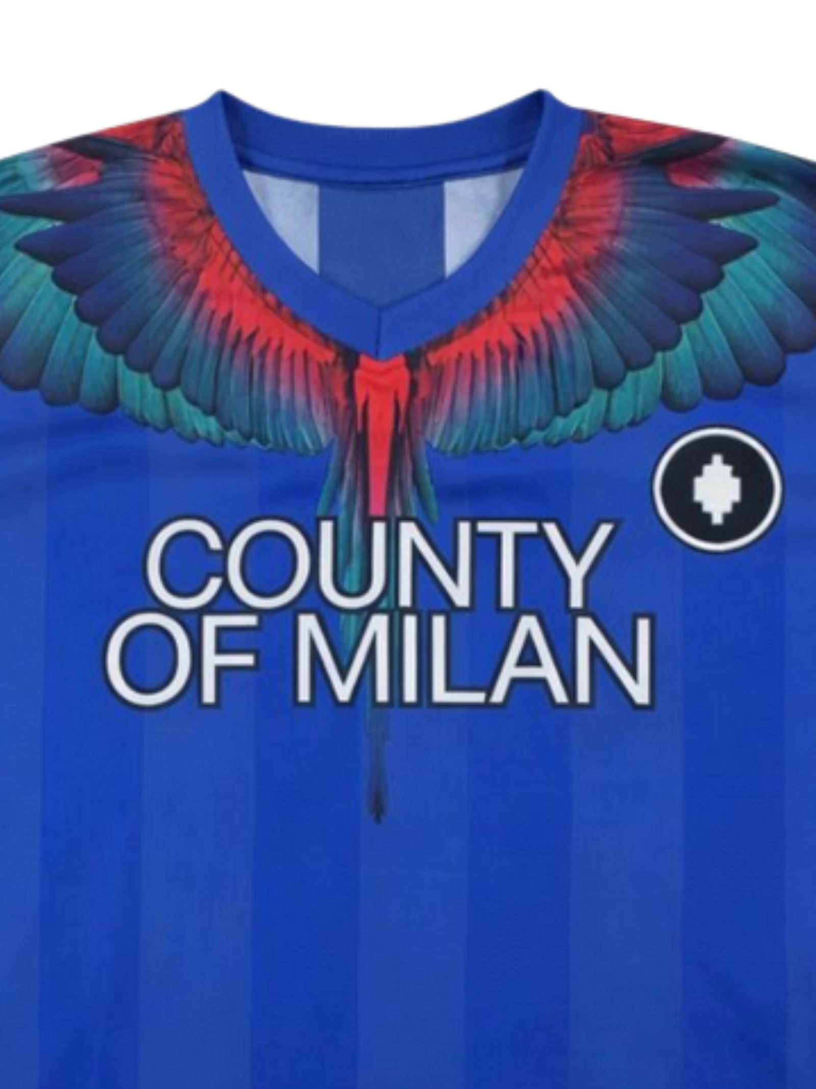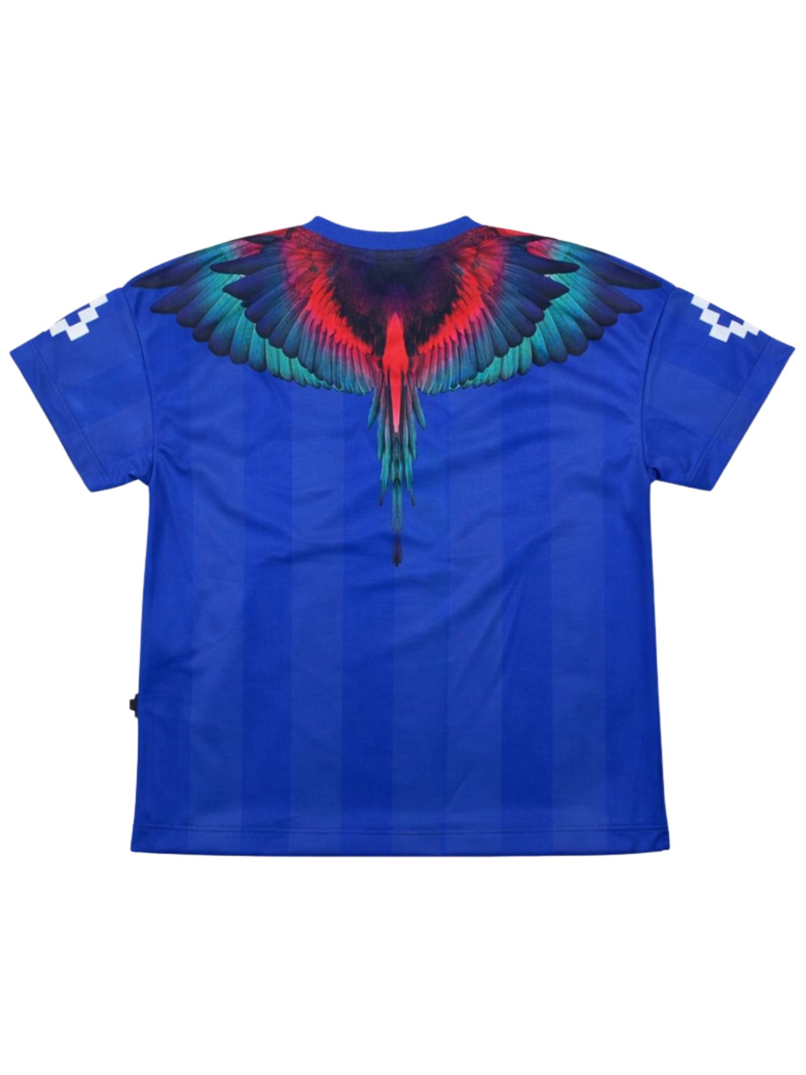 Marcelo Burlon Kids t-shirt di colore blu, modello con scollo a V, mezza manica, stampa a contrasto, orlo dritto, vestibilità regolare. Composizione: 100% poliestere. Made in Italy