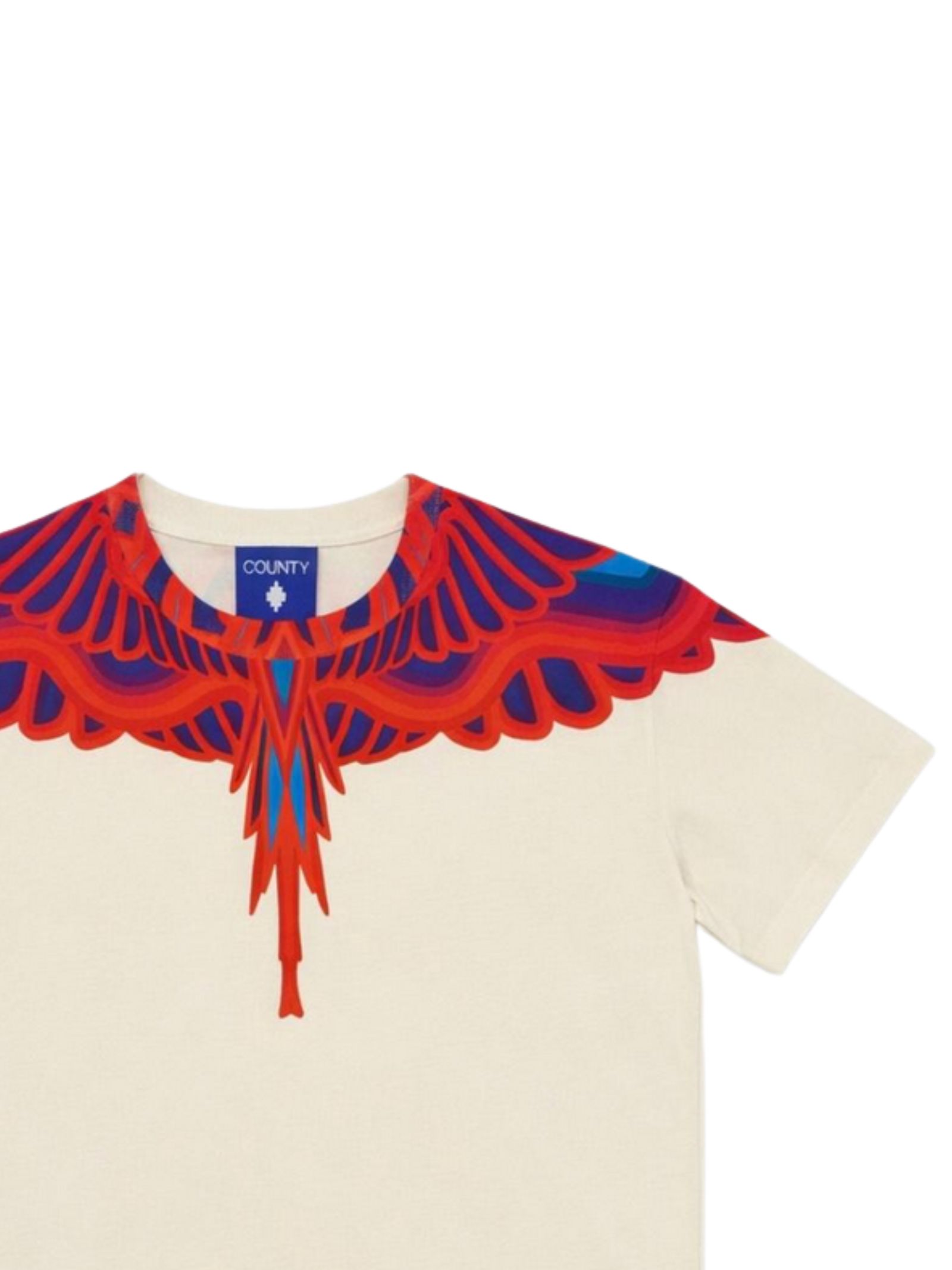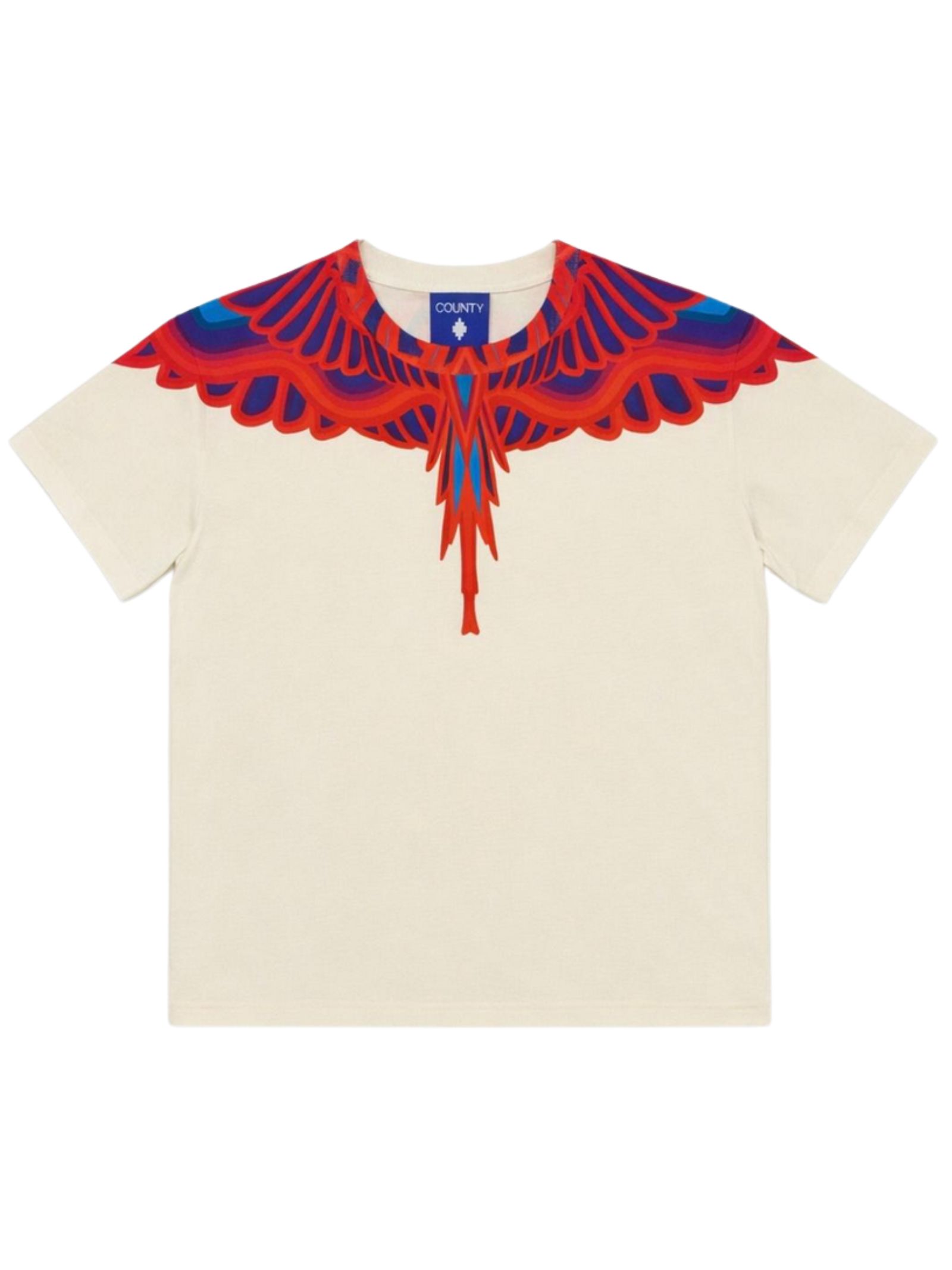 Marcelo Burlon Kids t-shirt di colore panna, modello girocollo, mezza manica, stampa a contrasto su entrambi i lati, orlo dritto, vestibilità regolare. Composizione: 100% cotone