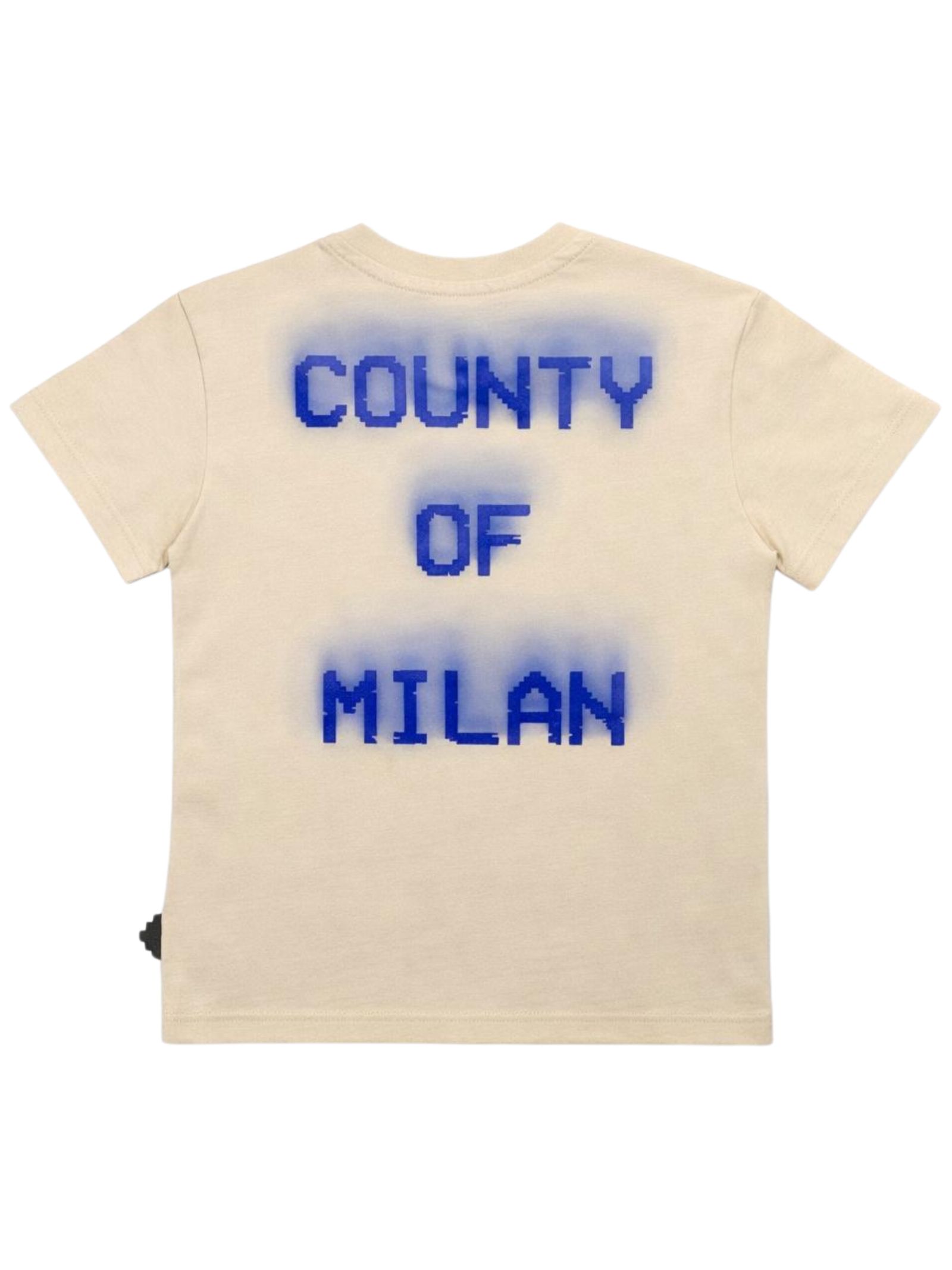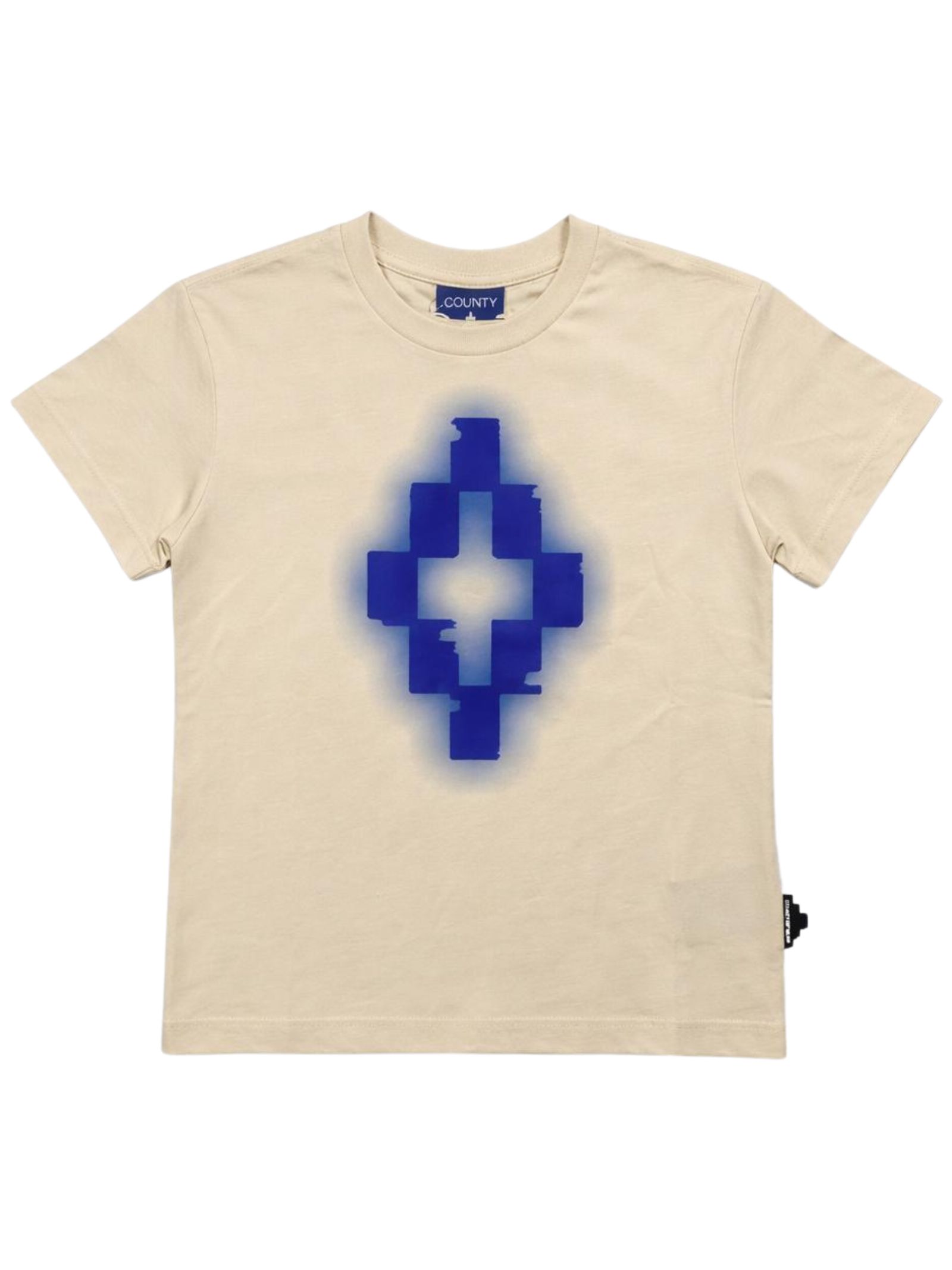 Marcelo Burlon Kids t-shirt di colore panna, modello girocollo, mezza manica, stampa a contrasto blu, orlo dritto, vestibilità regolare. Composizione: 100% cotone. Made in Italy
