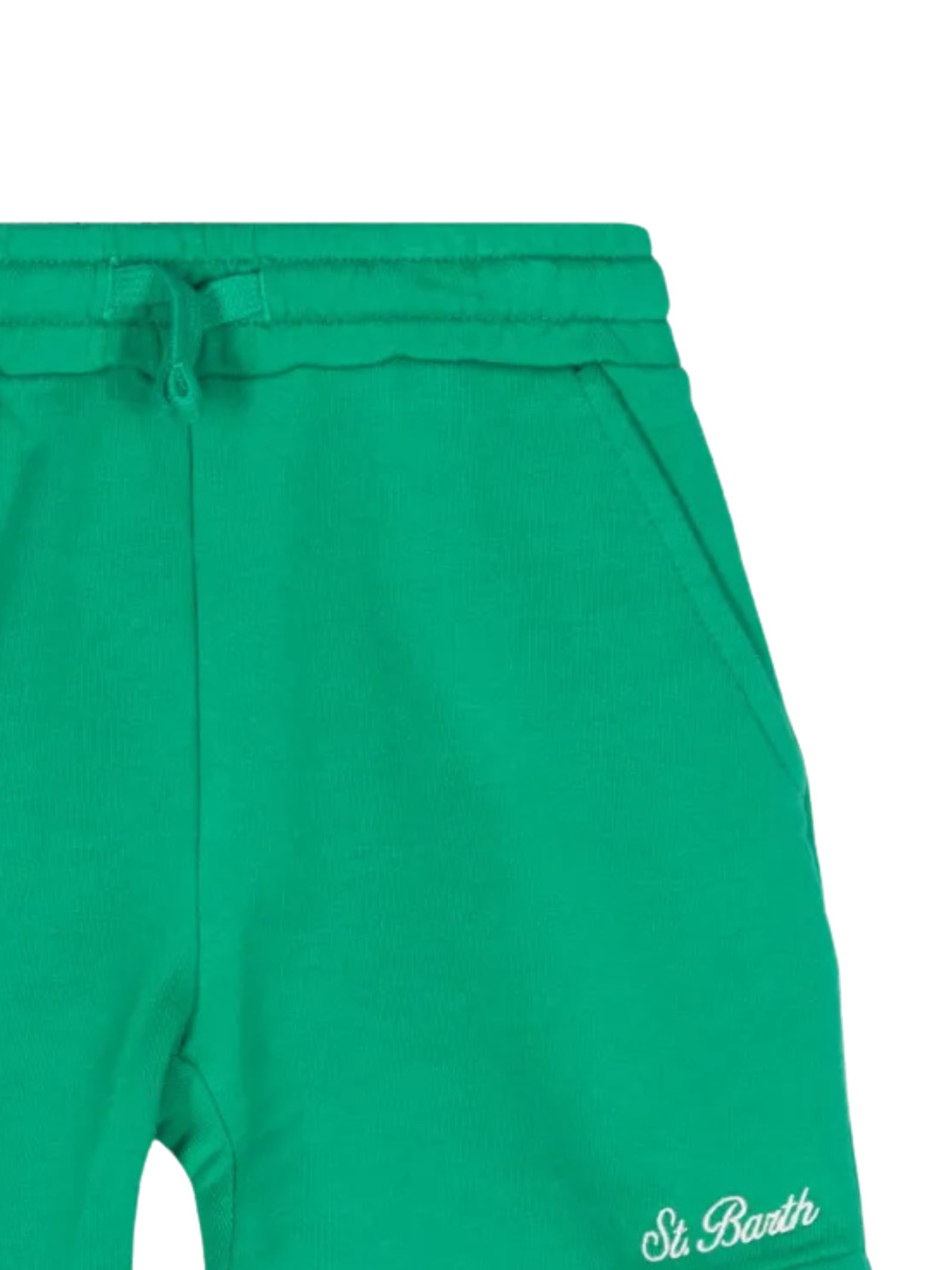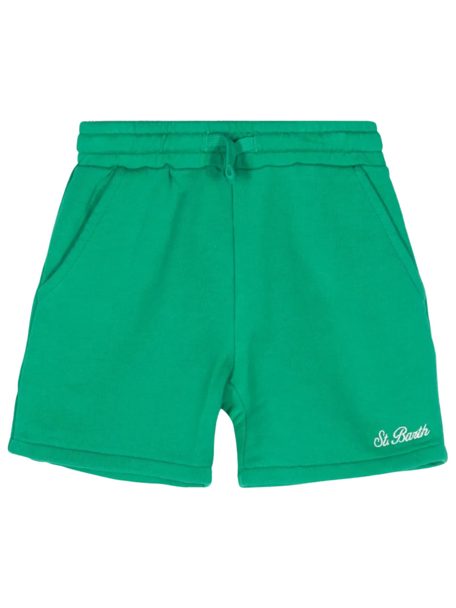 MC2 Saint Barth Kids bermuda di colore verde, modello con elastico in vita con coulisse, due tasche laterali, una tasca a fessura sul retro, patch con logo posteriore, vestibilità regolare. Composizione: 100% cotone