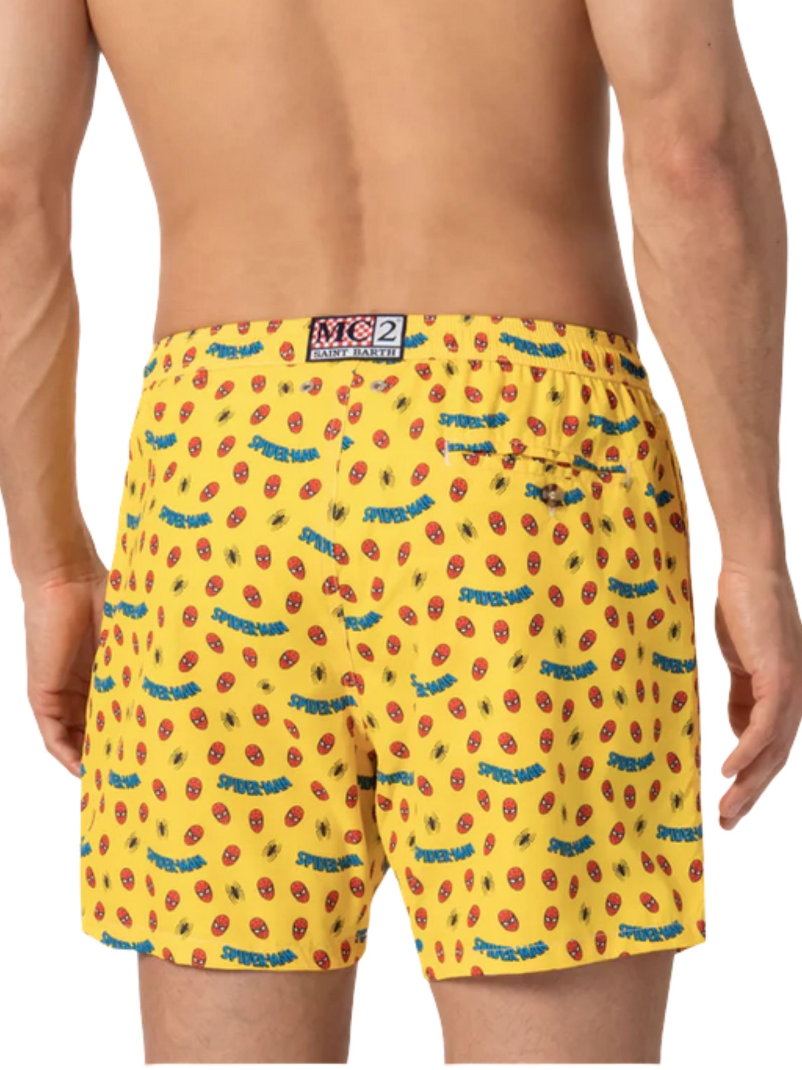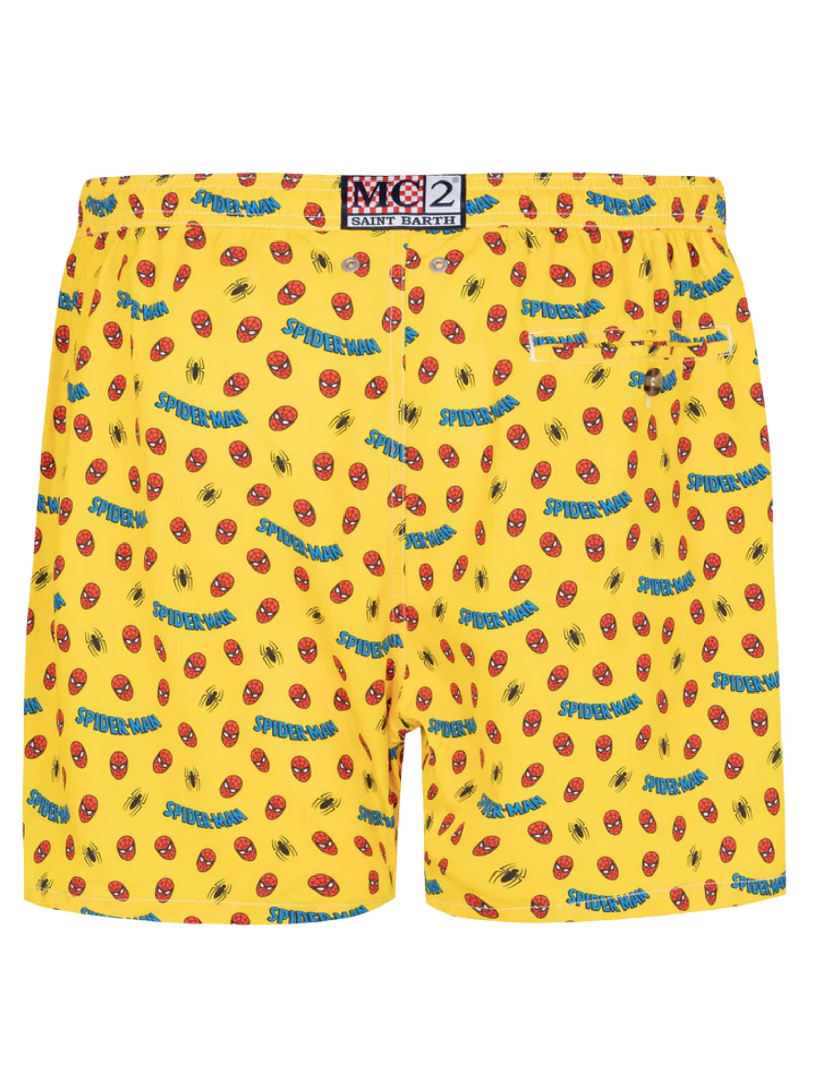 MC2 Saint Barth Kids costume da bagno Jean Lighting Spider Sticker di colore giallo in fantasia a contrasto, vita con coulisse elasticizzata, logo sul retro, due tasche laterali a filetto e tasca posteriore applicata. Composizione: 100% poliestere