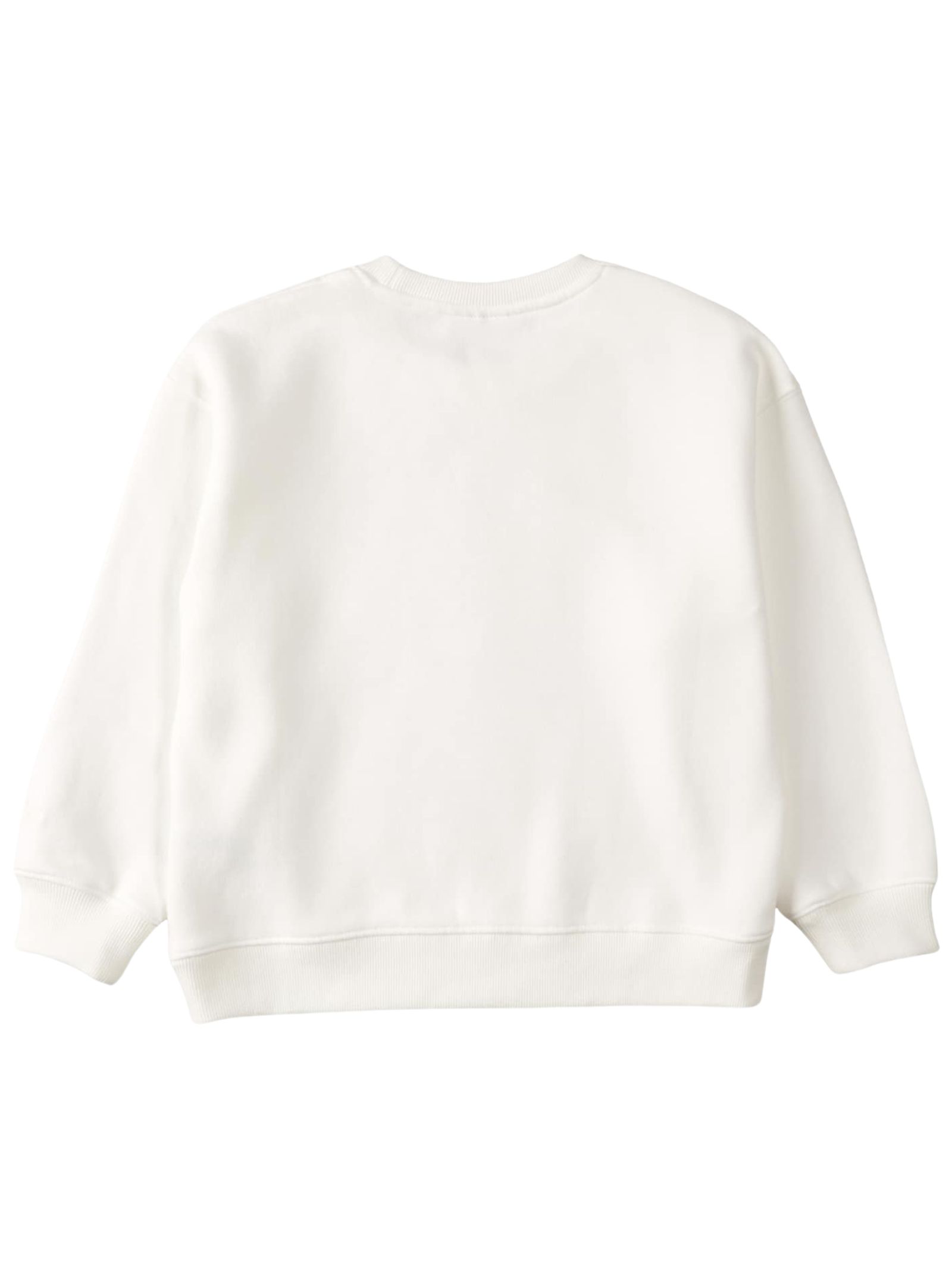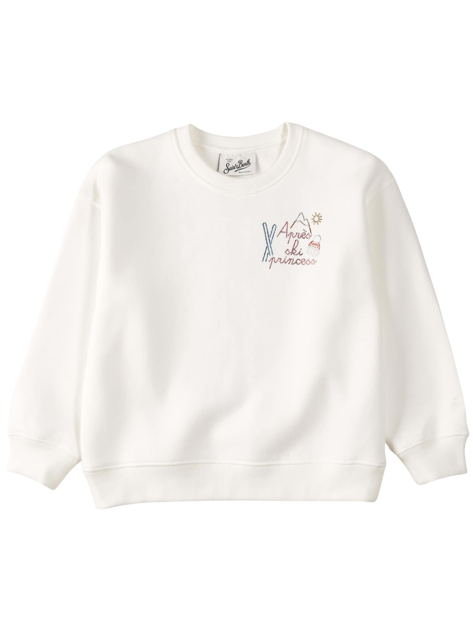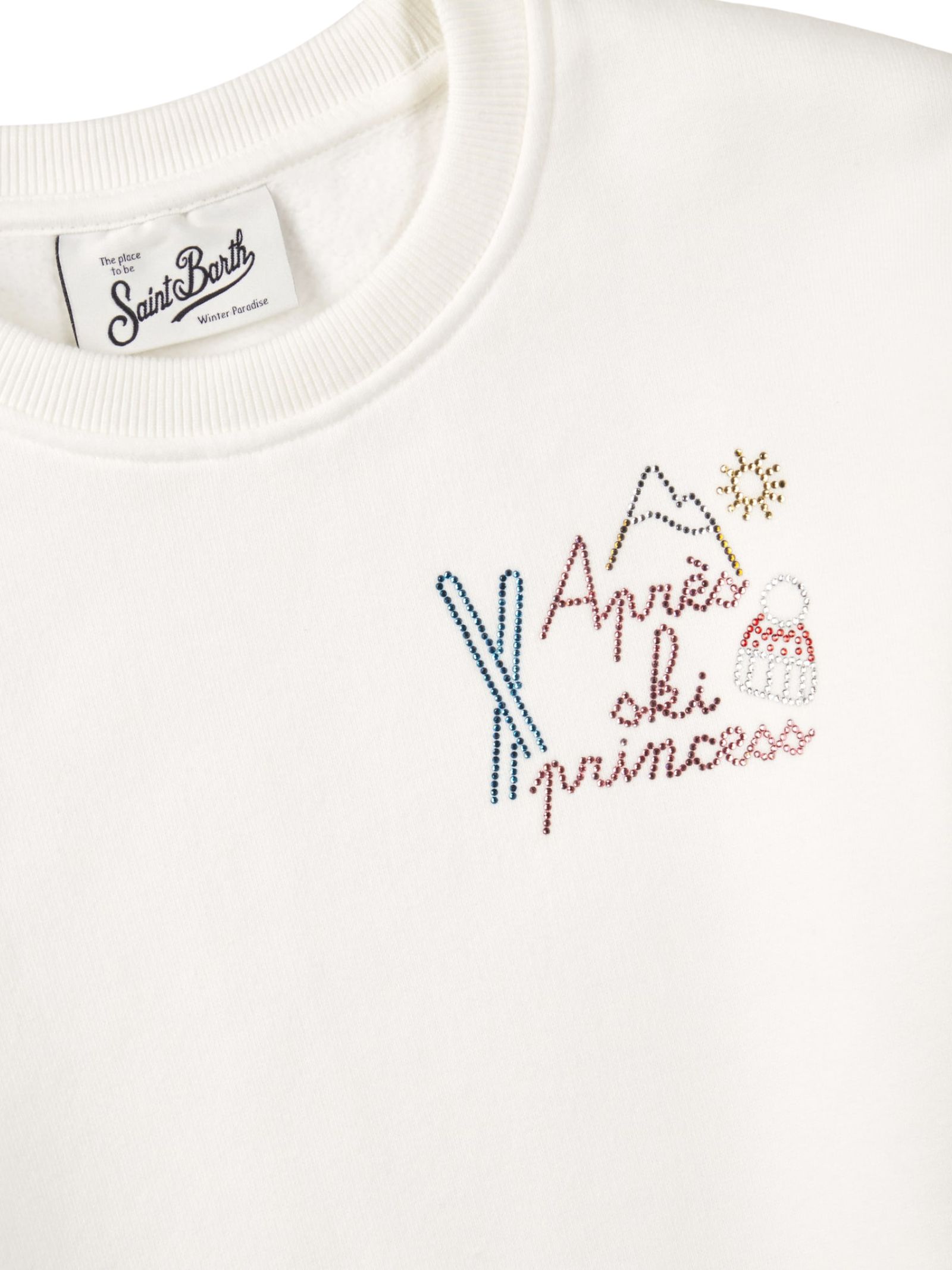 MC2 Saint Barth Kids felpa Briony Apres Ski Princess di colore bianco, applicazione strass a contrasto, girocollo, maniche lunghe, ricamo logo su una manica, orli a costine, vestibilità regolare. Composizione: 35% poliestere 65% cotone caldo