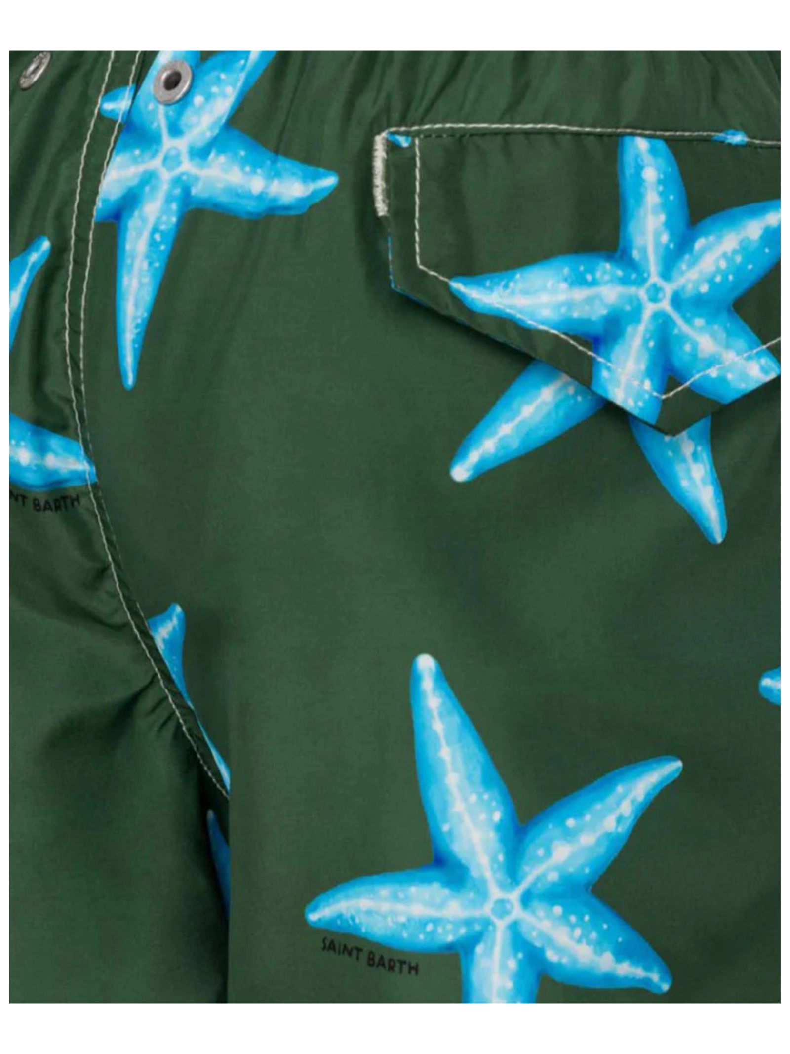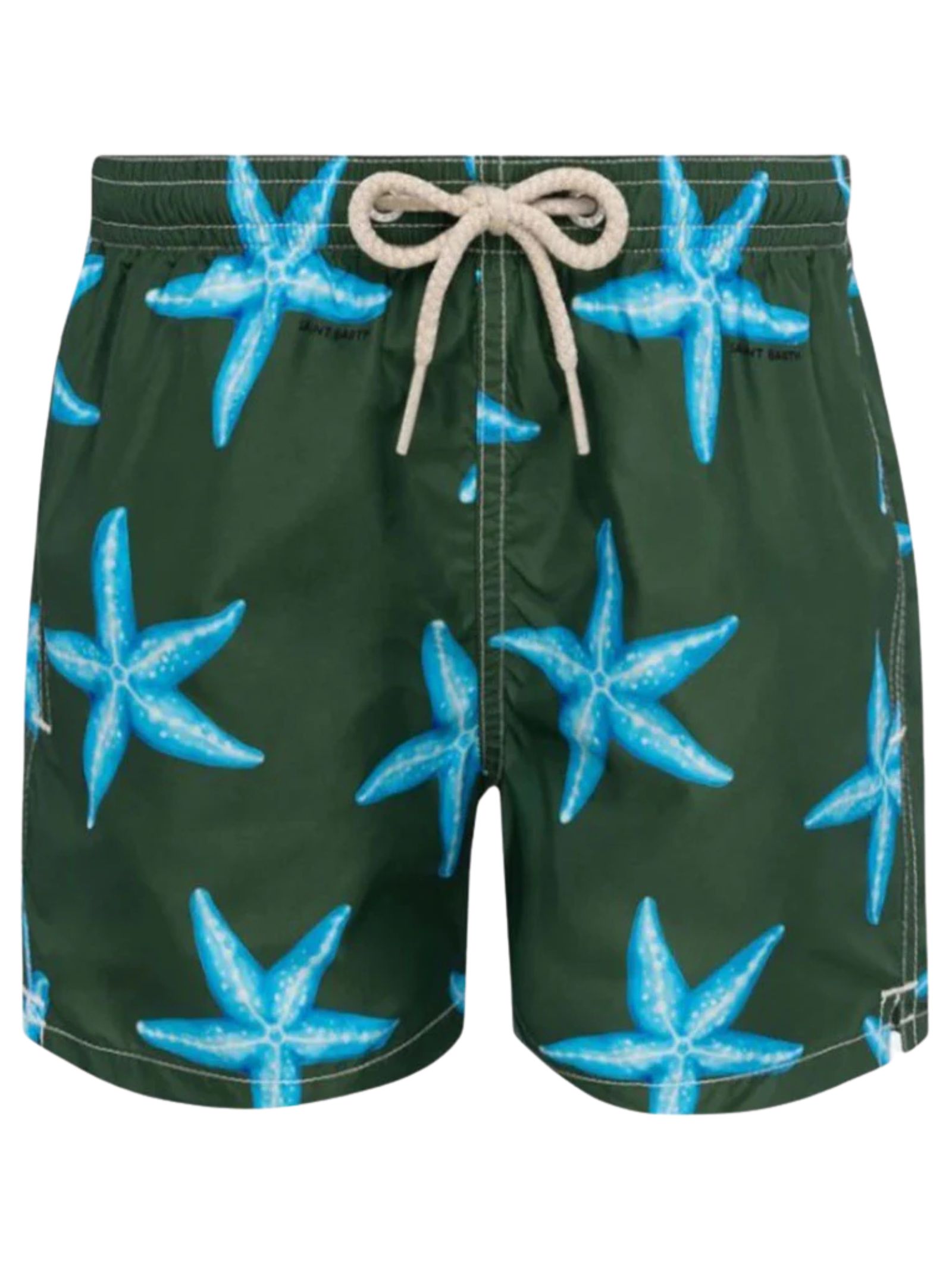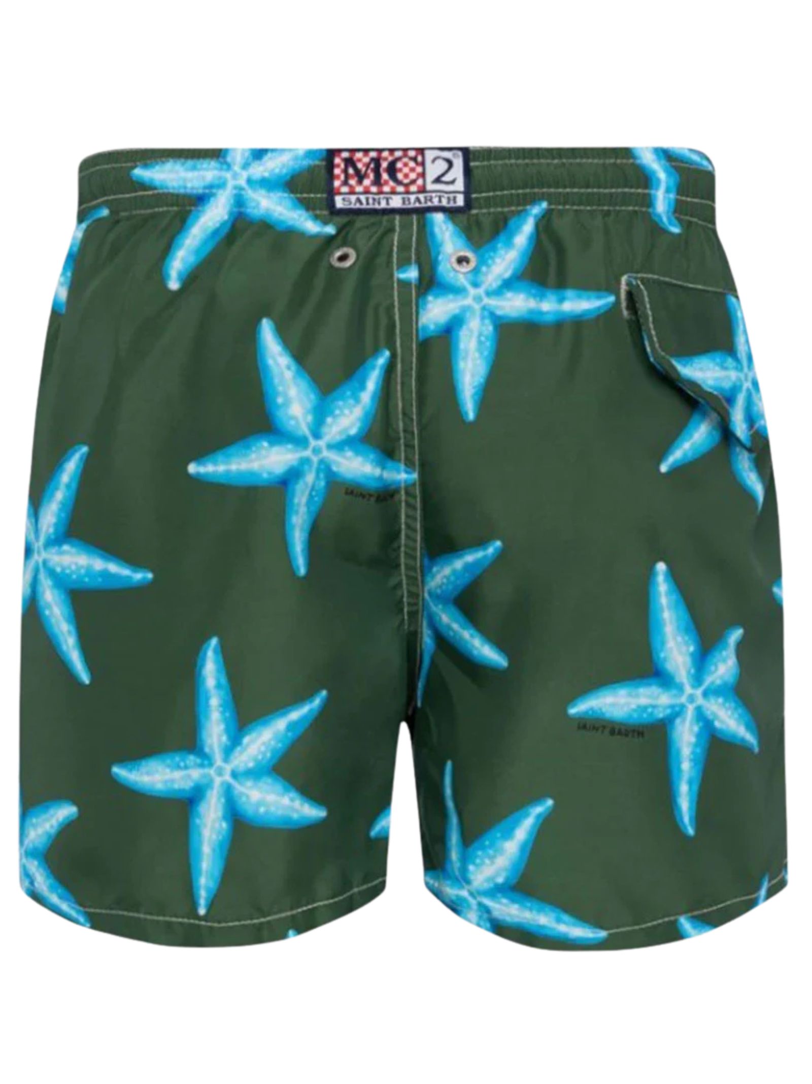 Costume MC2 SAINT BARTH bambino di colore verde modello Boxer Ultralight Stampato Joy Starfish ad asciugatura rapida con girovita elastico e cordino di regolazione. Logo Mc2 a etichetta tessita su elastico posteriore. Seguire attentamente le istruzioni di lavaggio riportate sull'etichetta all'interno del capo. Made in CINA Composizione 100% PL