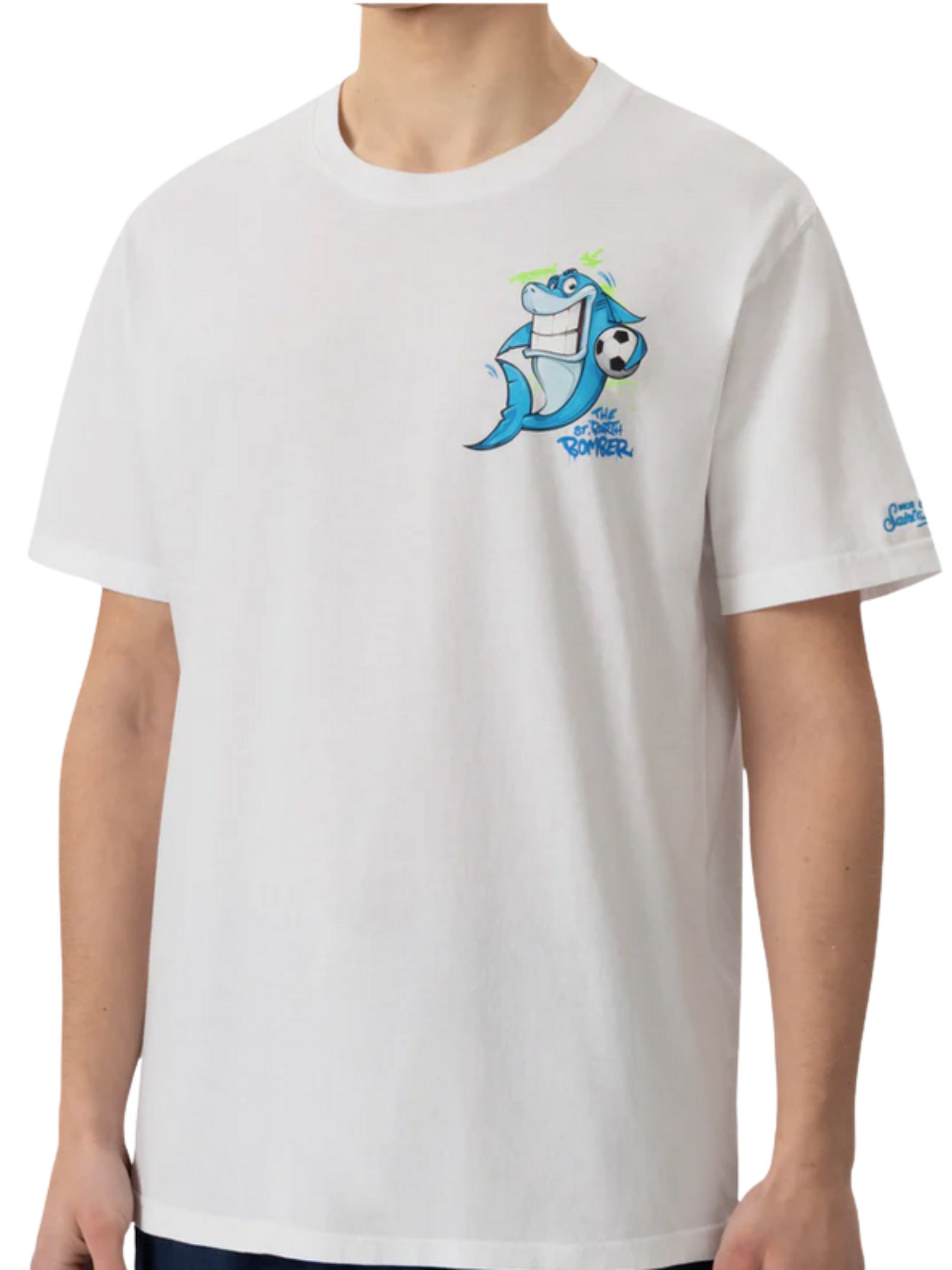 MC2 Saint Barth Kids t-shirt di colore bianco, realizzata in cotone, design girocollo, mezza manica, maxi stampa sul retro e stampa sul petto, vestibilità regolare. Composizione: 100% cotone