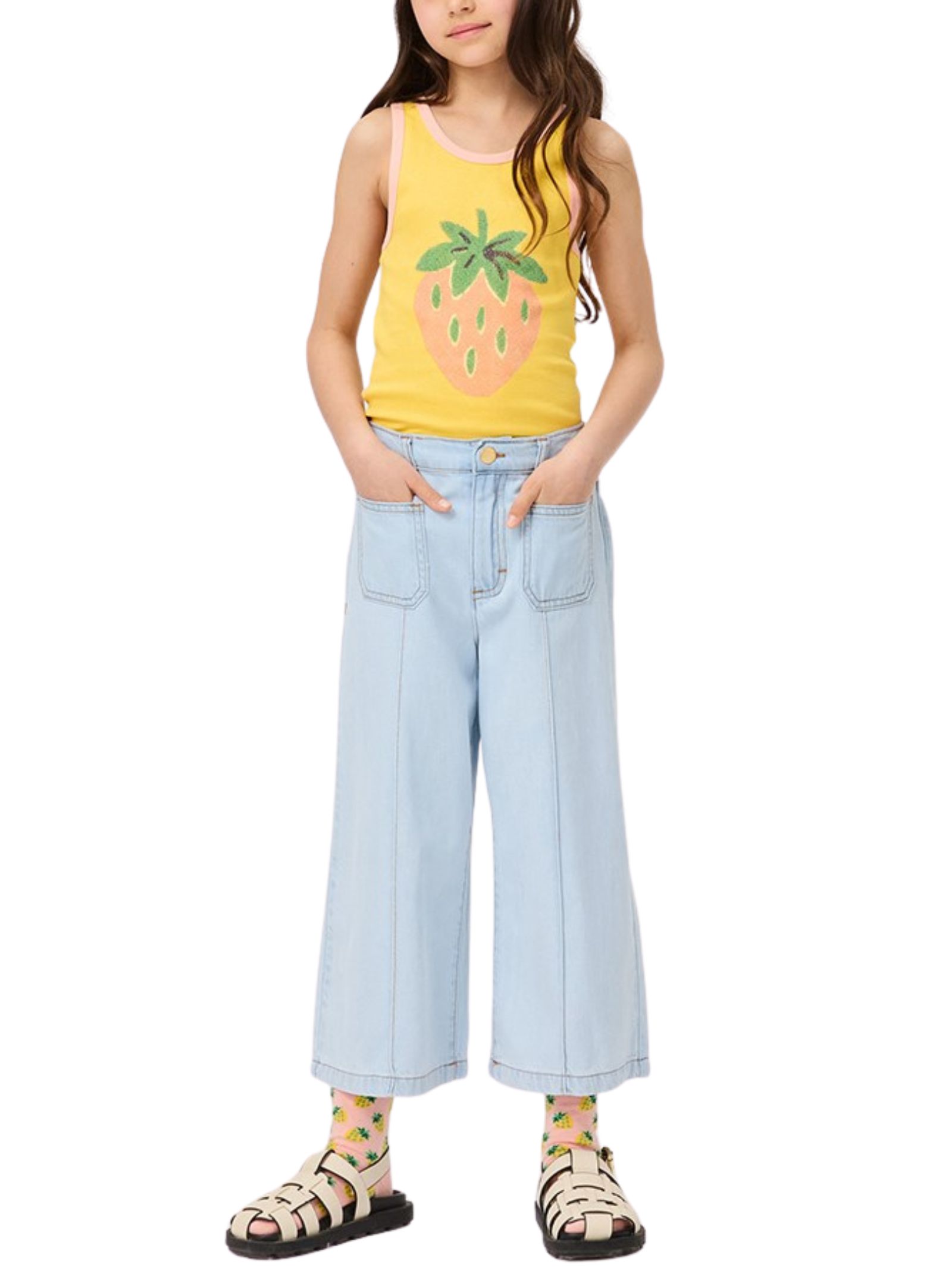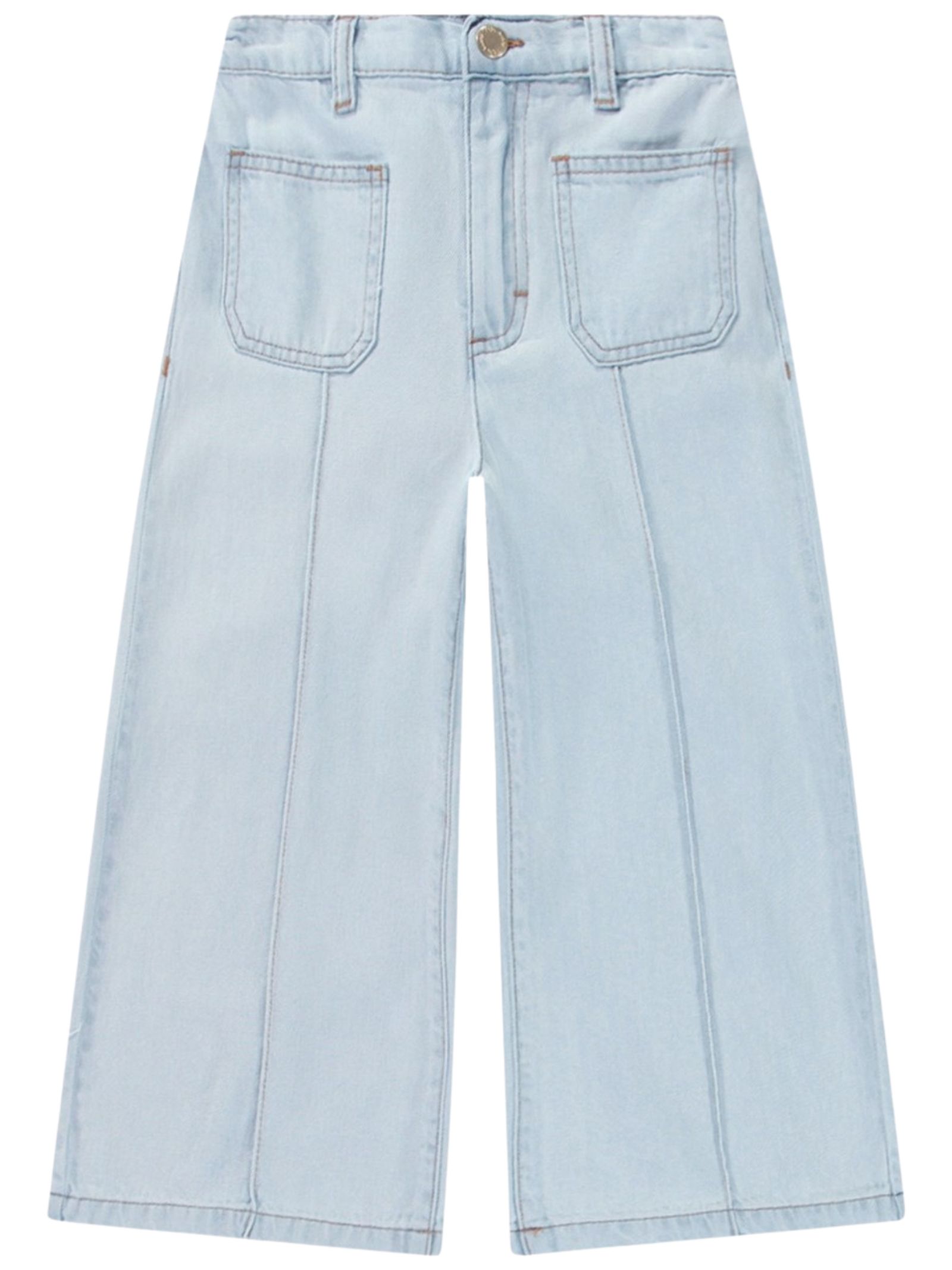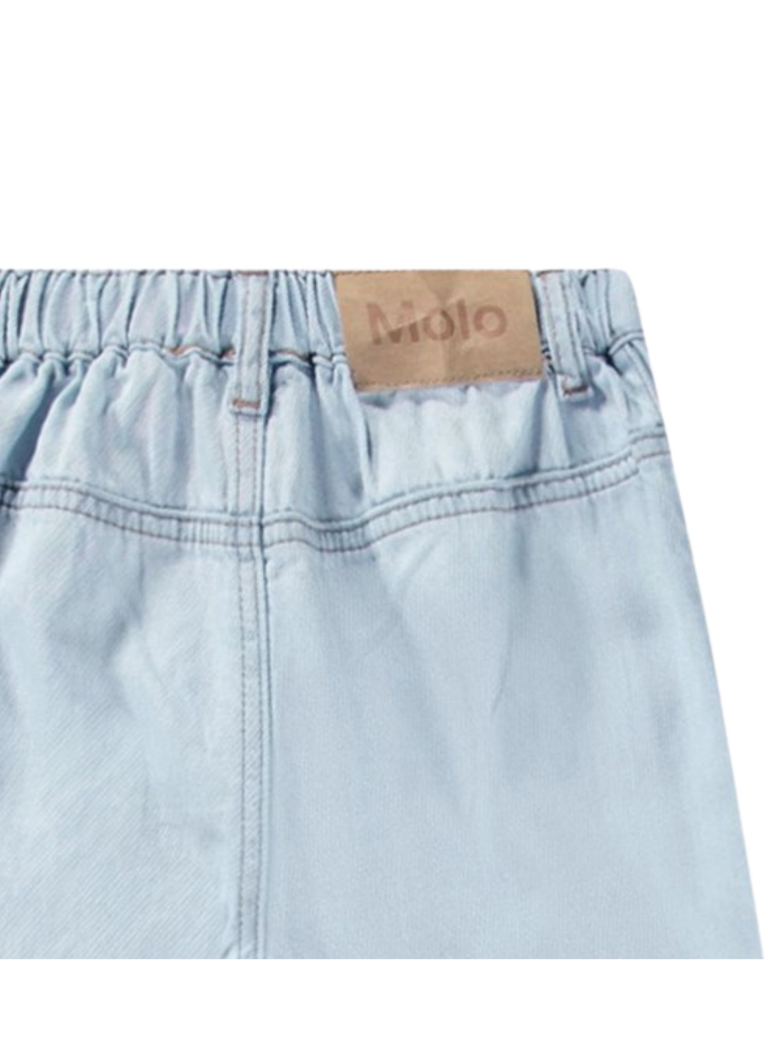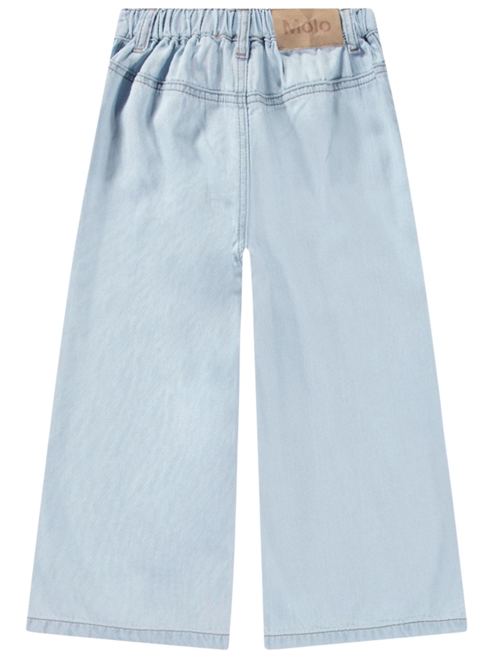 Molo Kids jeans di colore azzurro dal lavaggio chiaro, modello con vita regolare, bottone e zip, due tasche frontali, design svasato, patch con logo posteriore. Composizione: 63% tencel 37% cotone