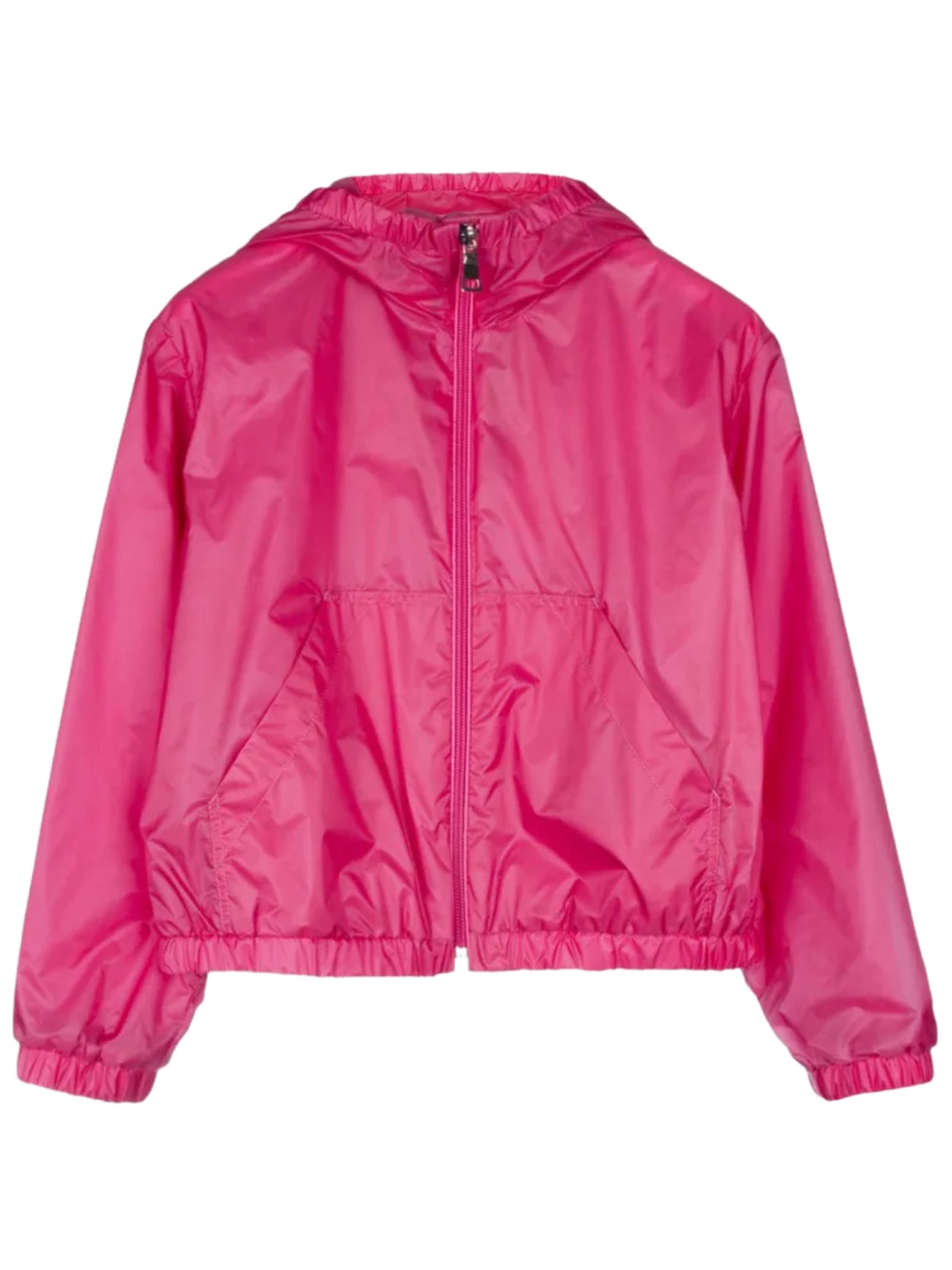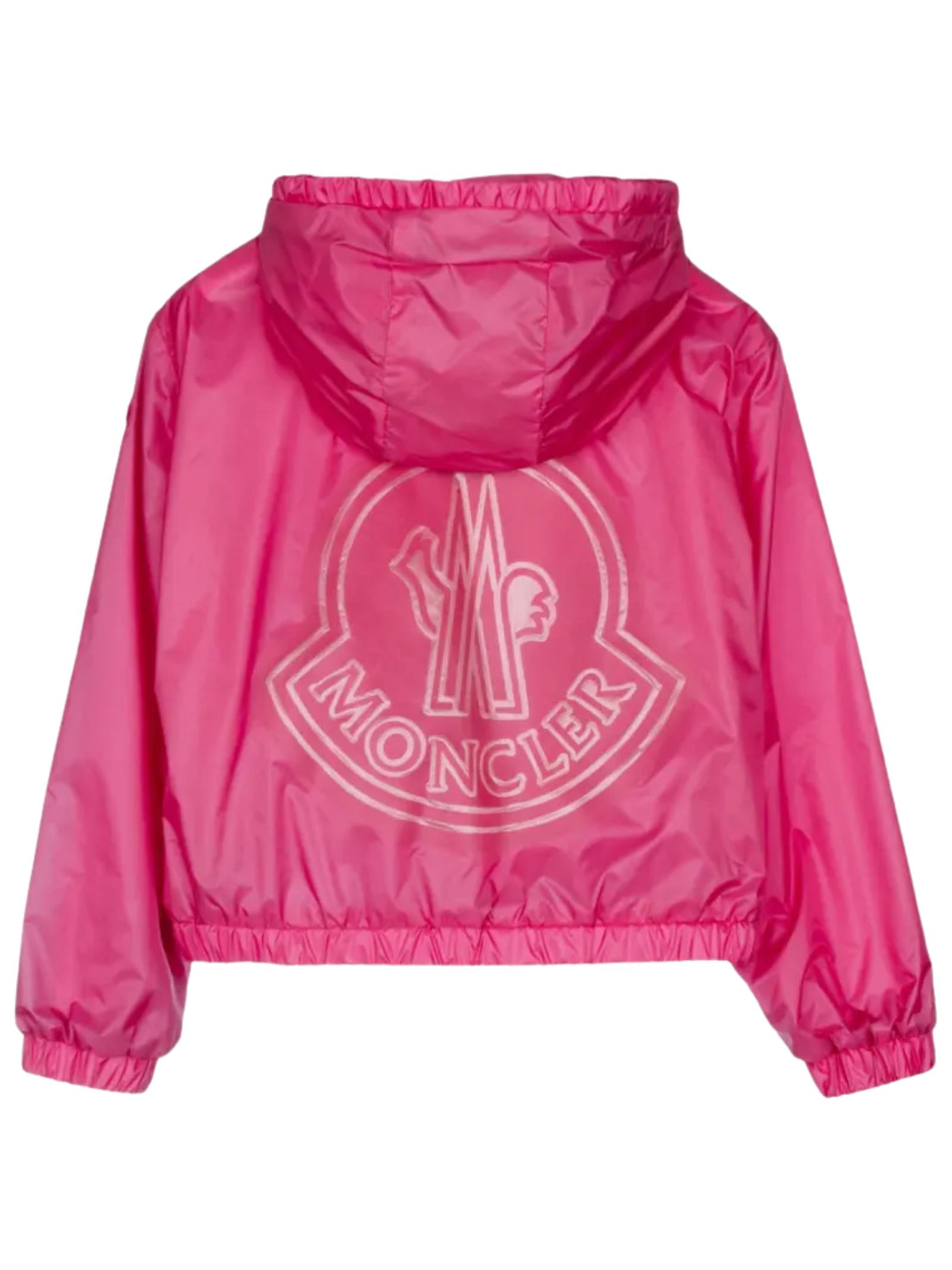 Moncler Kids giubbino Terbish di colore fucsia, antivento, maxi logo sul retro, due tasche laterali, patch con logo sul braccio, chiusura centrale con zip, cappuccio fisso. orlo elastico. Composizione: 100% poliestere