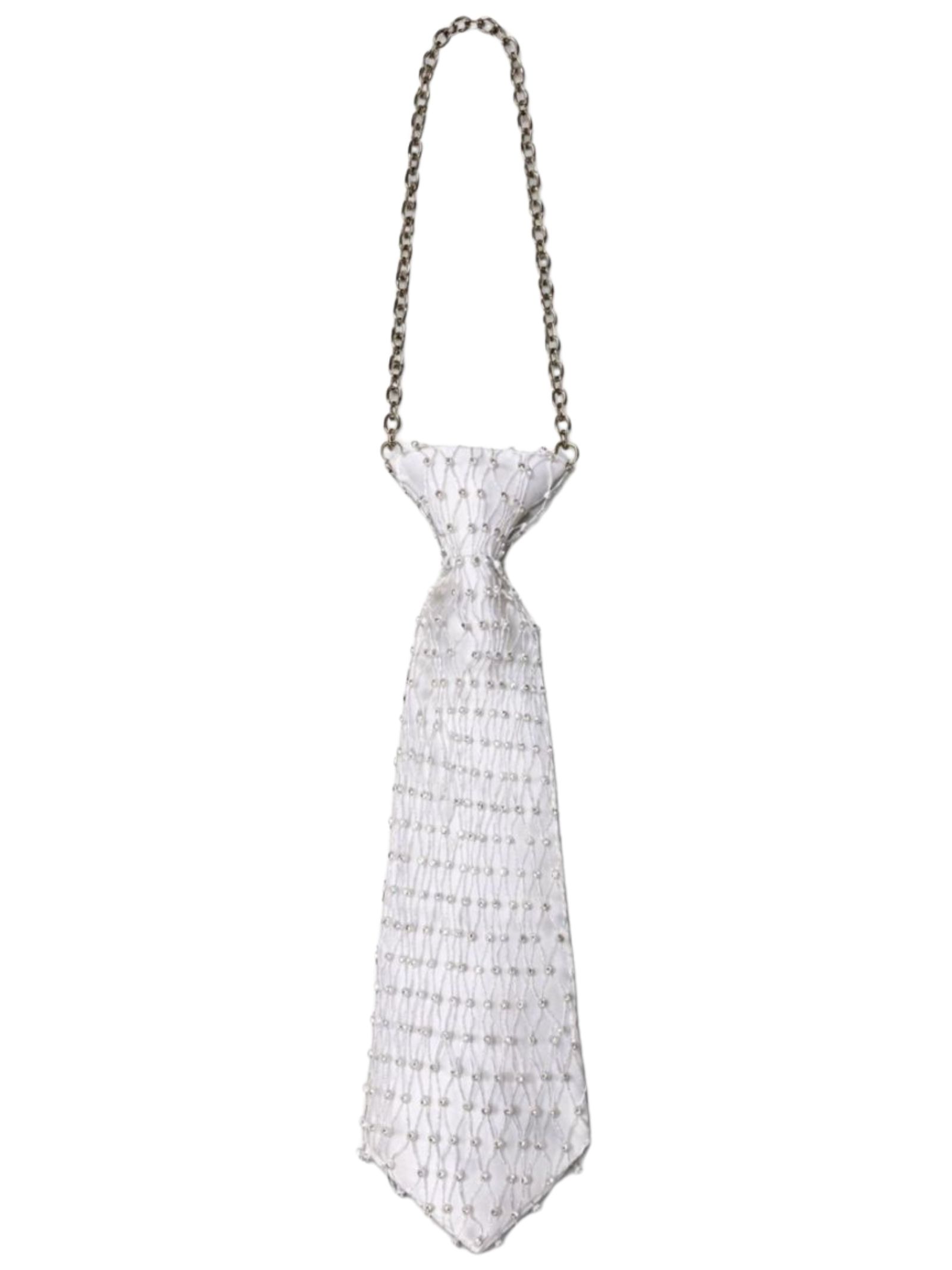 Monnalisa Kids cravatta di colore bianco, design con catena, ricoperta da rete con luminosi strass. Composizione: Poliestere 100%