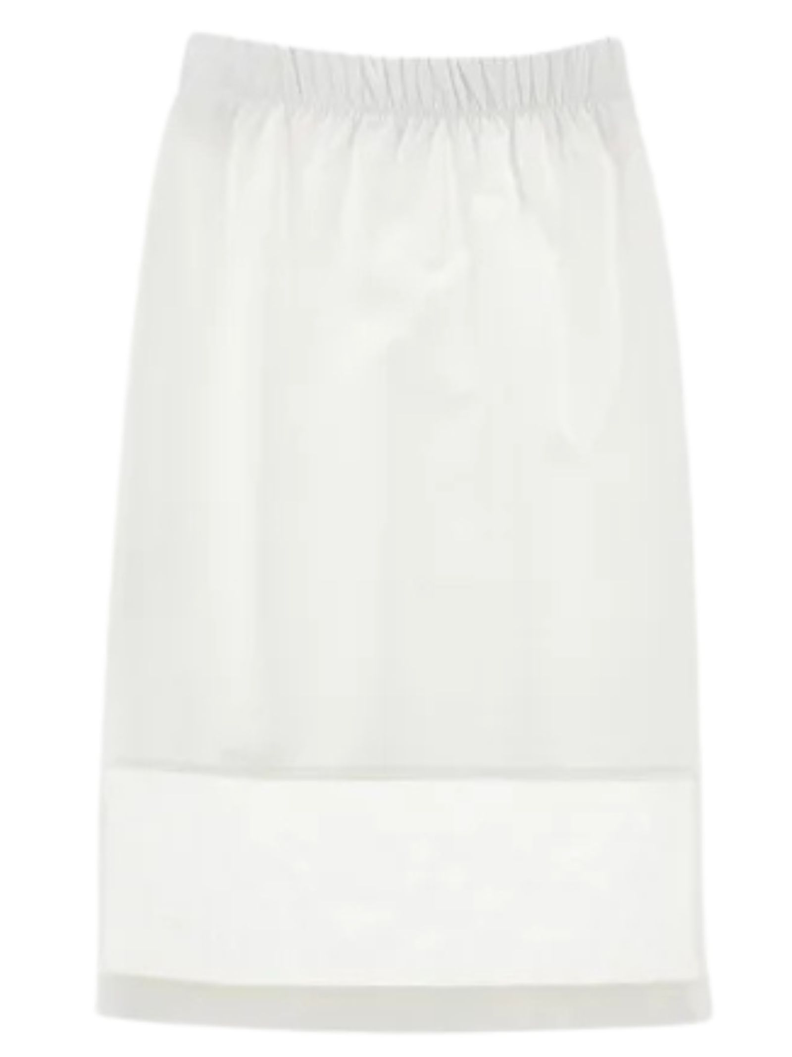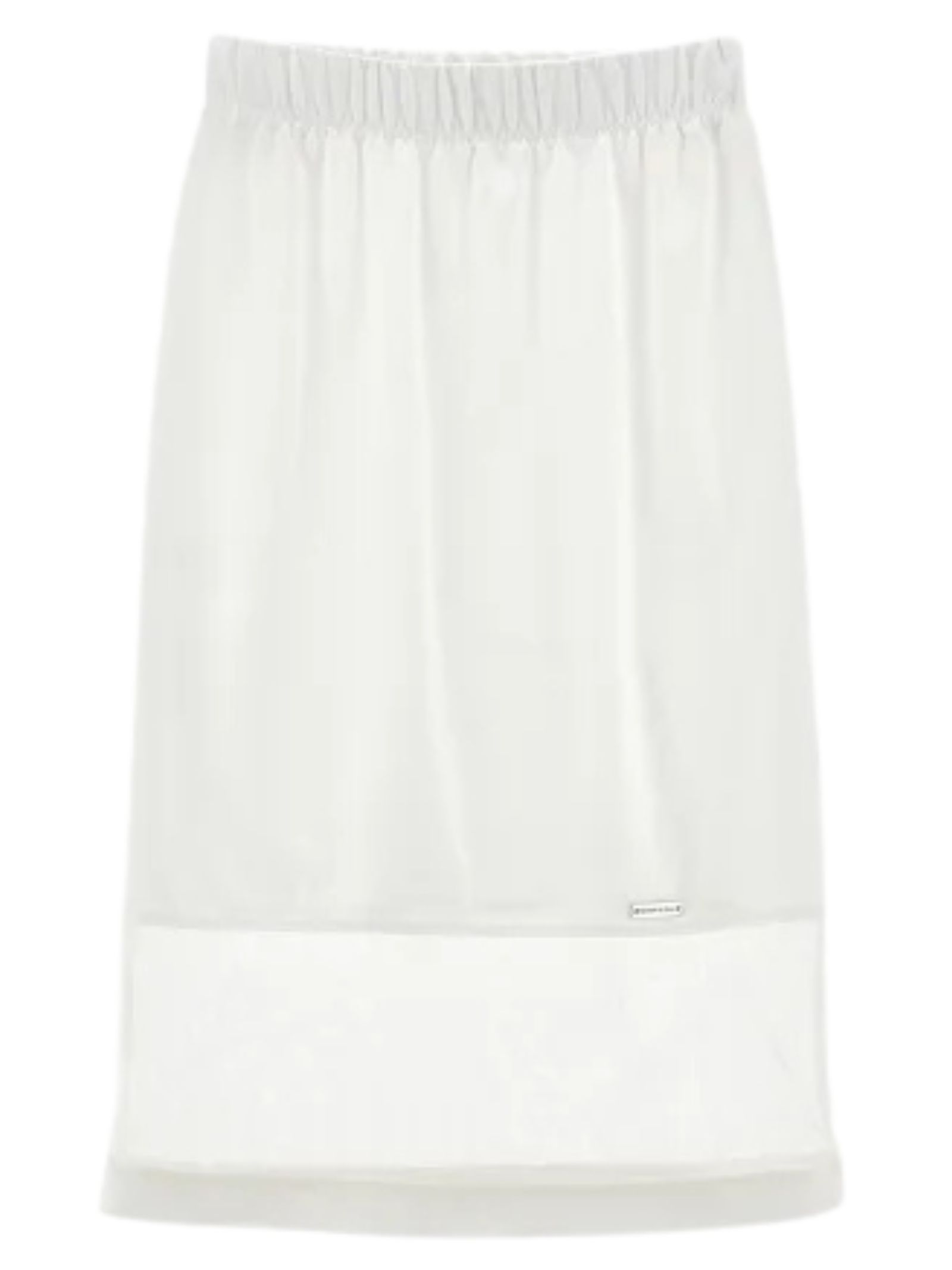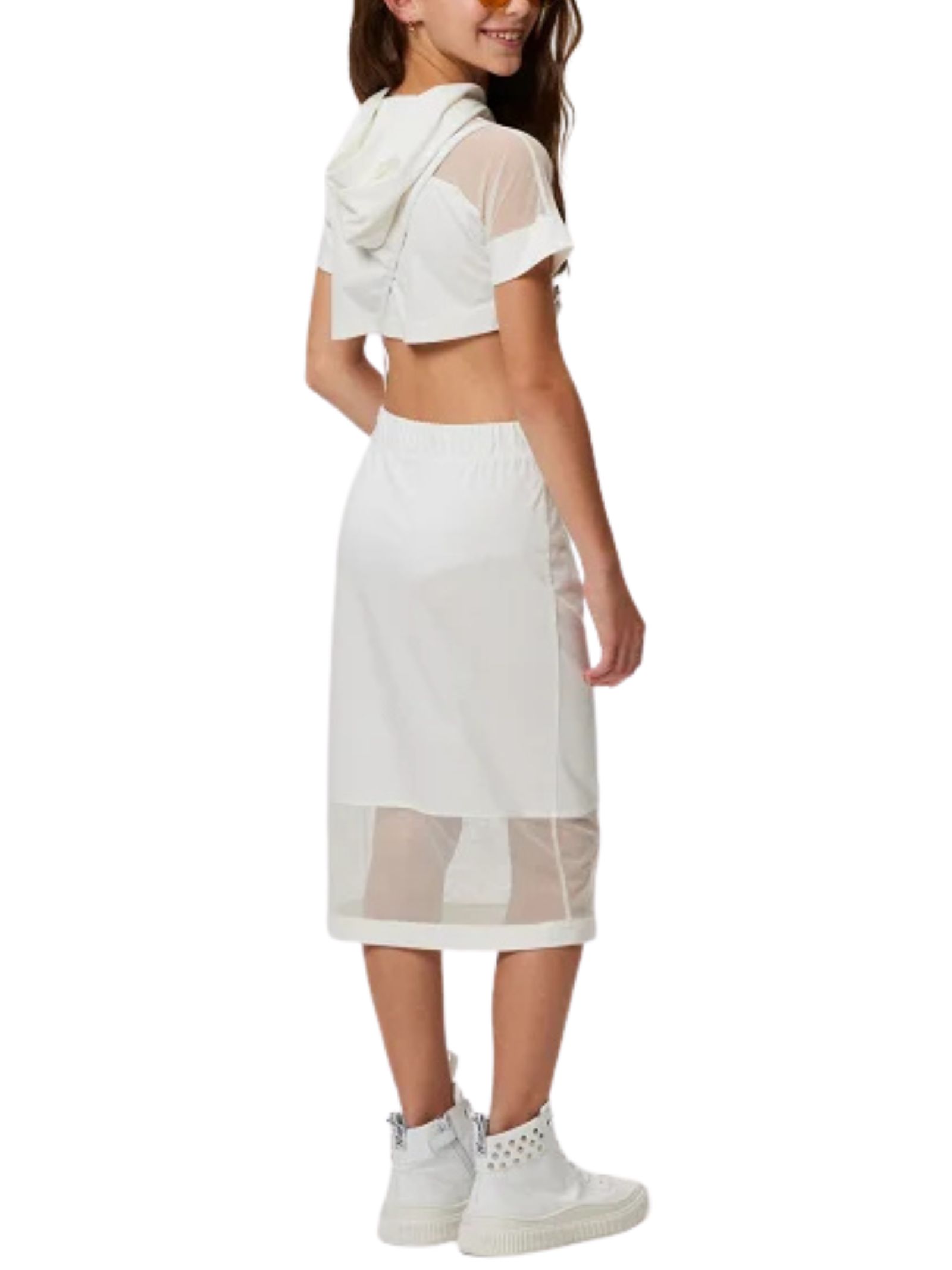 Monnalisa Kids gonna di colore bianco, design con elastico in vita, inserto in velo, lunghezza sotto il ginocchio, applicazione cuore in metallo con logo, vestibilità regolare. Composizione: 65% viscosa 28% poliammide 7% elastan. Made in Italy