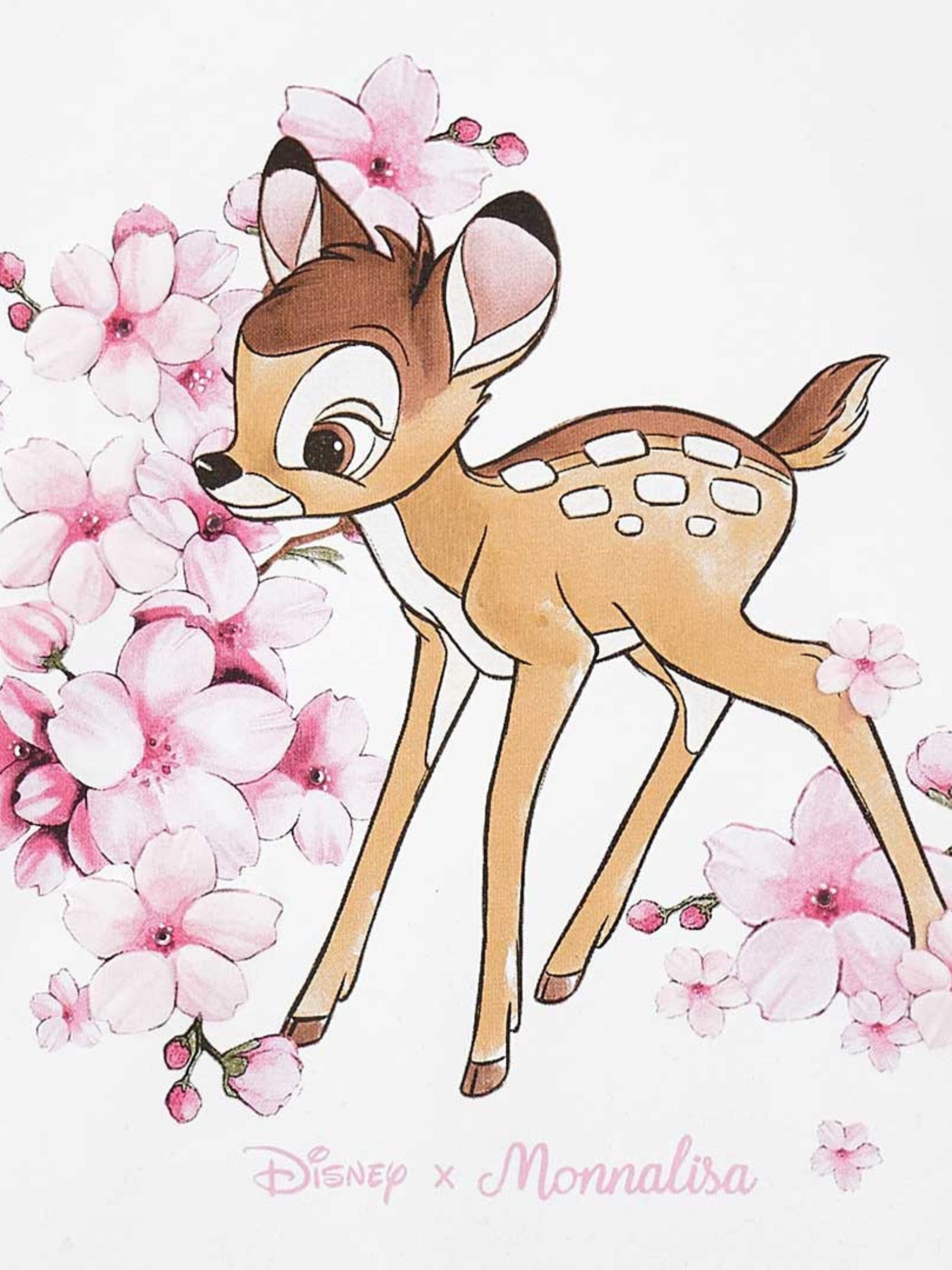 Monnalisa Kids t-shirt di colore bianco, modello girocollo, mezze maniche, stampa centrale Bambi con logo e applicazione strass, vestibilità regolare. Composizione: 95% cotone 5% elastan. Made in Italy