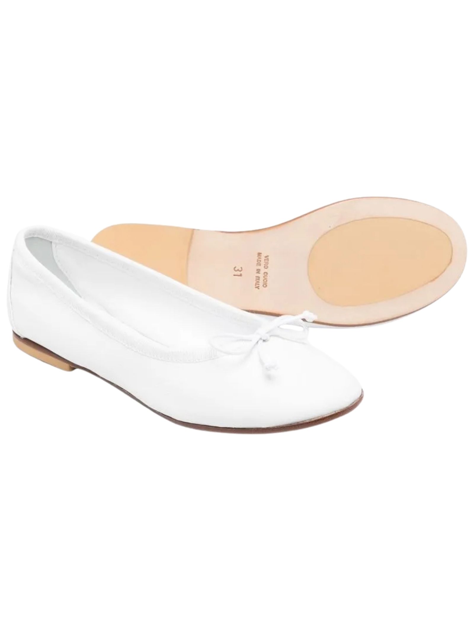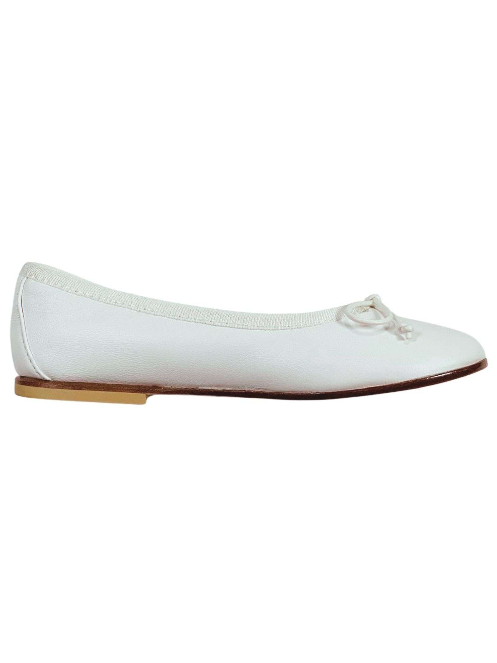 Montelpare Kids ballerine di colore bianco, realizzate in pelle di vitello, applicazione fiocco centrale, design punta tonda, suola in vero cuoio. Made in Italy